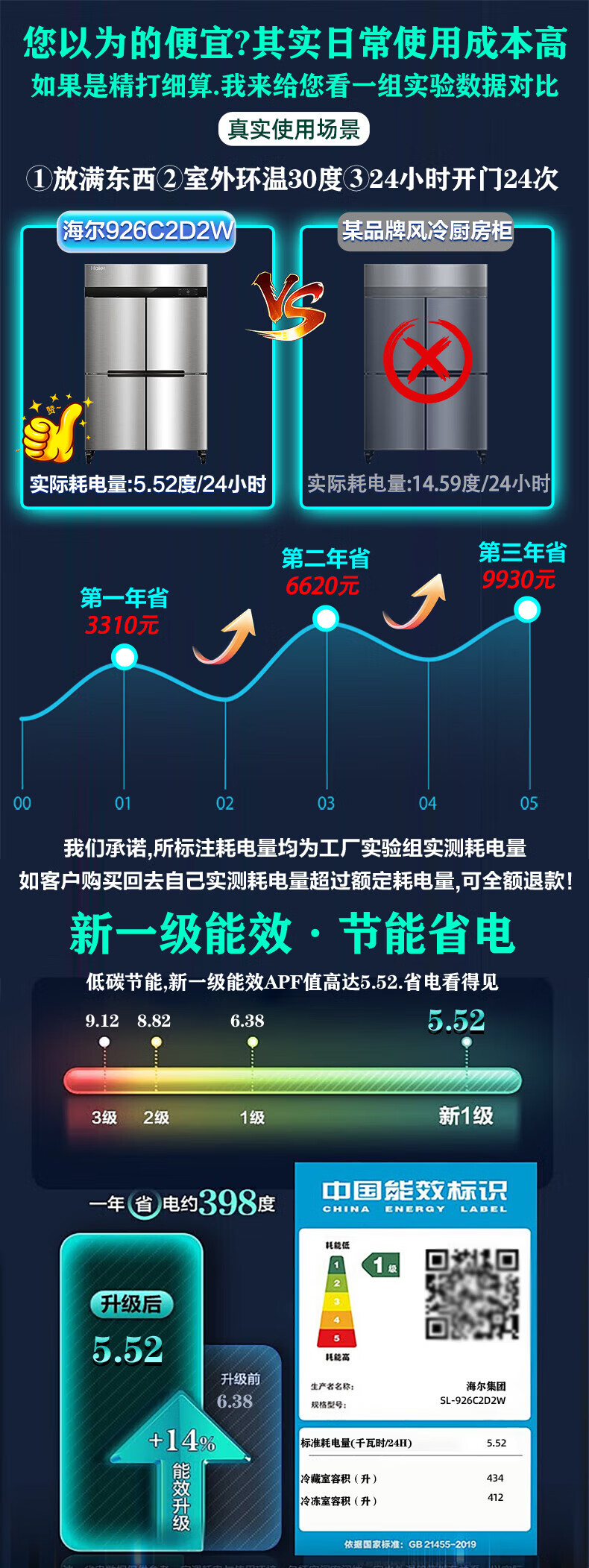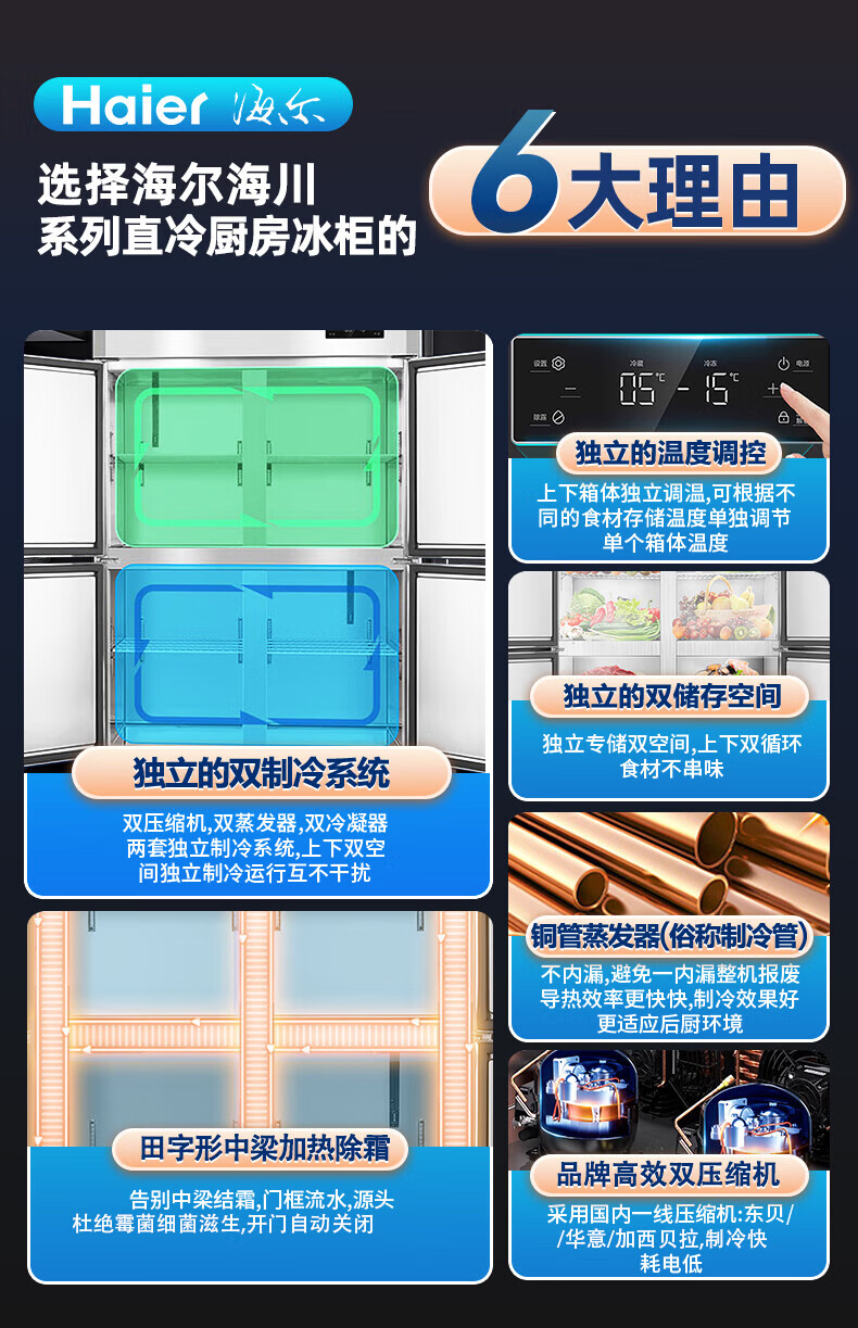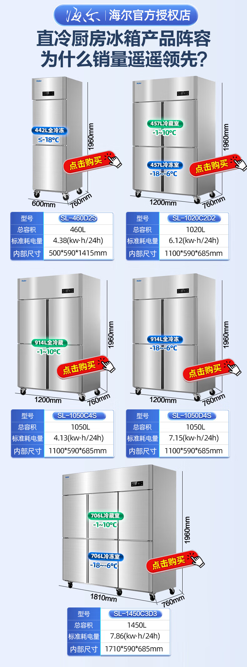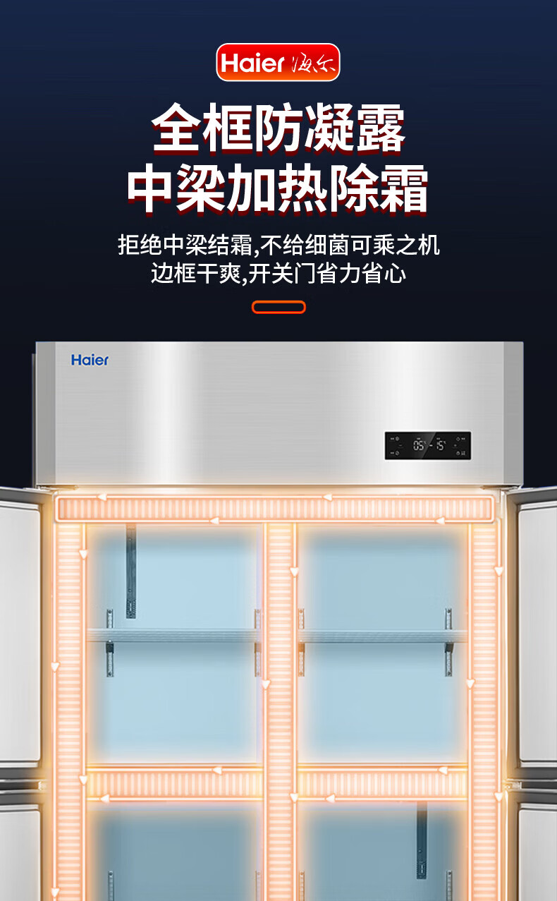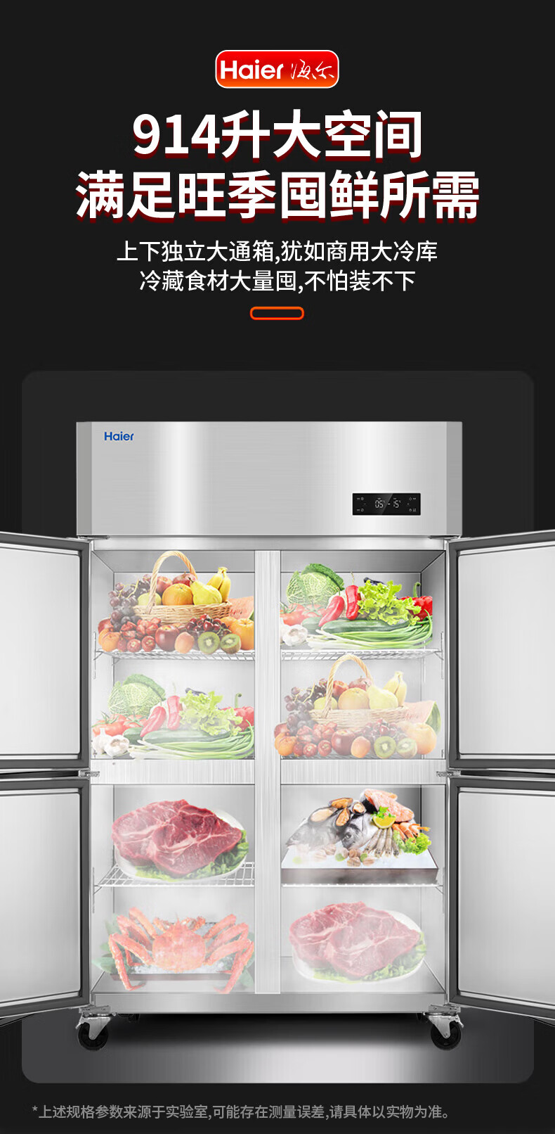 Haier Freezer Commercial Four-Door Six-Door Refrigerator Kitchen Cabinet Vertical Hotel Freezer Back Kitchen Quick Freezer Stainless Steel Refrigerator Cabinet Fresh Meat Preservation Cabinet Sea Breeze Deluxe Model Air-cooled Frost-free Level 1 Energy Efficiency Four-Door Full Refrigeration 900 Liters