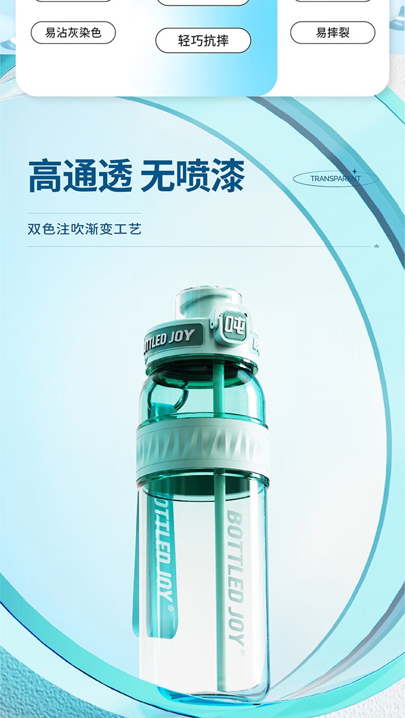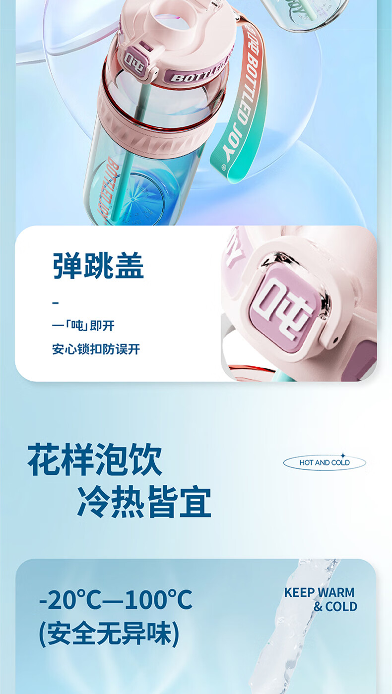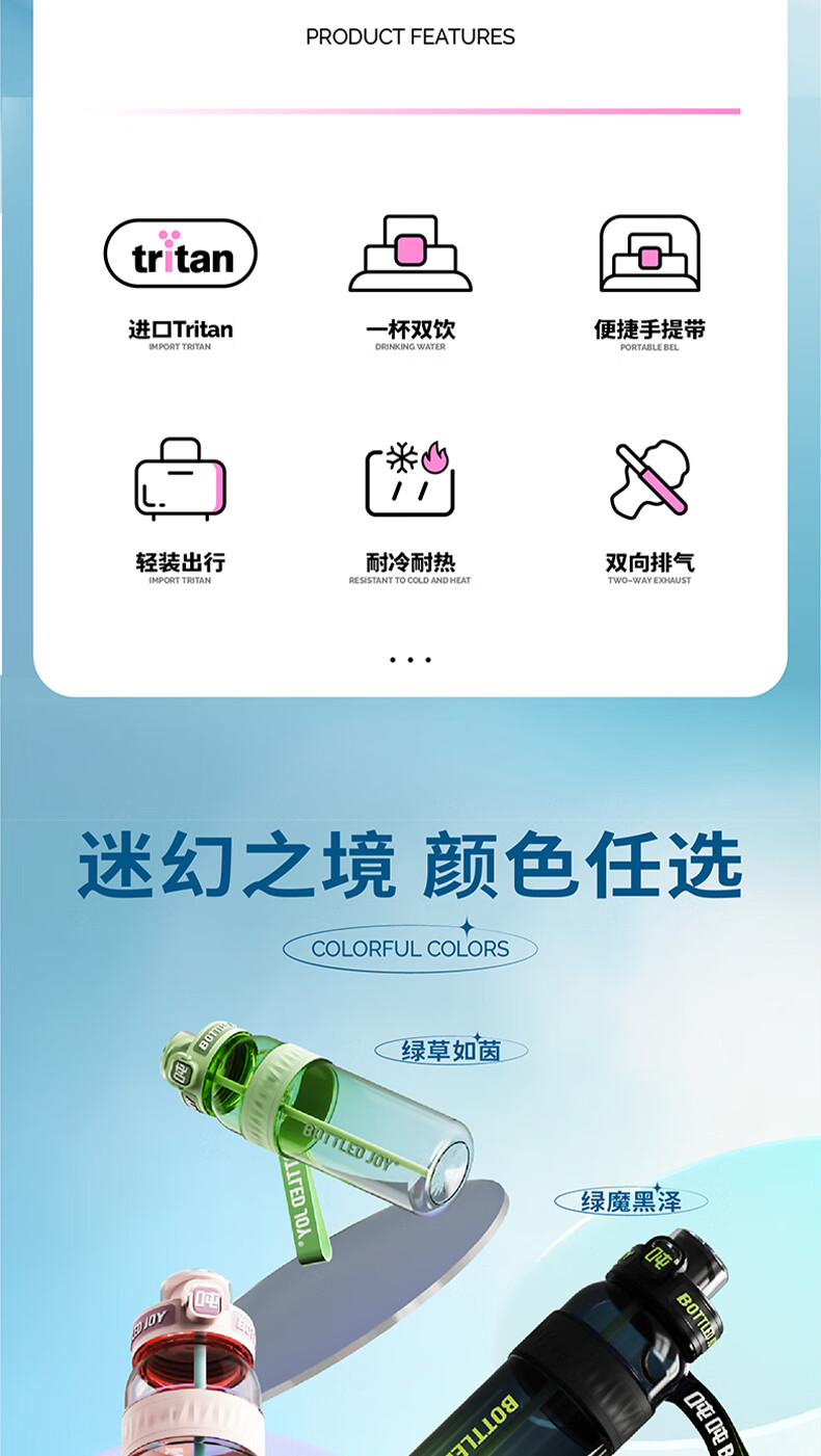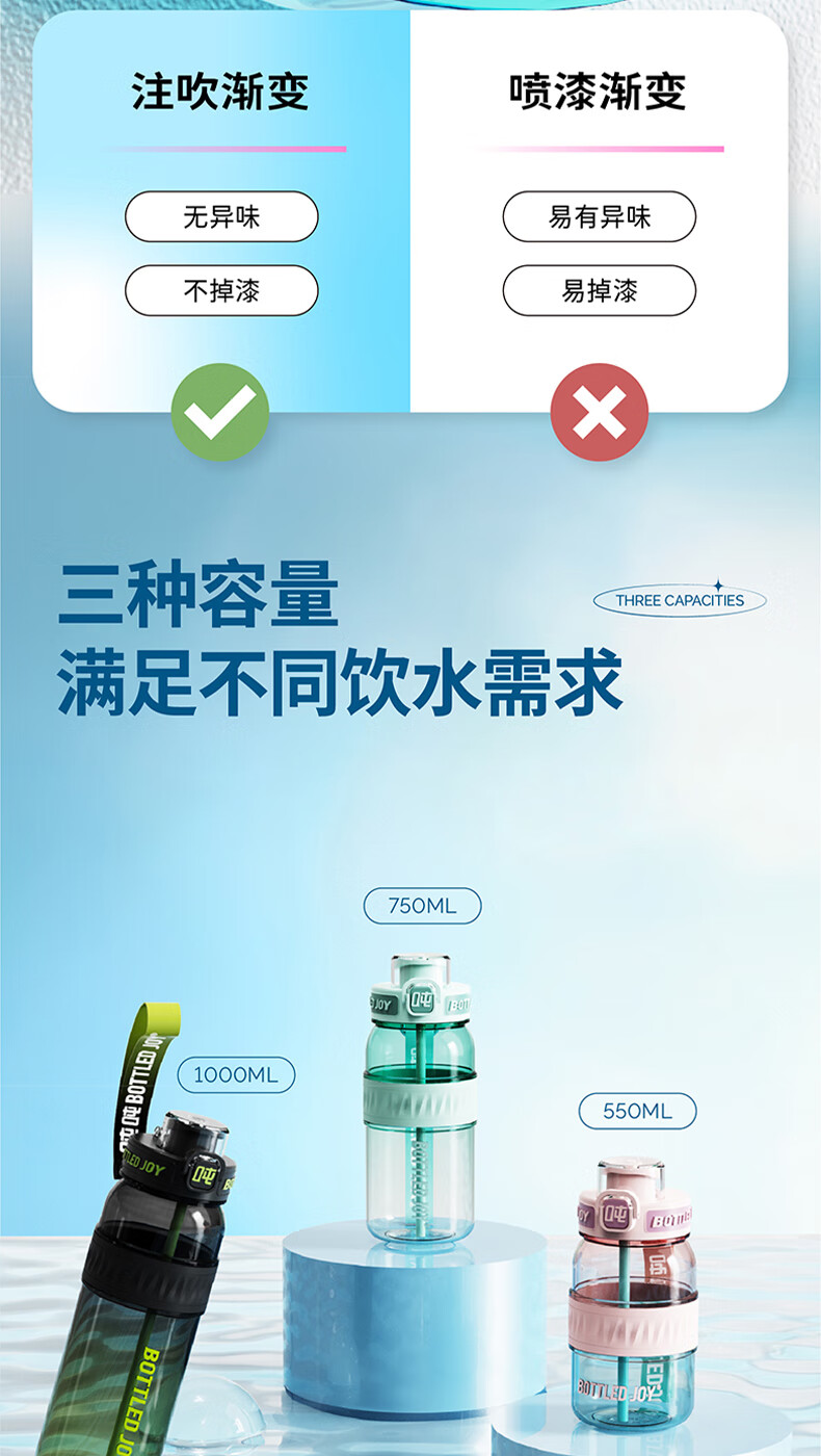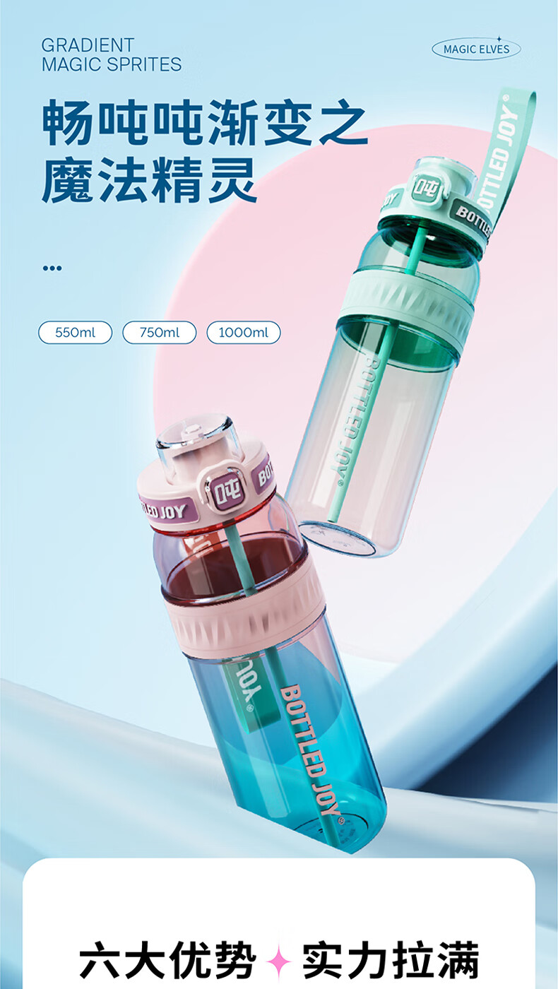 Ton ton BOTTLED JOY sports water bottle gradient smooth ton ton bucket large capacity water cup female fitness Wang Yibo casual cup gradient smooth ton ton pink blue cloud sea 1L
