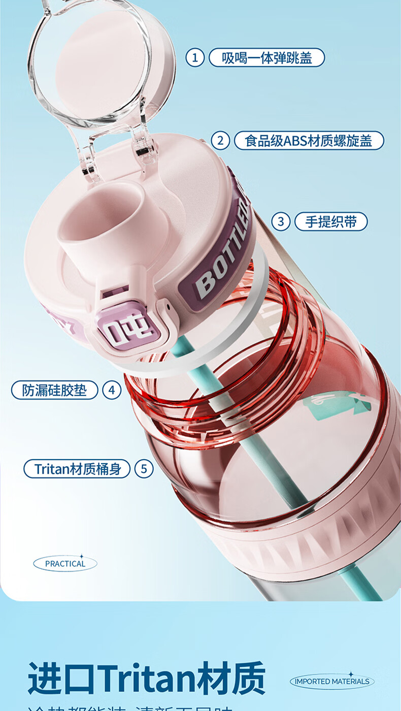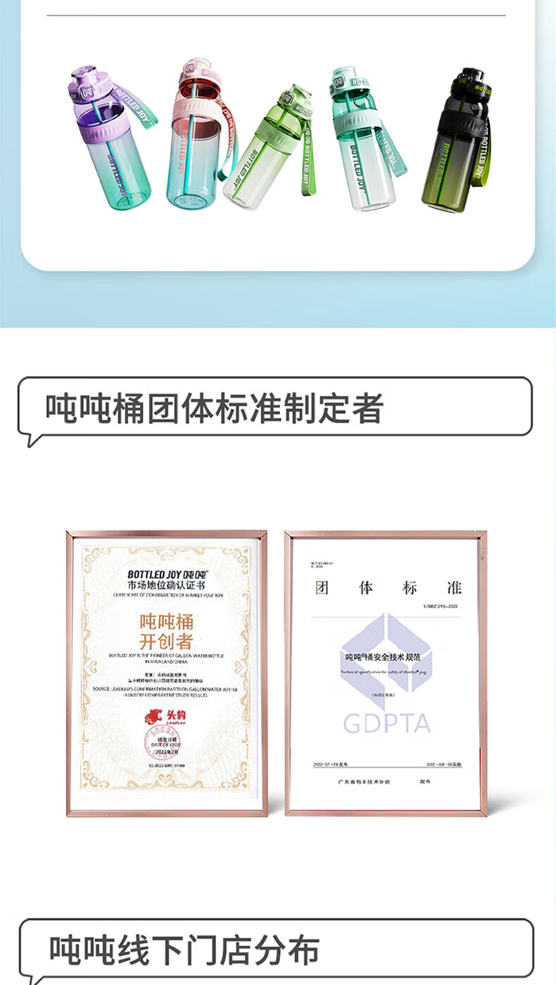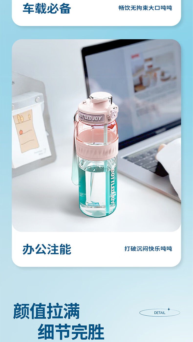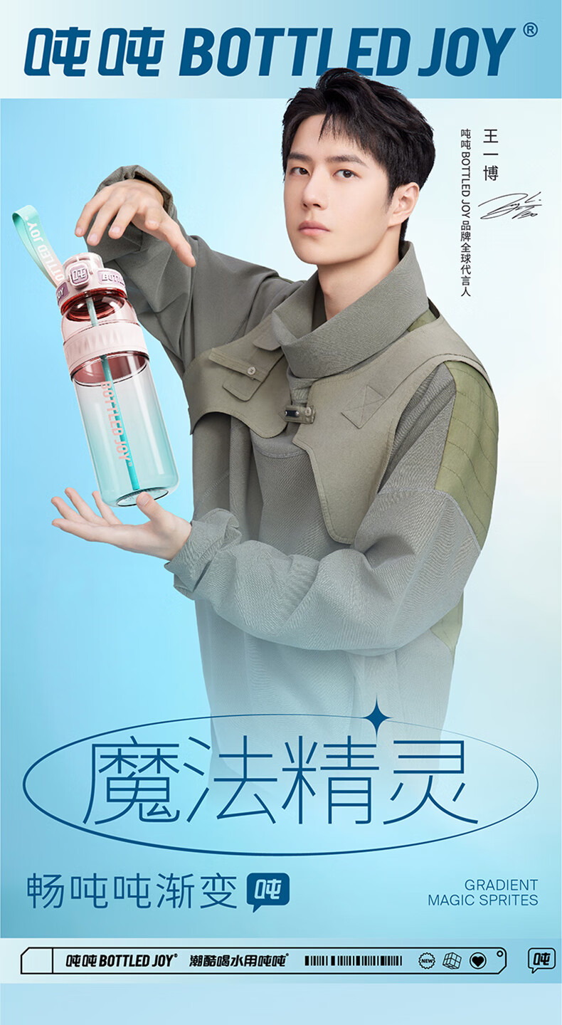 Ton ton BOTTLED JOY sports water bottle gradient smooth ton ton bucket large capacity water cup female fitness Wang Yibo casual cup gradient smooth ton ton pink blue cloud sea 1L