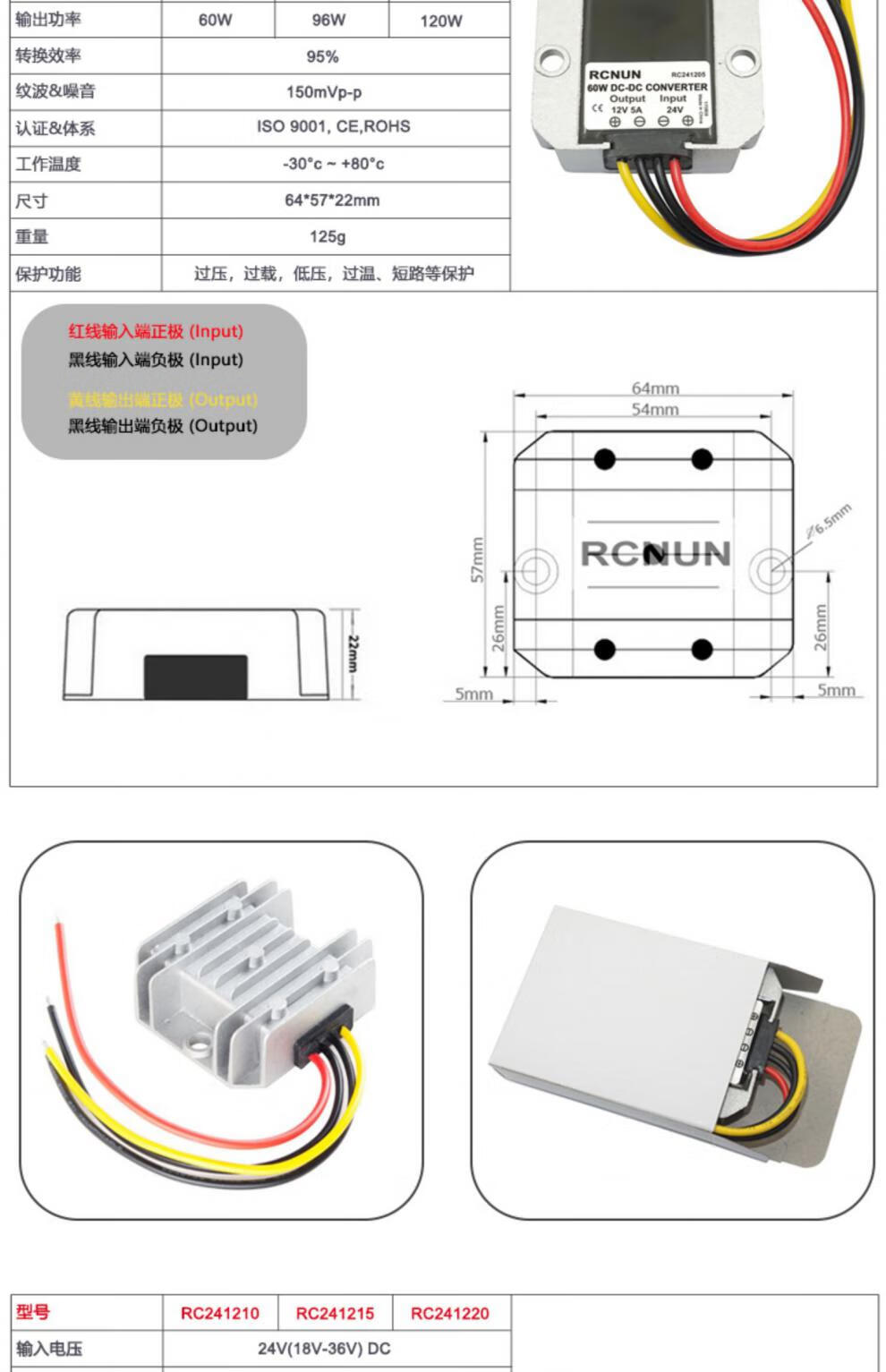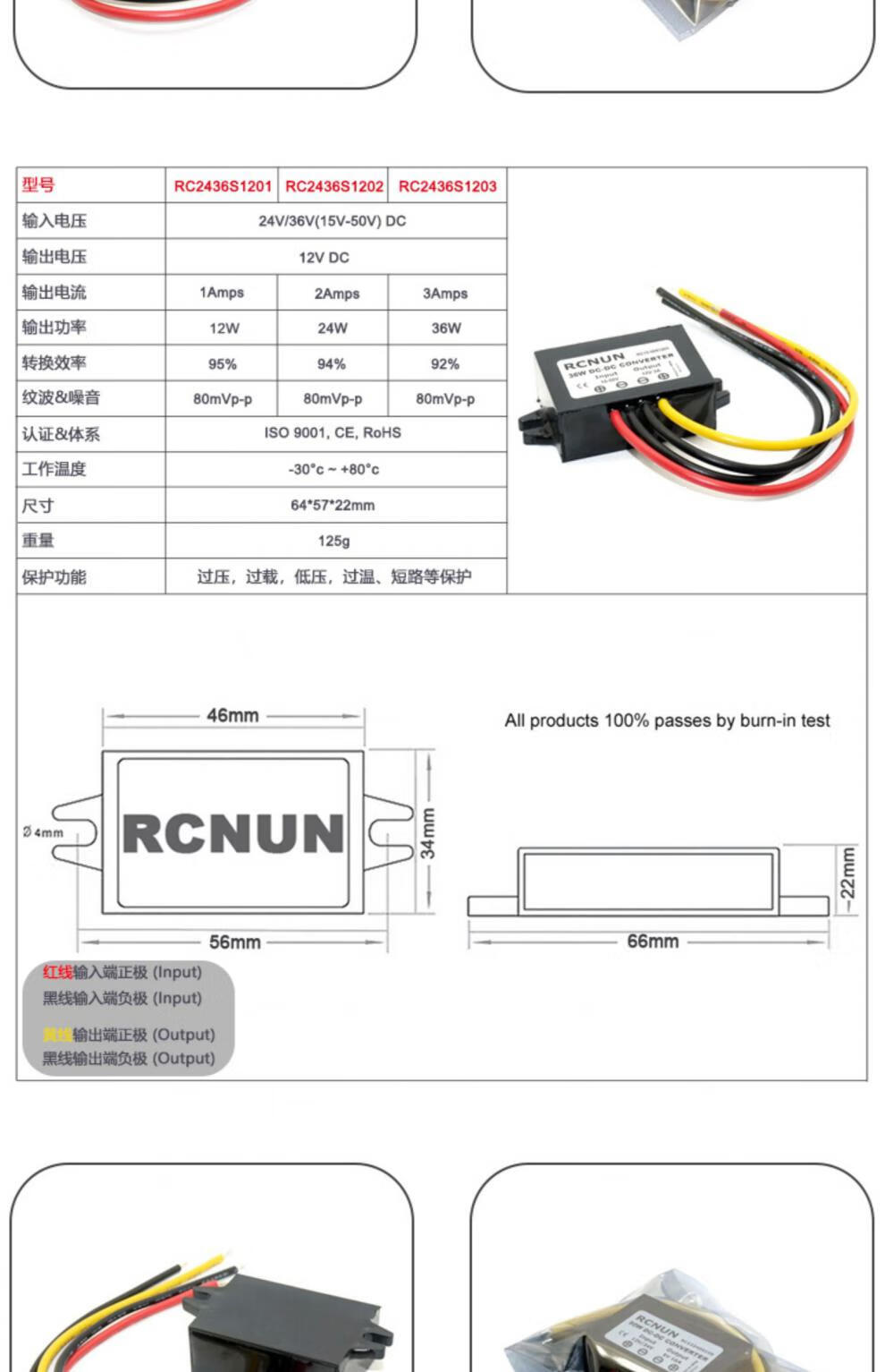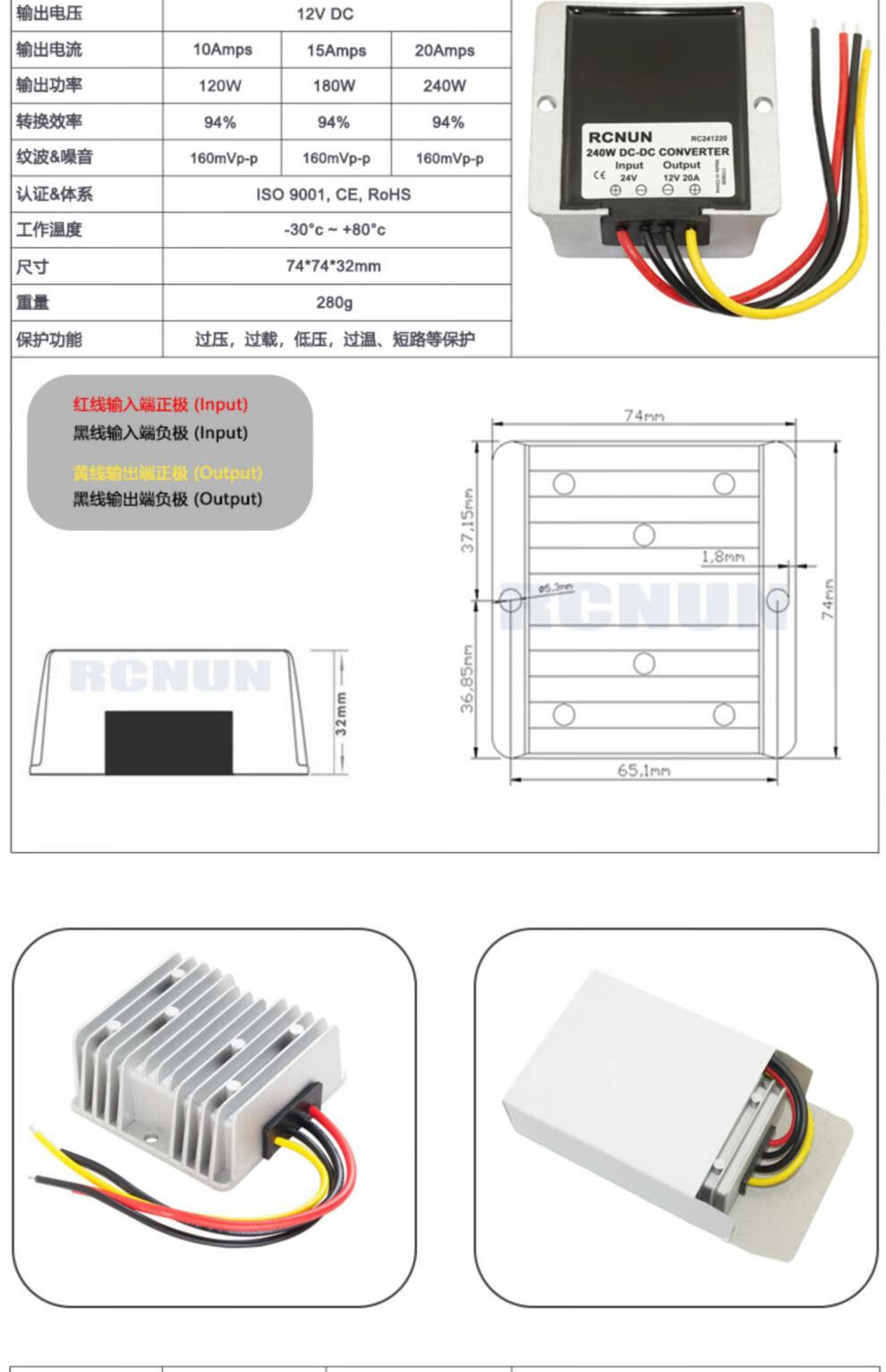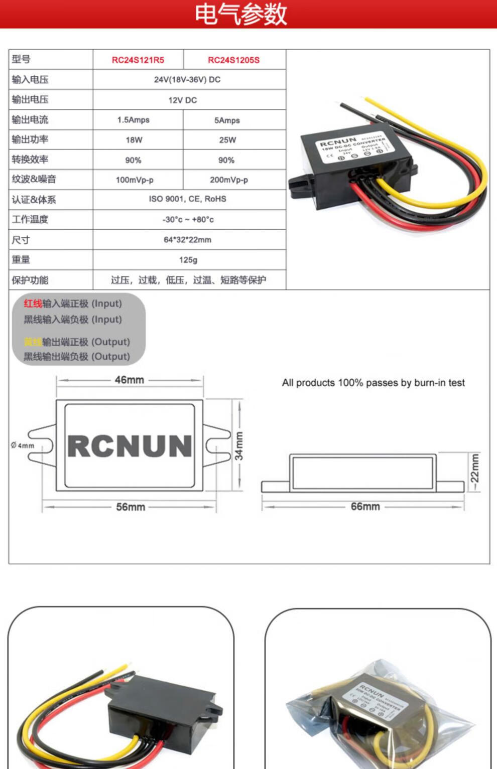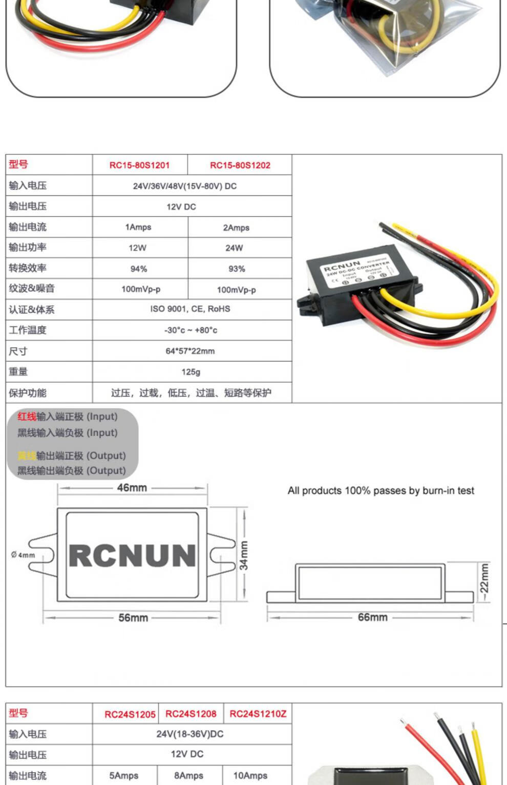 24v to 12v converter 24V to 12V high power step-down module DC-DC24V to 12V power converter 24V to 12V 5A-P flame retardant rubber shell
