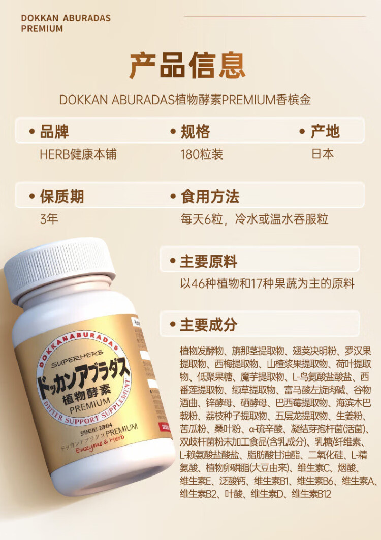 Healthy Shop (HERB) Japan imported DOKKAN plant enzyme tablets PREMIUM Doukang Night Enzyme Champagne Gold 180 tablets * 2 bottles