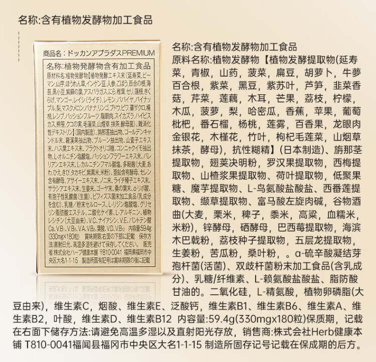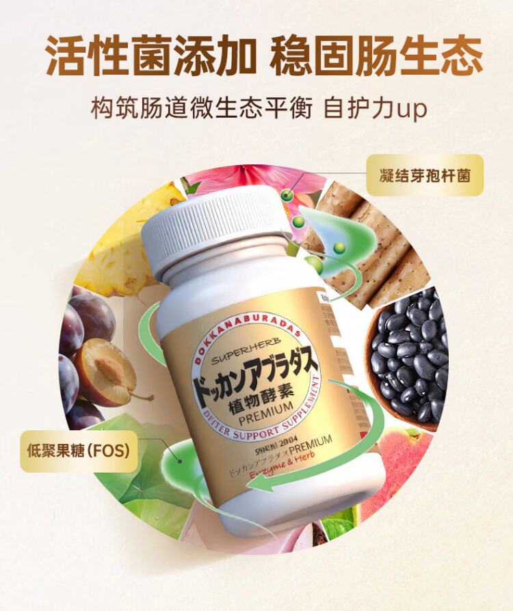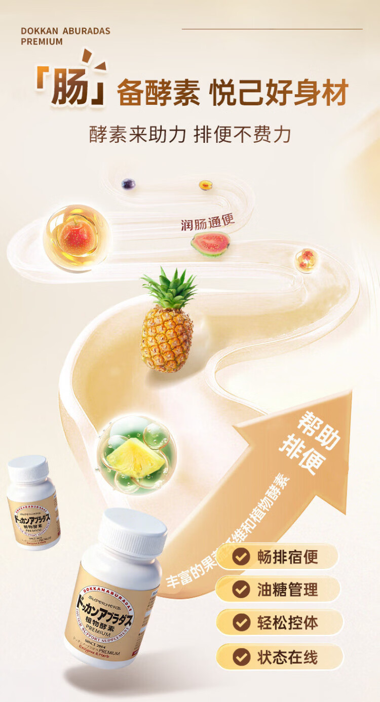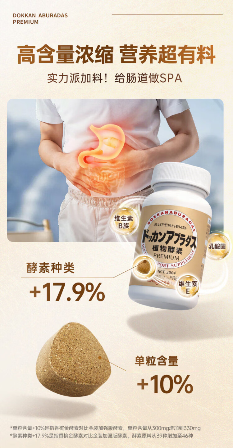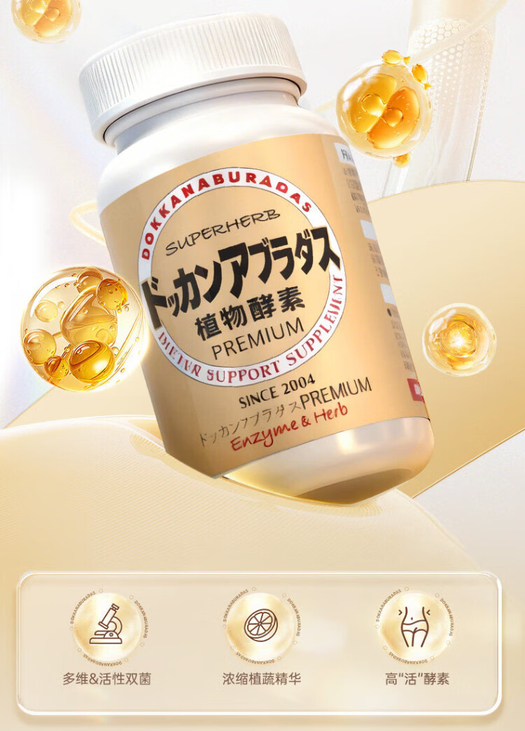 Healthy Shop (HERB) Japan imported DOKKAN plant enzyme tablets Doukang night intestinal enzyme original authentic champagne gold 180 tablets * 3 bottles (90-day quantity)