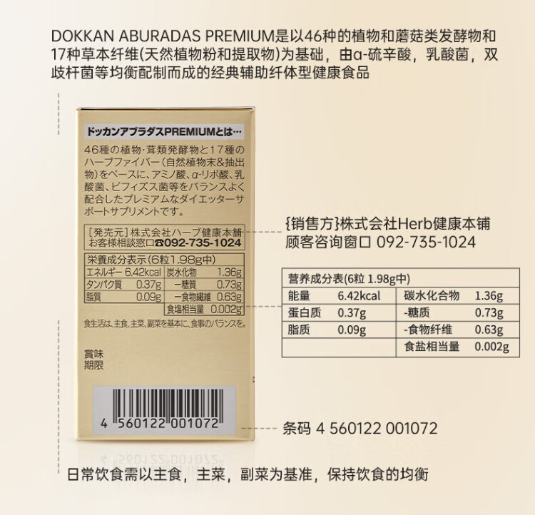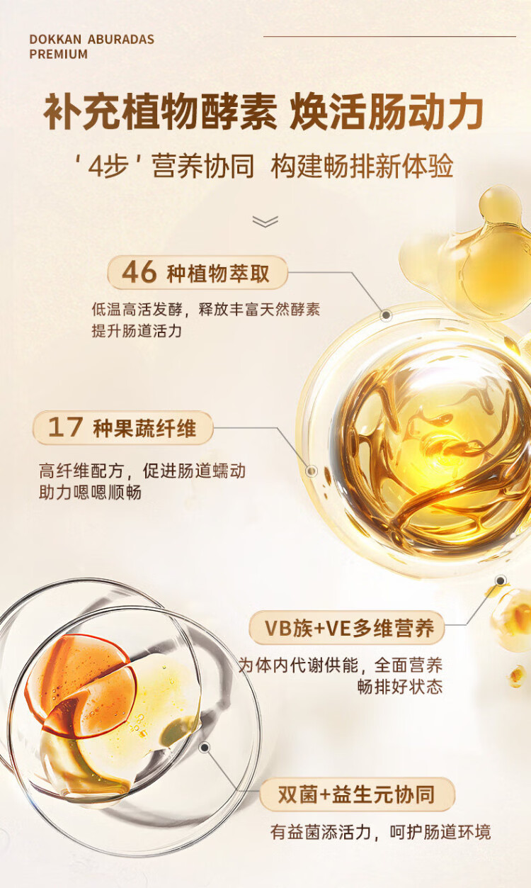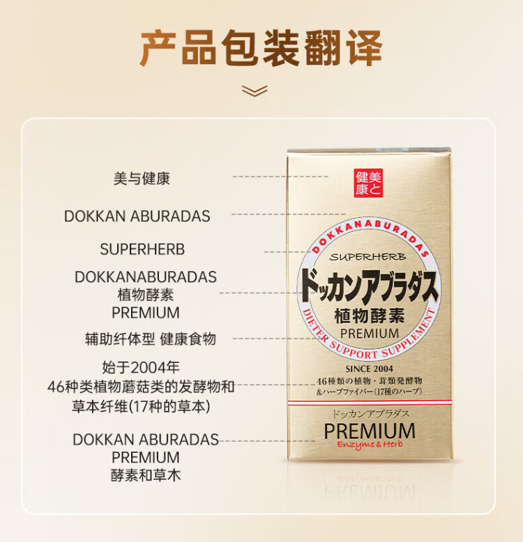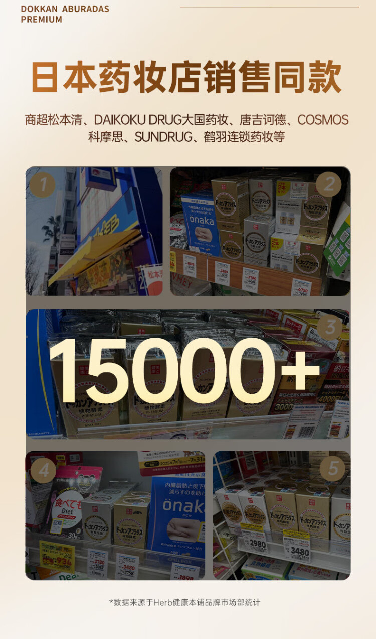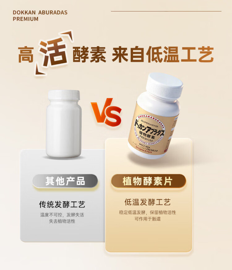 Healthy Shop (HERB) Japan imported DOKKAN plant enzyme tablets Doukang night intestinal enzyme original authentic champagne gold 180 tablets * 3 bottles (90-day quantity)