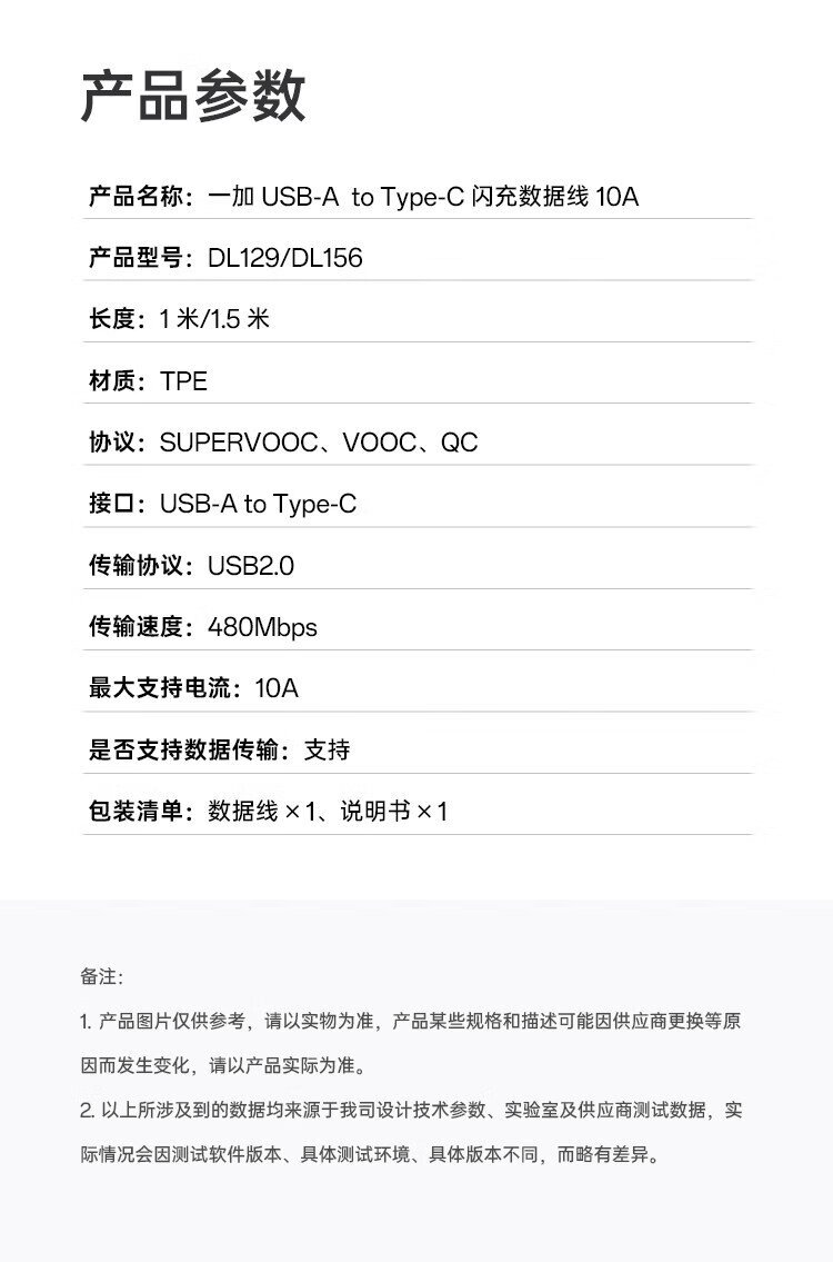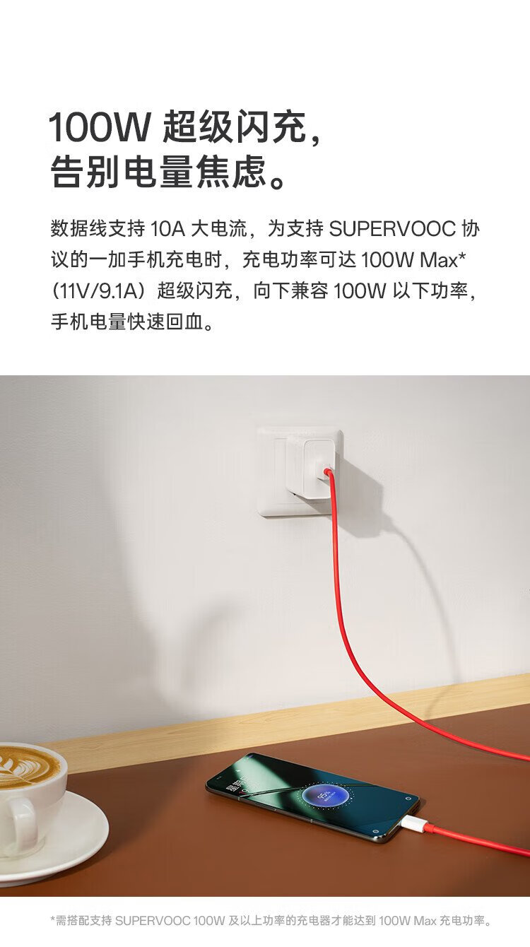 OnePlus original USB-A to Type-C flash charging data cable 10A 1 meter charging cable supports 100W Max multi-protocol compatible universal OPPO flash charging data cable 10A 1 meter