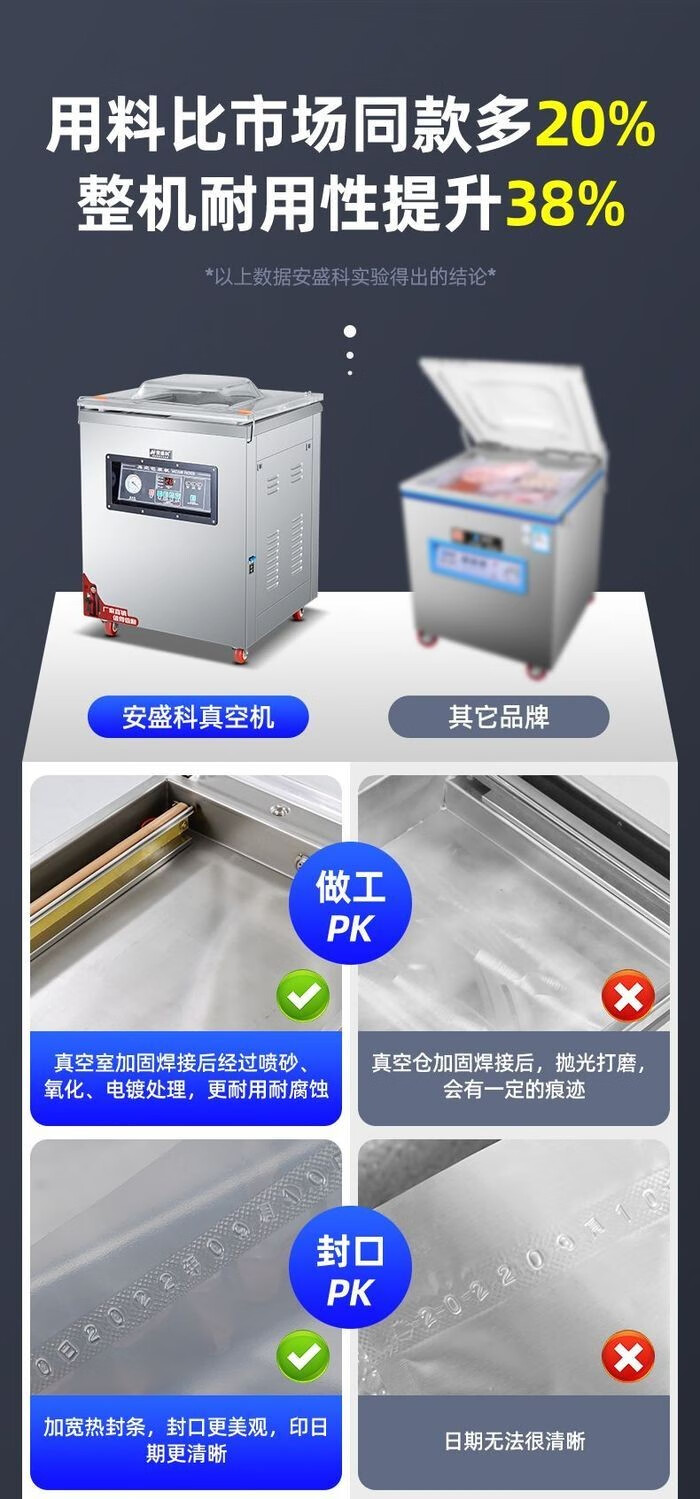 Anshengke Vacuum Packaging Machine Commercial Vacuum Machine Plastic Sealing Machine Vacuum Sealing Machine Household Vacuum Fully Automatic Wet and Dry Chicken, Duck and Goose Zongzi Export Model 280TL Large Desktop Model Copper Core Single Pump-Dry and Wet Oil Powder