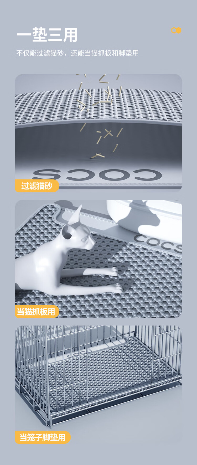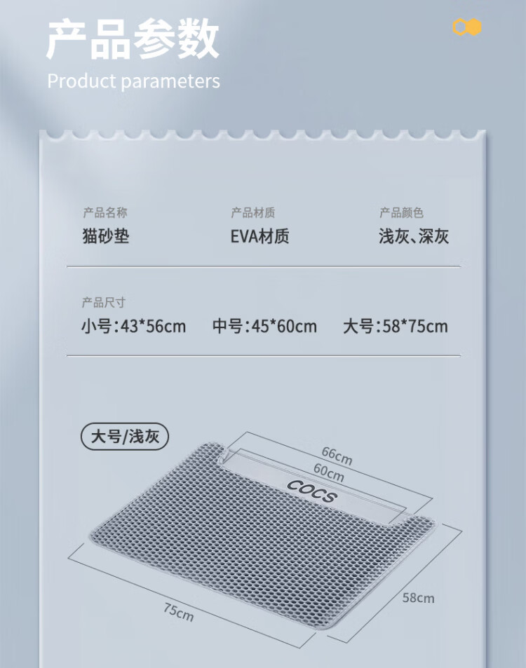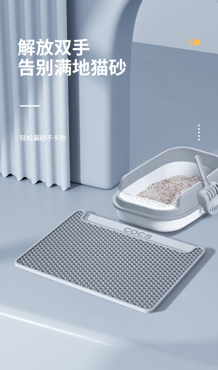 COCS Double Layer Cat Litter Mat Anti-leaking Large Cat Litter Box Sand Control Mat Anti-Splash Filter Sand Leaking Cat Toilet Foot Mat Floor Mat Double Layer Cat Litter Mat Medium (56*43cm)