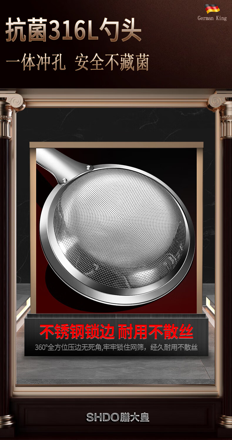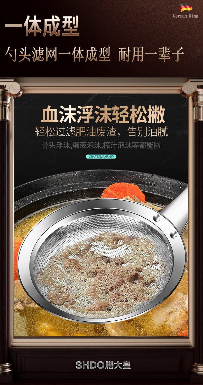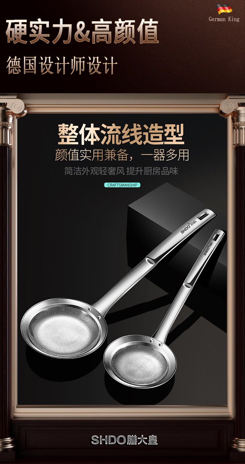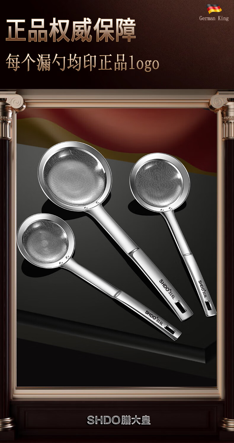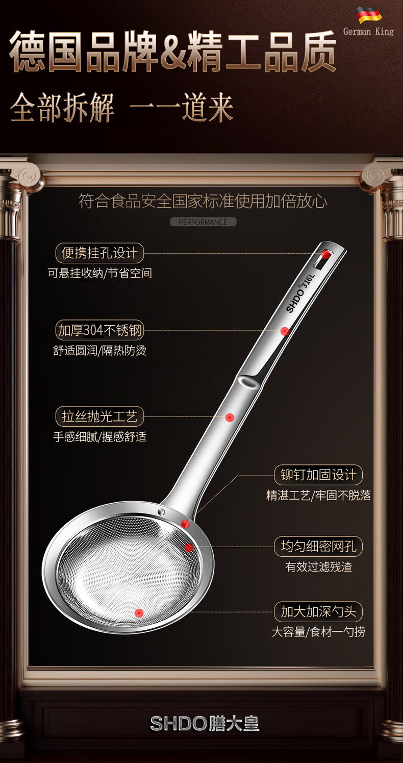 SHDO Germany 316 stainless steel colander, fine mesh oil filter, skimming foam spoon, blood foam spoon, grinding spoon, filter spoon, antibacterial 316L, medium size 27*9.3cm