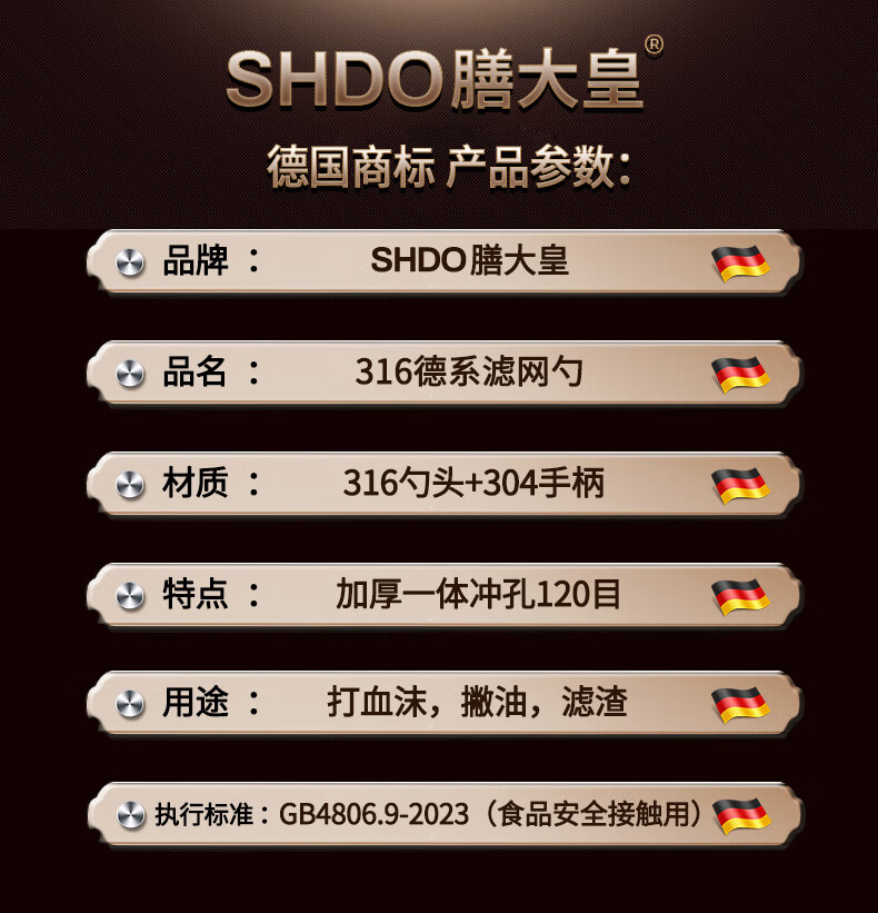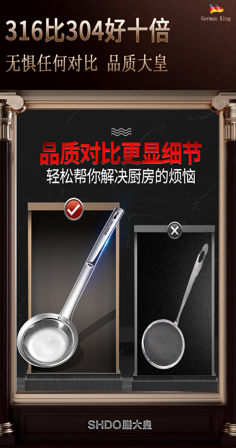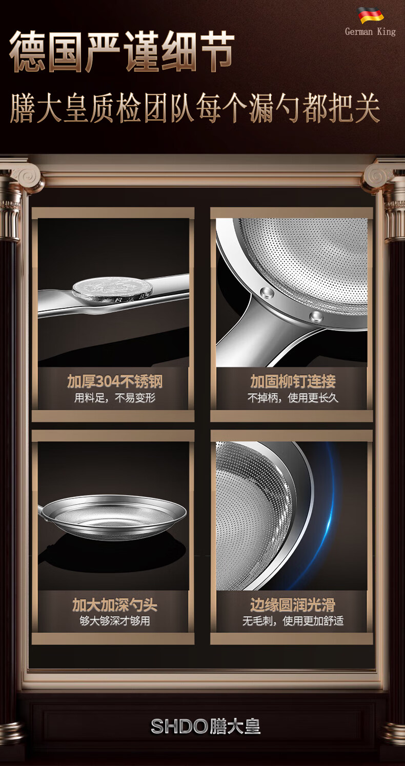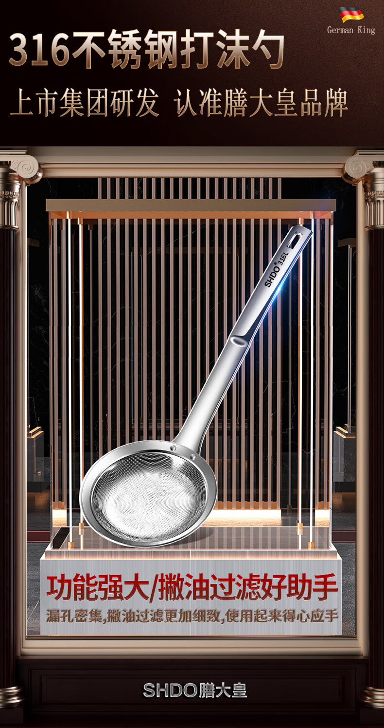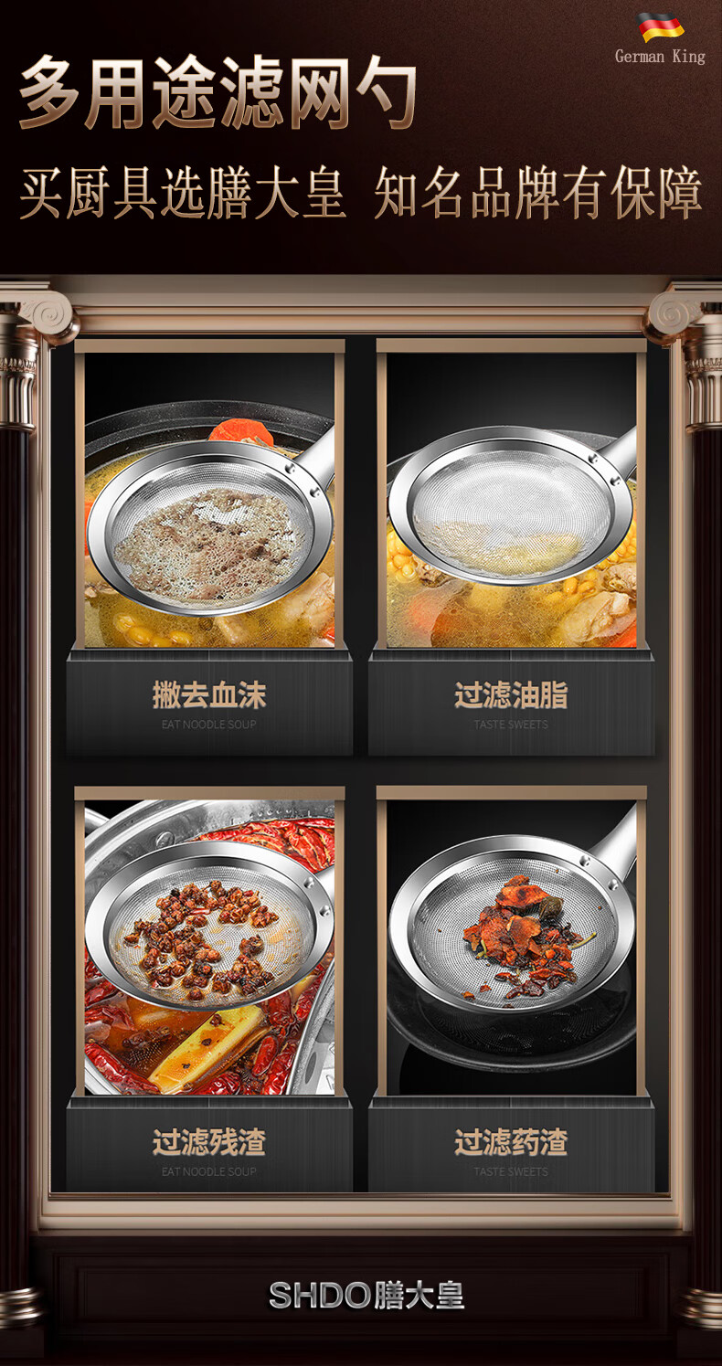 SHDO Germany 316 stainless steel colander, fine mesh oil filter, skimming foam spoon, blood foam spoon, grinding spoon, filter spoon, antibacterial 316L, medium size 27*9.3cm
