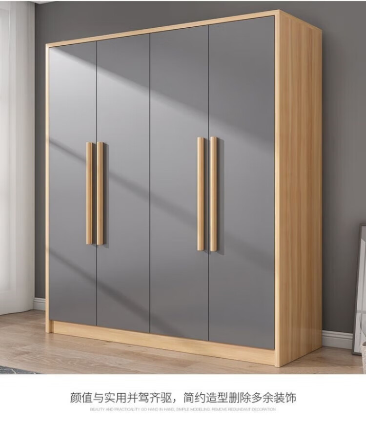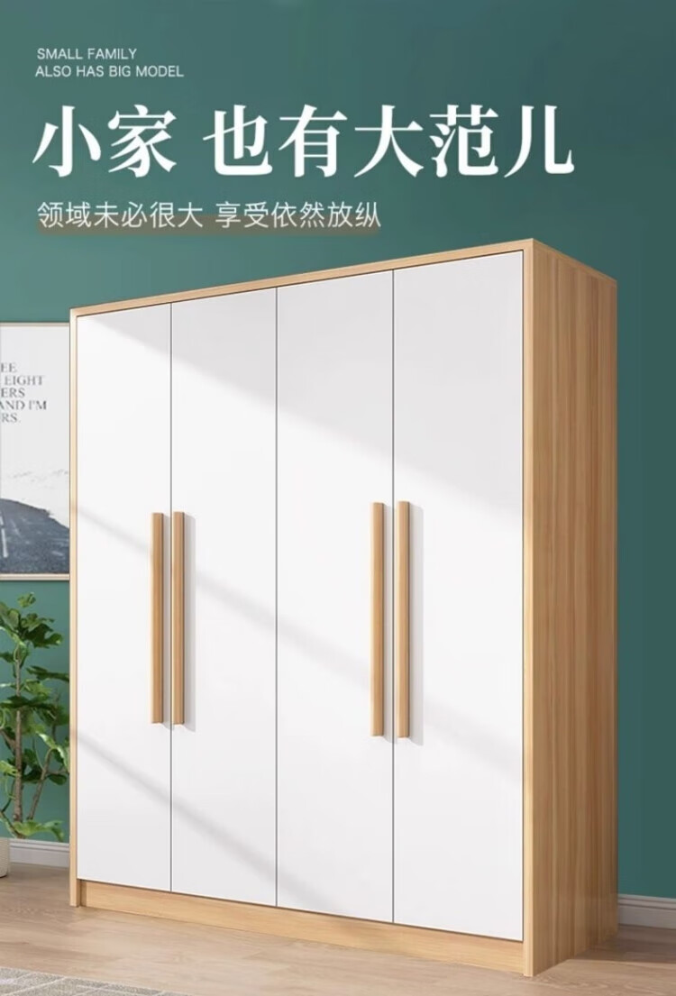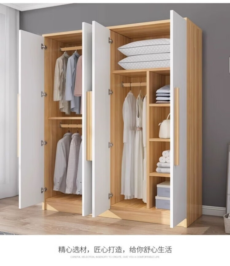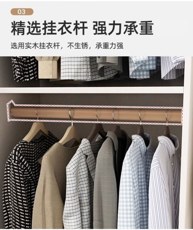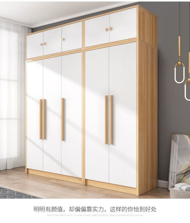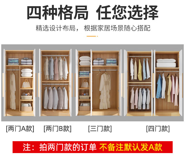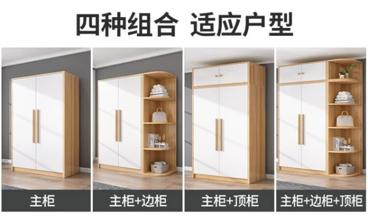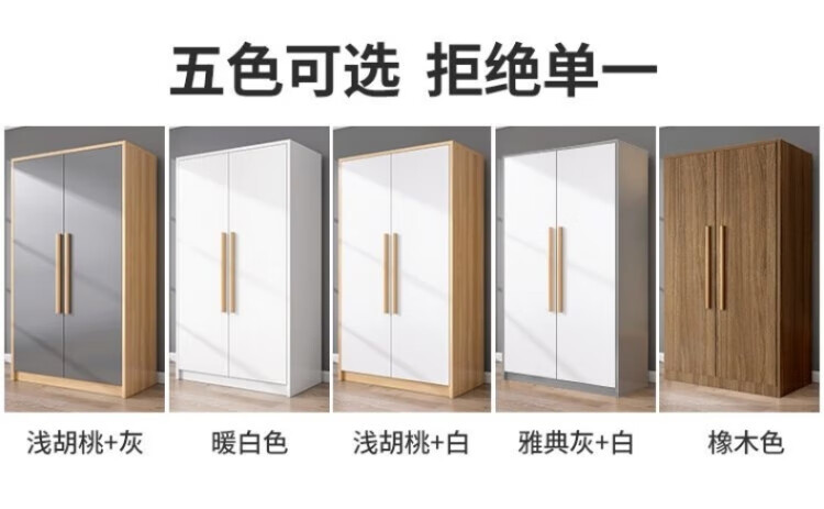 Shuxun door-to-door installation wardrobe modern simple solid wood clothes rail economical simple assembly rental bedroom two doors 80*40*180 warm white + walnut color self-installation