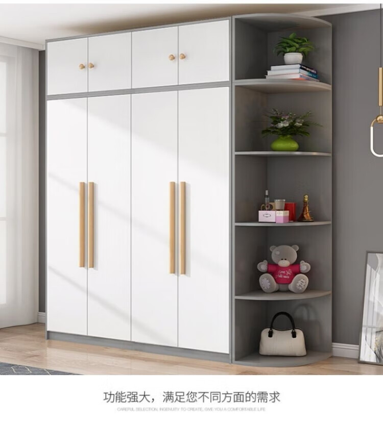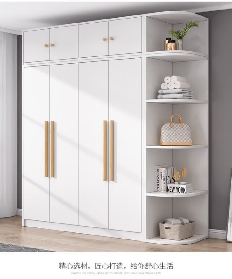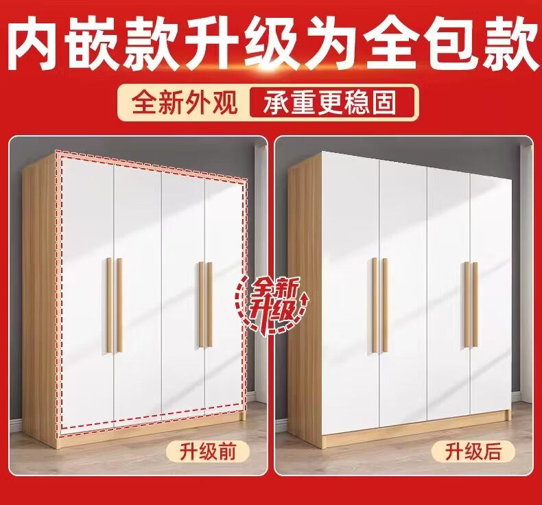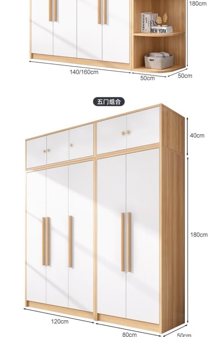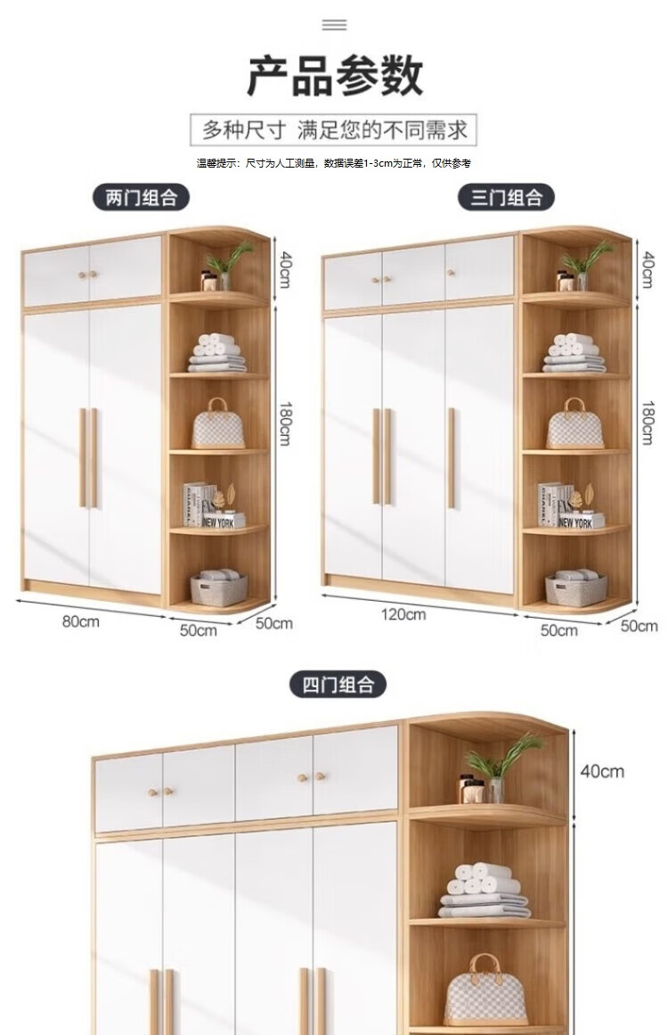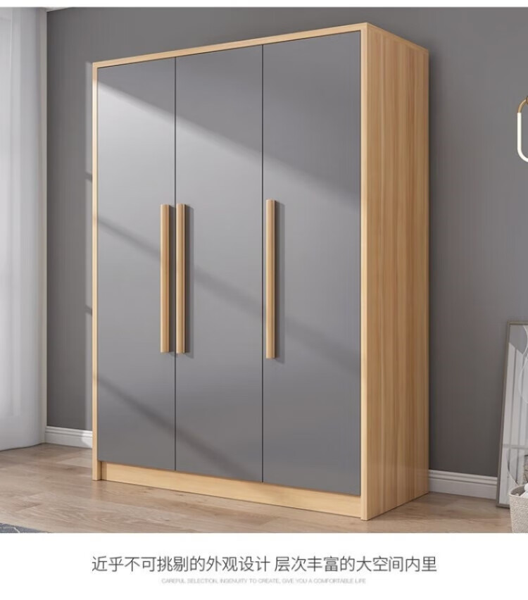 Shuxun door-to-door installation wardrobe modern simple solid wood clothes rail economical simple assembly rental bedroom two doors 80*40*180 warm white + walnut color self-installation