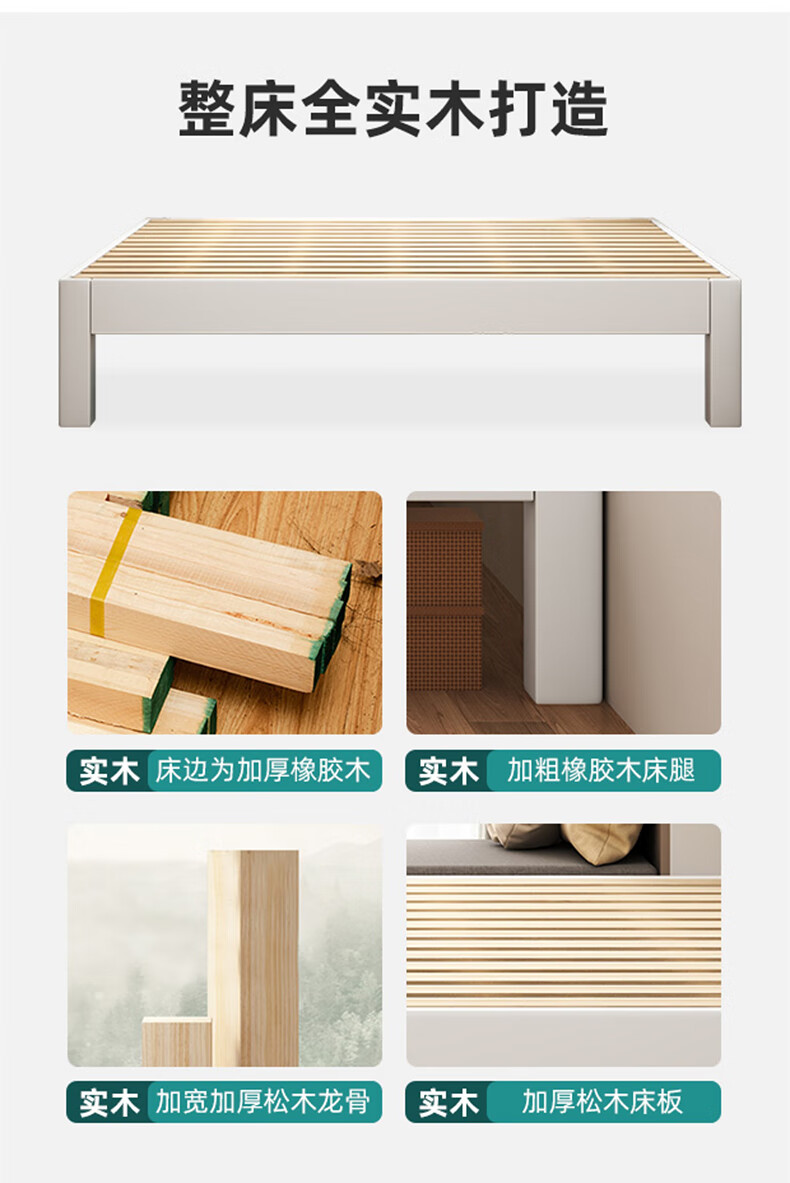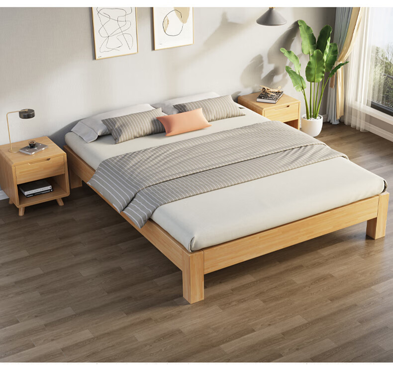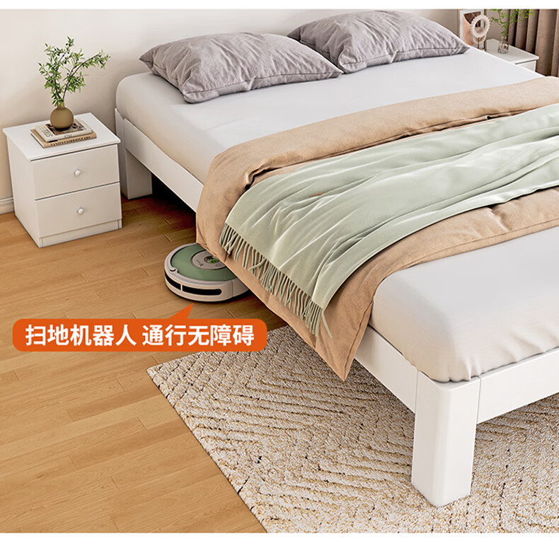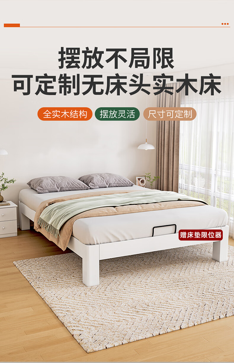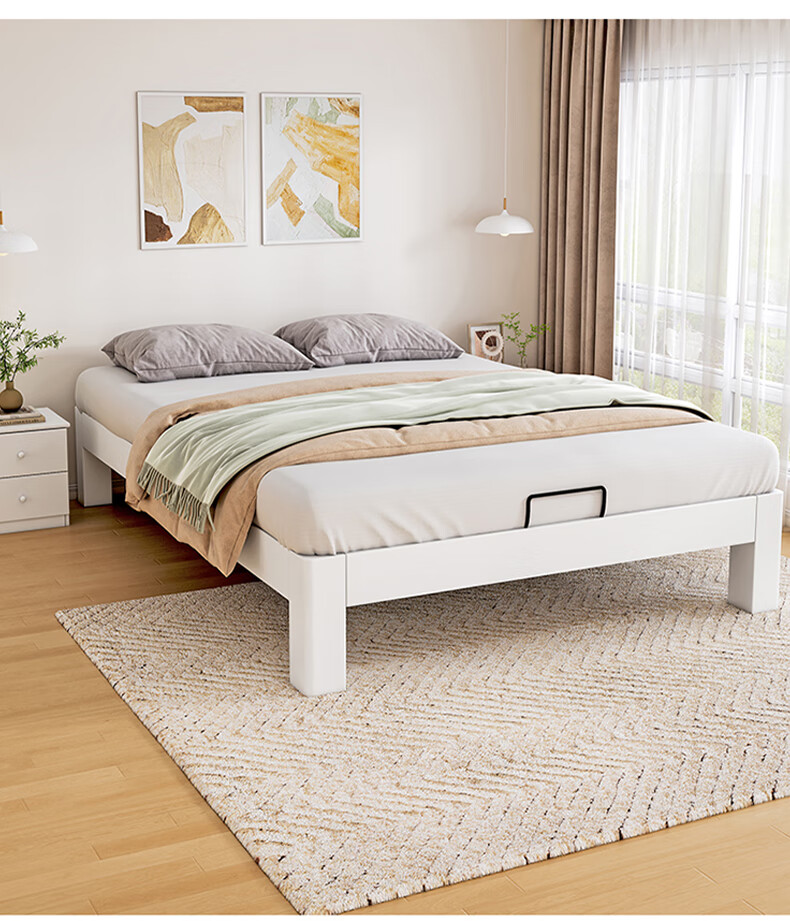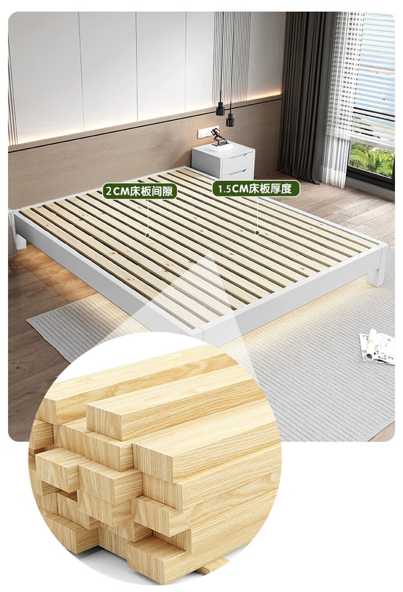 Bamboo Sile solid wood bed without bedside bed, customized bed frame, any size bed frame without backrest, single couch/tamat bed without bedside bed (default high-leg white) 1500*2000mm