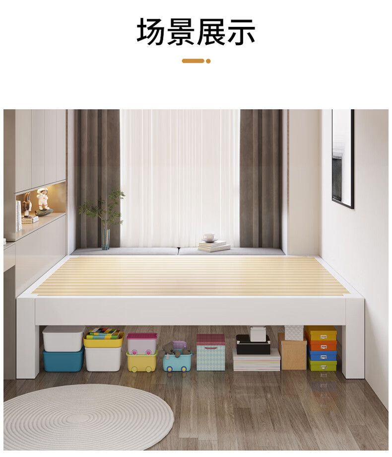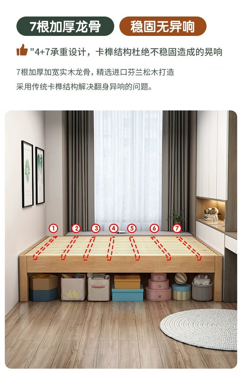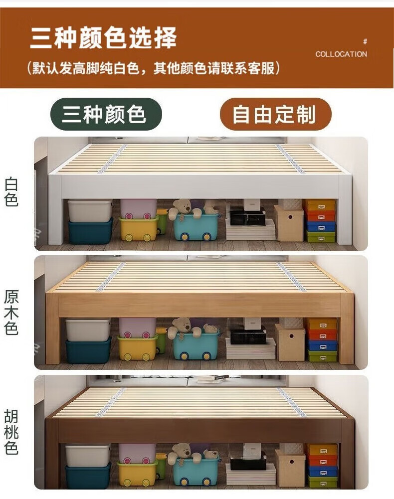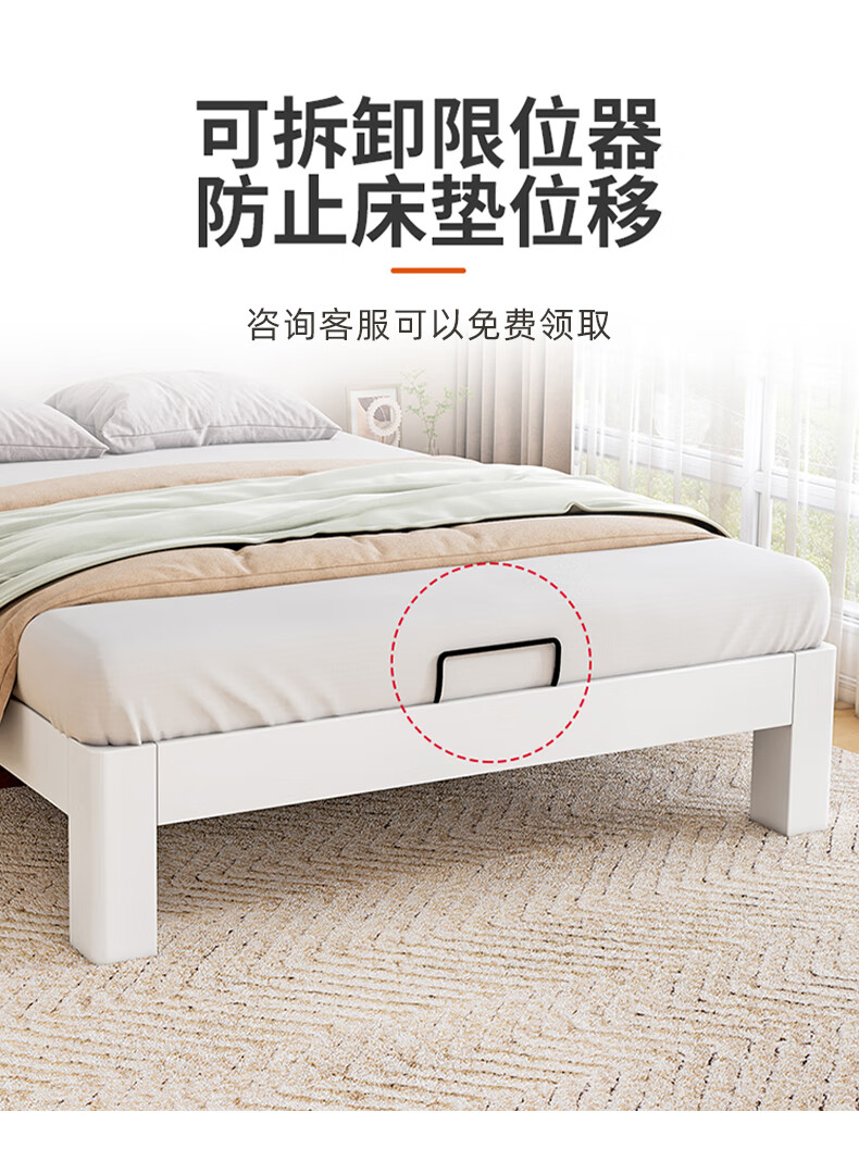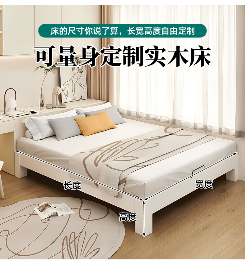 Bamboo Sile solid wood bed without bedside bed, customized bed frame, any size bed frame without backrest, single couch/tamat bed without bedside bed (default high-leg white) 1500*2000mm