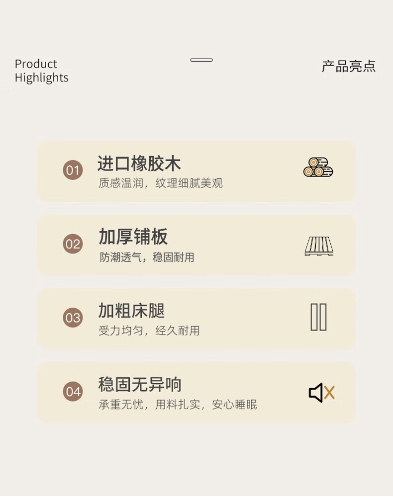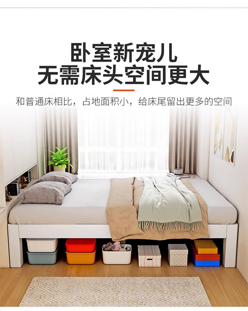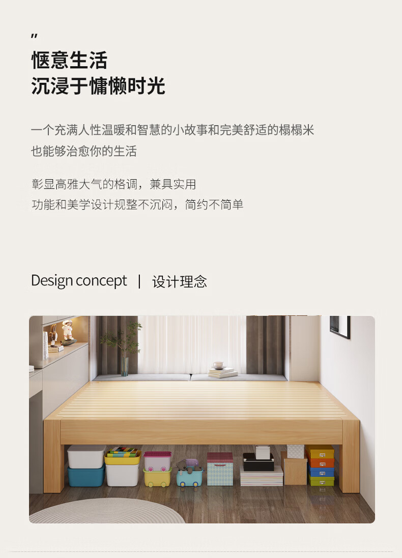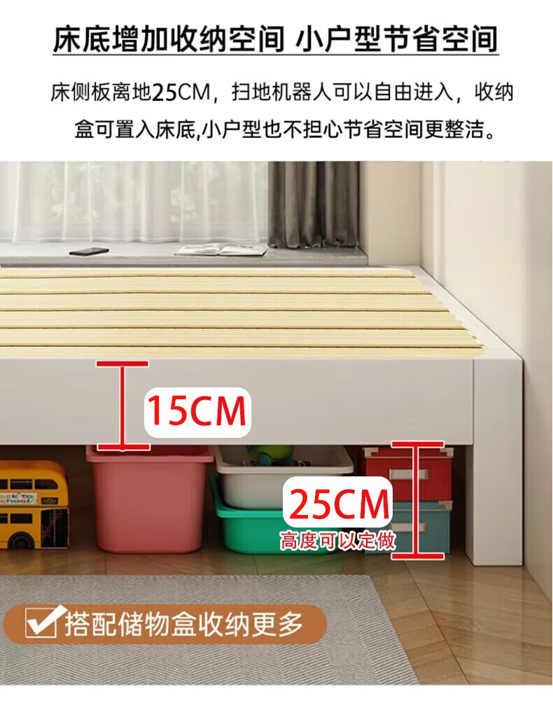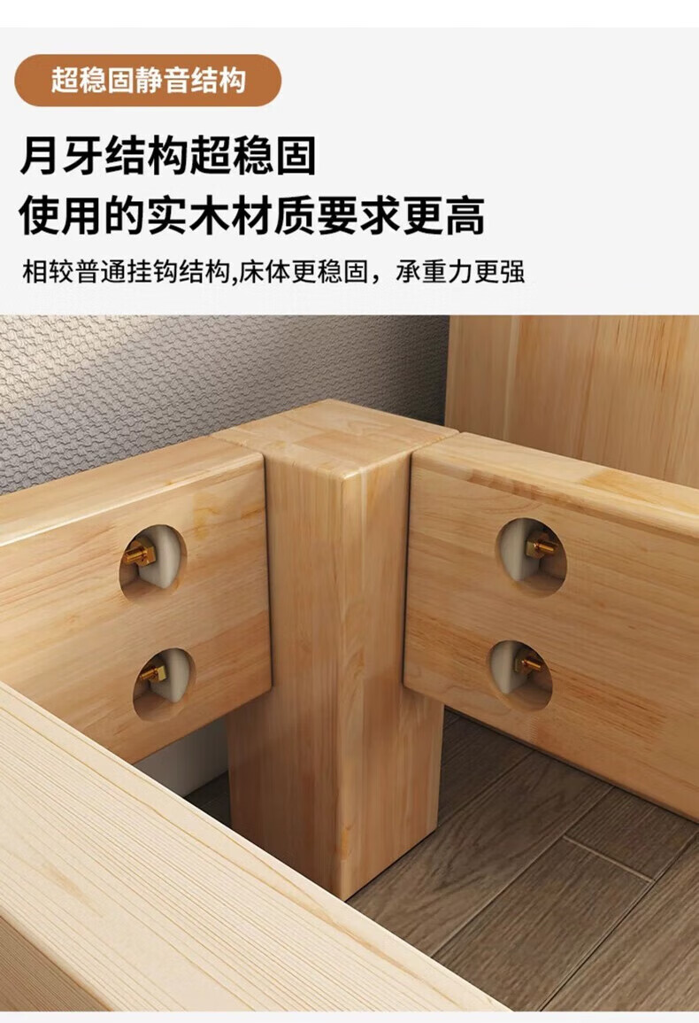 Bamboo Sile solid wood bed without bedside bed, customized bed frame, any size bed frame without backrest, single couch/tamat bed without bedside bed (default high-leg white) 1500*2000mm