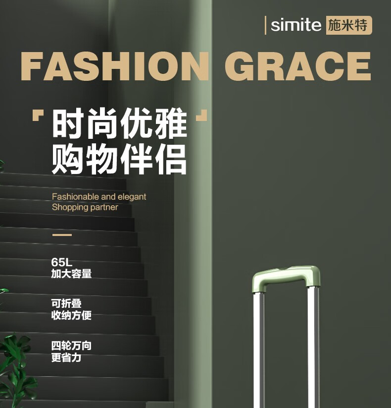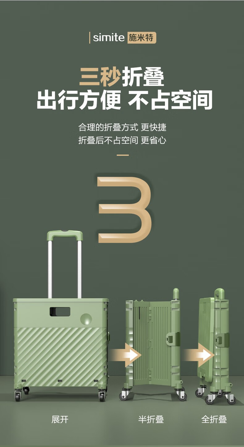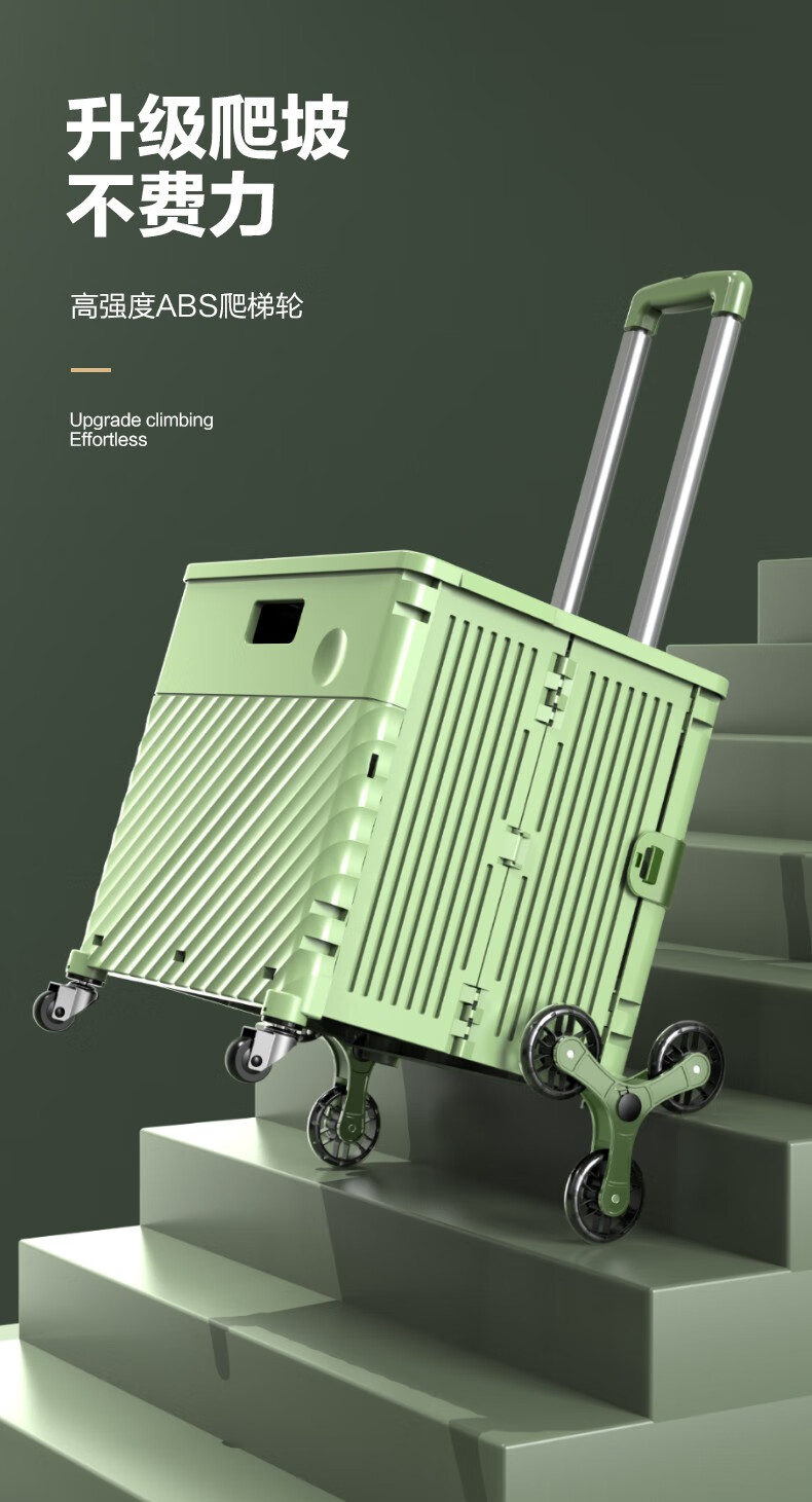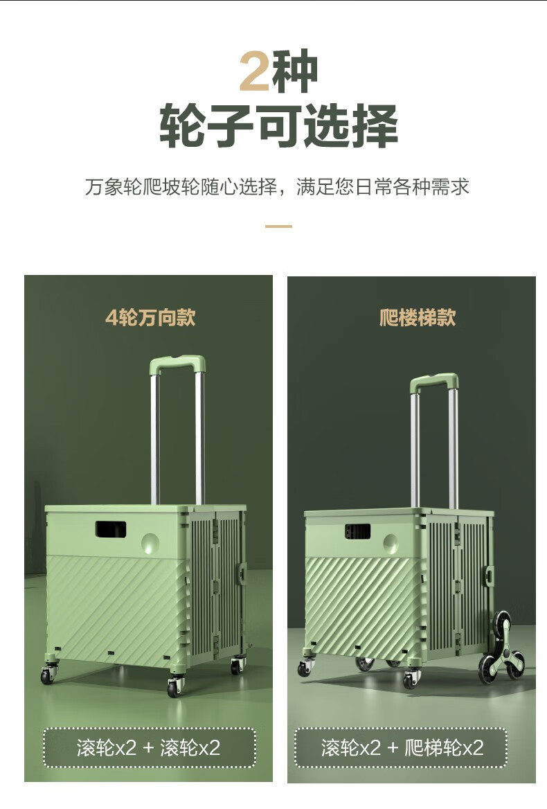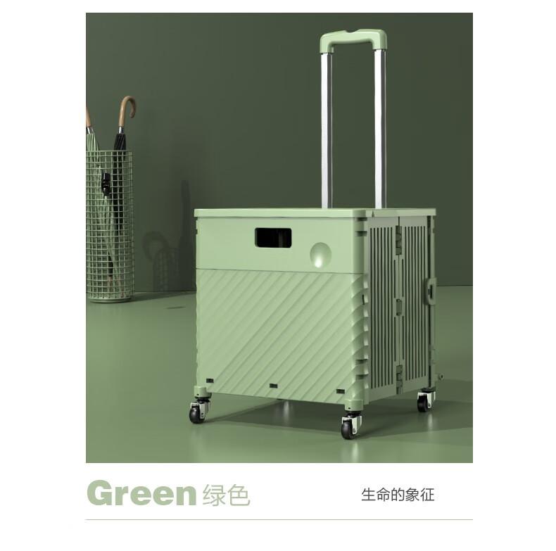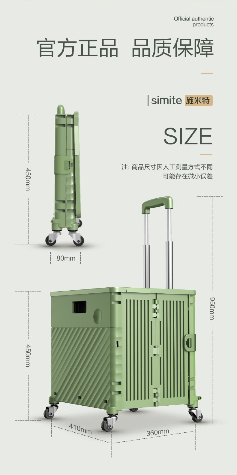 Schmitt grocery shopping cart, portable folding shopping trolley, trolley trolley, trailer for home delivery, light green 65L, upgraded thickened version, four-wheeled version