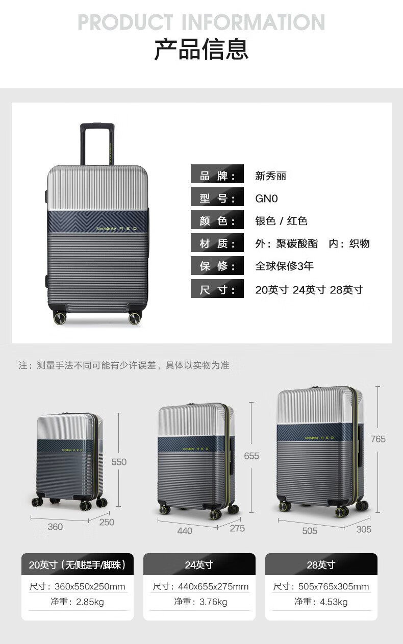 Samsonite luggage fashionable expandable hard case travel large capacity lightweight wedding dowry box for men and women \GN0 red 20 inches | 2.85kg | Expandable | No side handles