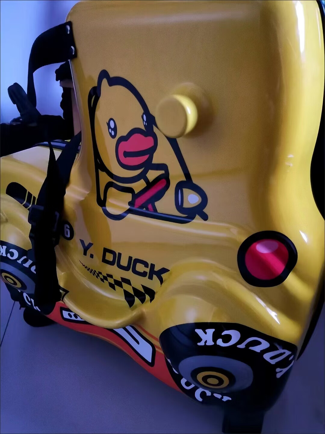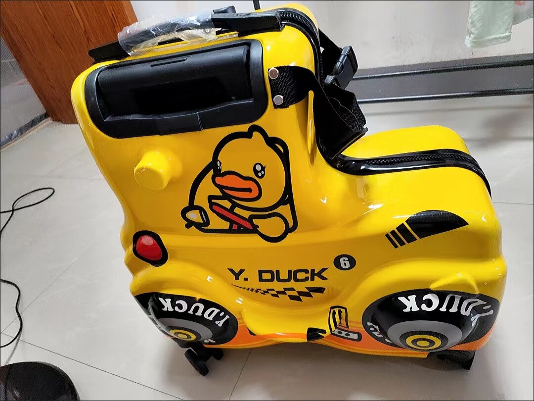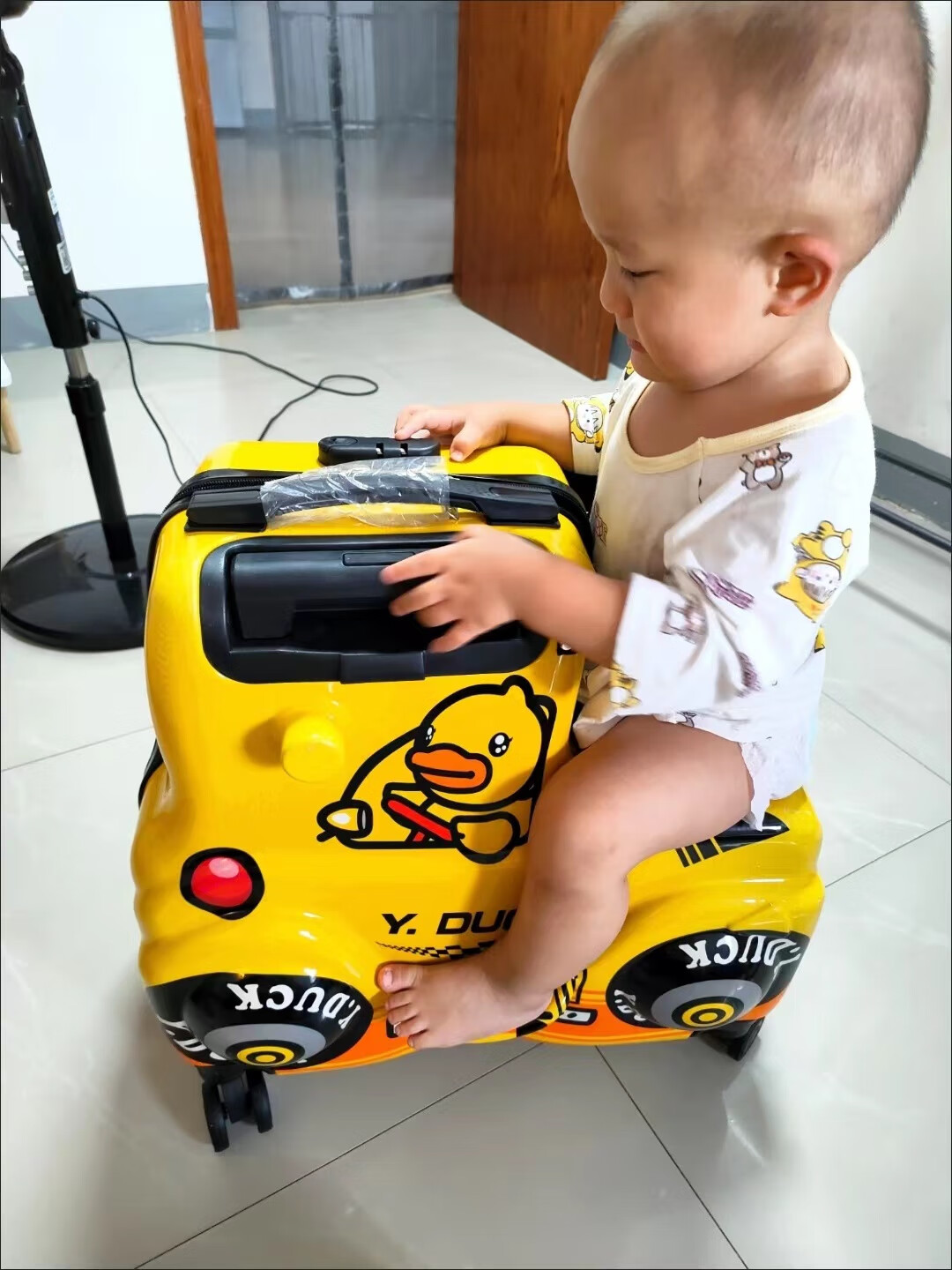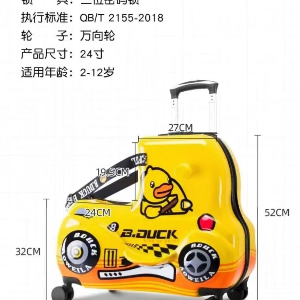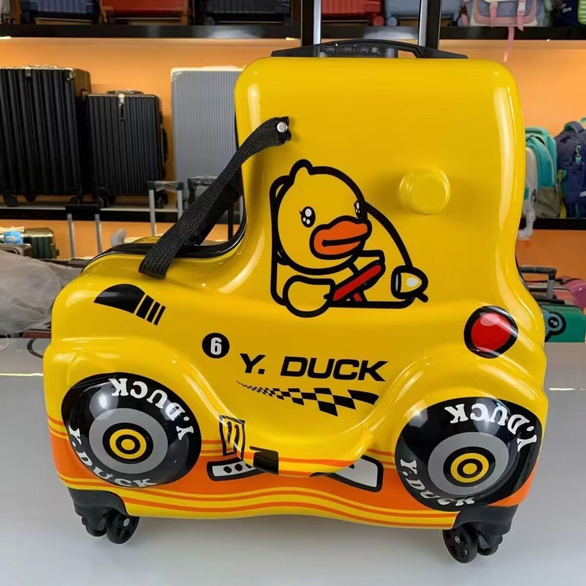 BARNOROO suitcase children's sit and ride cartoon trolley case little yellow duck cute car creative children's trolley case 24-inch car riding case zipper