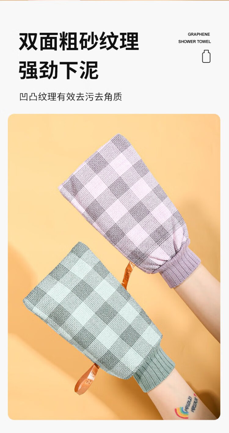 Leli Bath Towel Gloves Graphene Antibacterial Bath Towel Bathing Magic Powerful Mud Rubbing Ash Coarse Sand Unisex Graphene Antibacterial Bath Towel 2 Pieces
