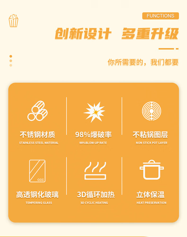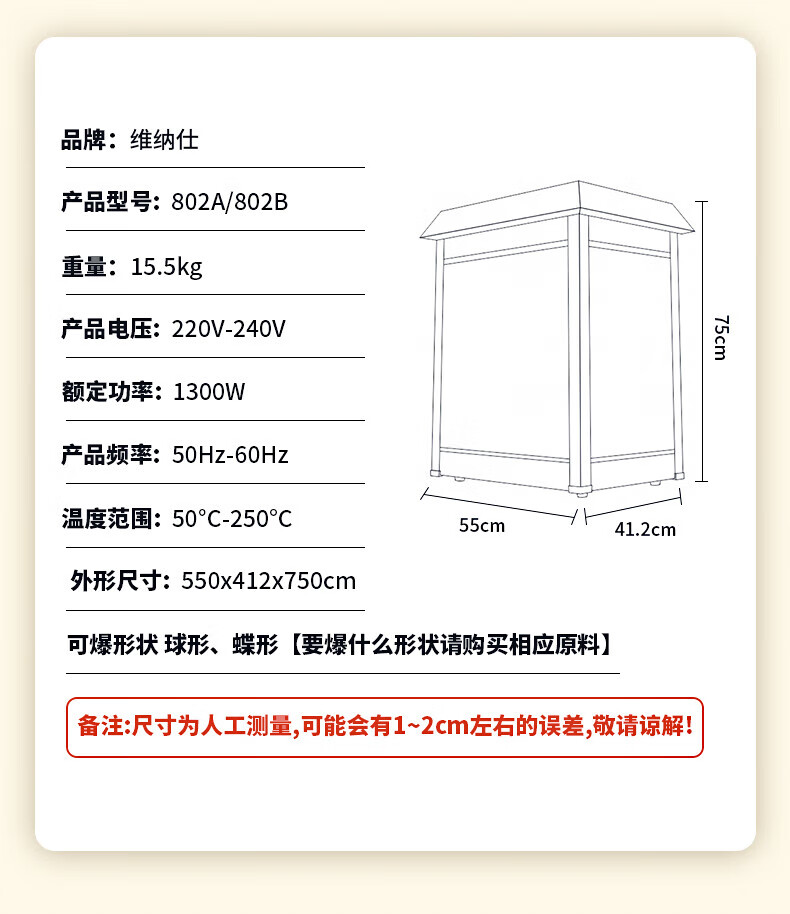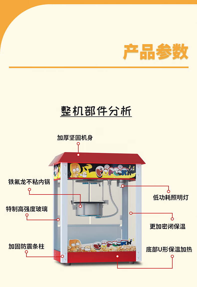 Venus popcorn machine, commercial stall, electric popcorn popcorn snack puffer, popcorn machine, popcorn machine, 46 barrels/500 pieces