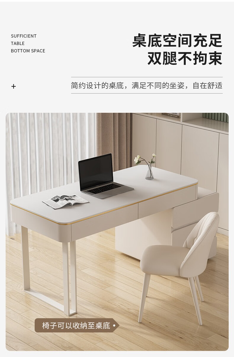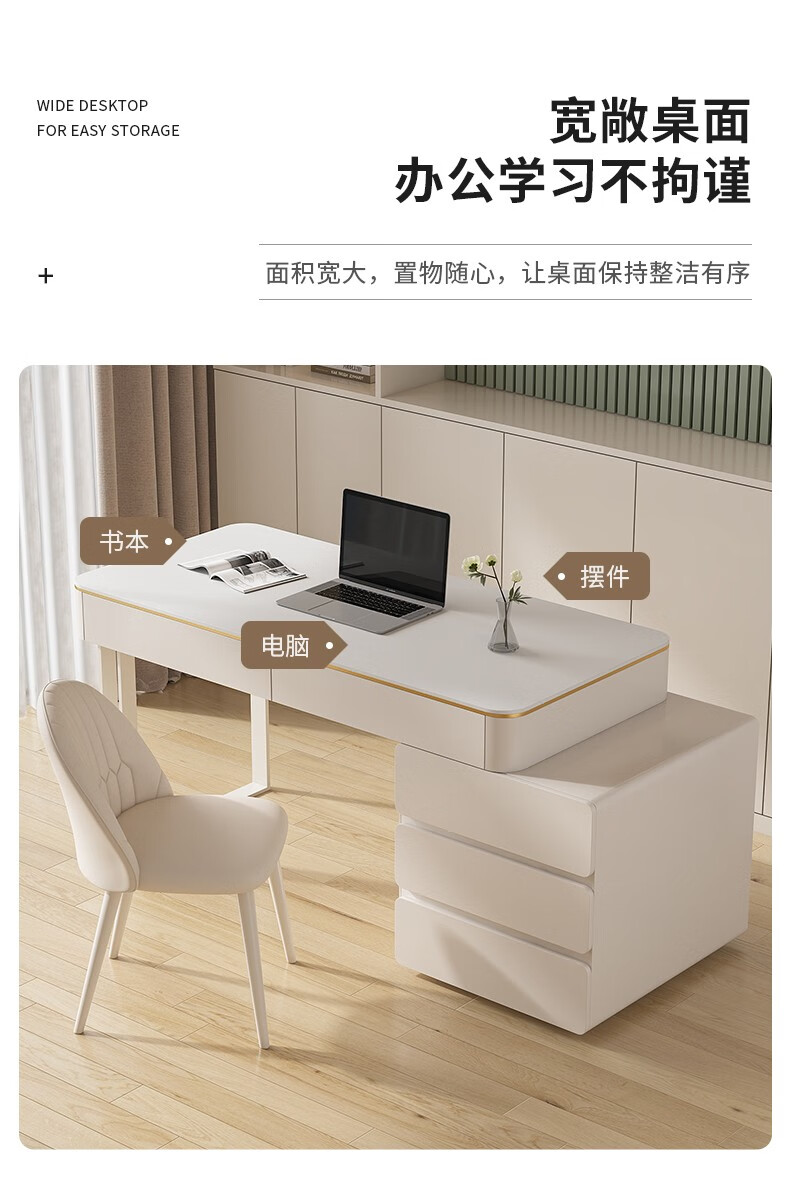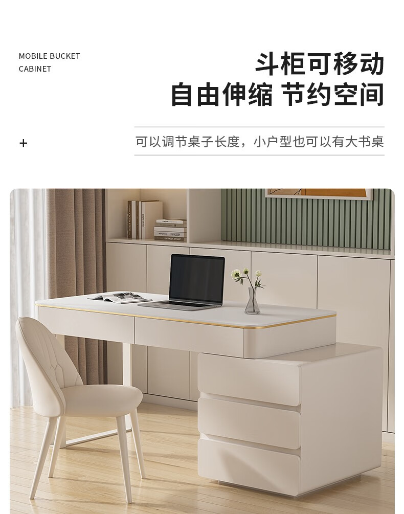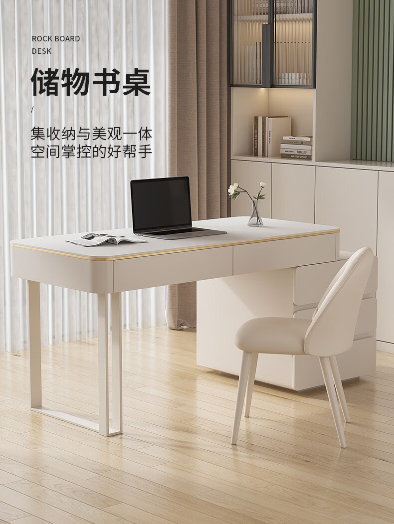 ZUOKEZUOJIA slate desk cream style pure white with cabinet integrated light luxury modern small apartment study desk office computer desk pure white slate desk with cabinet 100