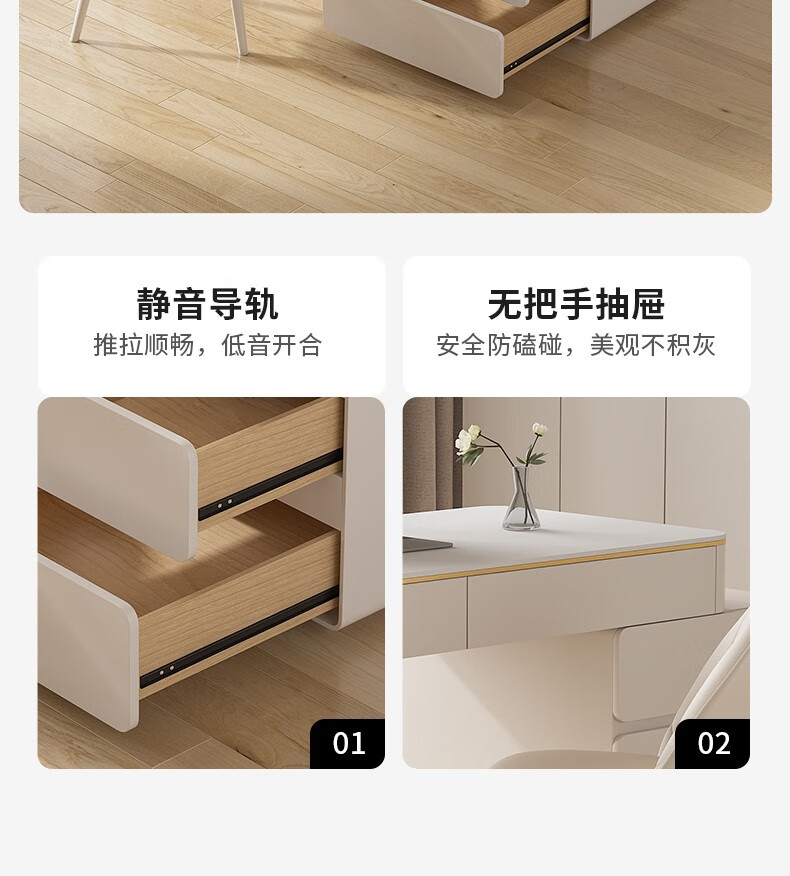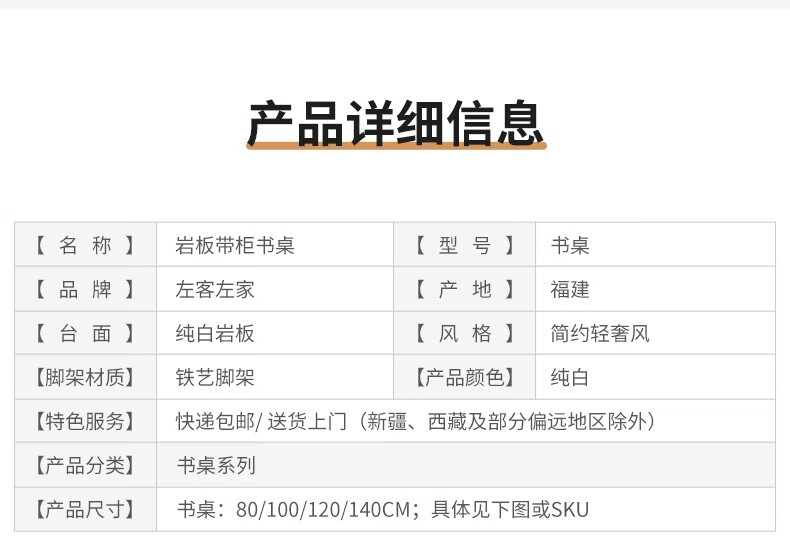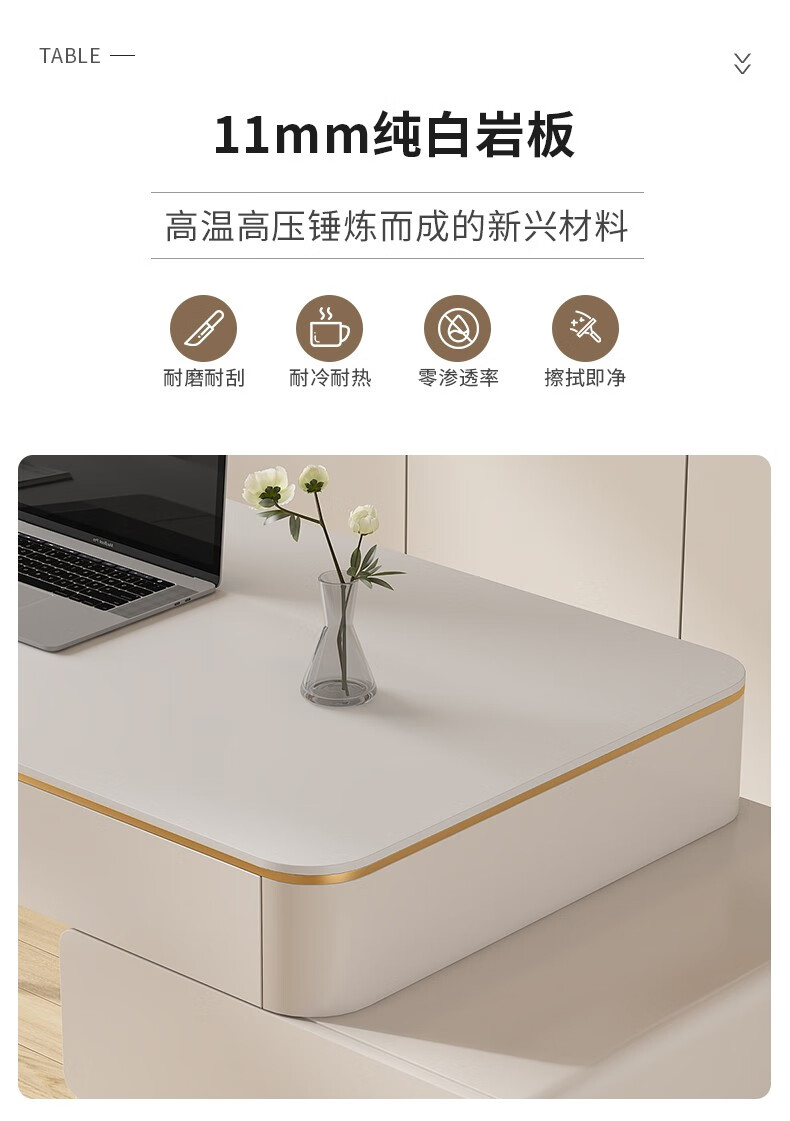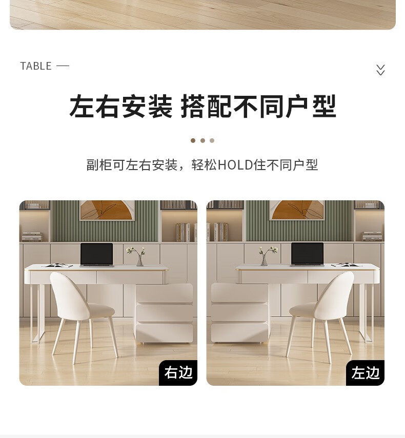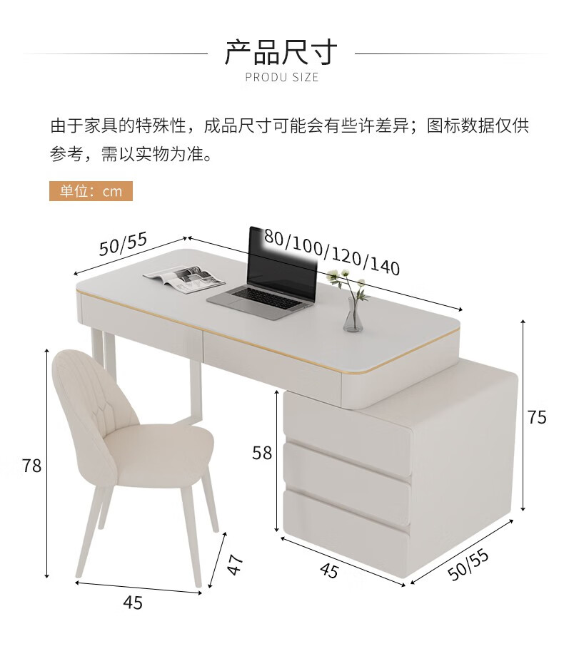 ZUOKEZUOJIA slate desk cream style pure white with cabinet integrated light luxury modern small apartment study desk office computer desk pure white slate desk with cabinet 100