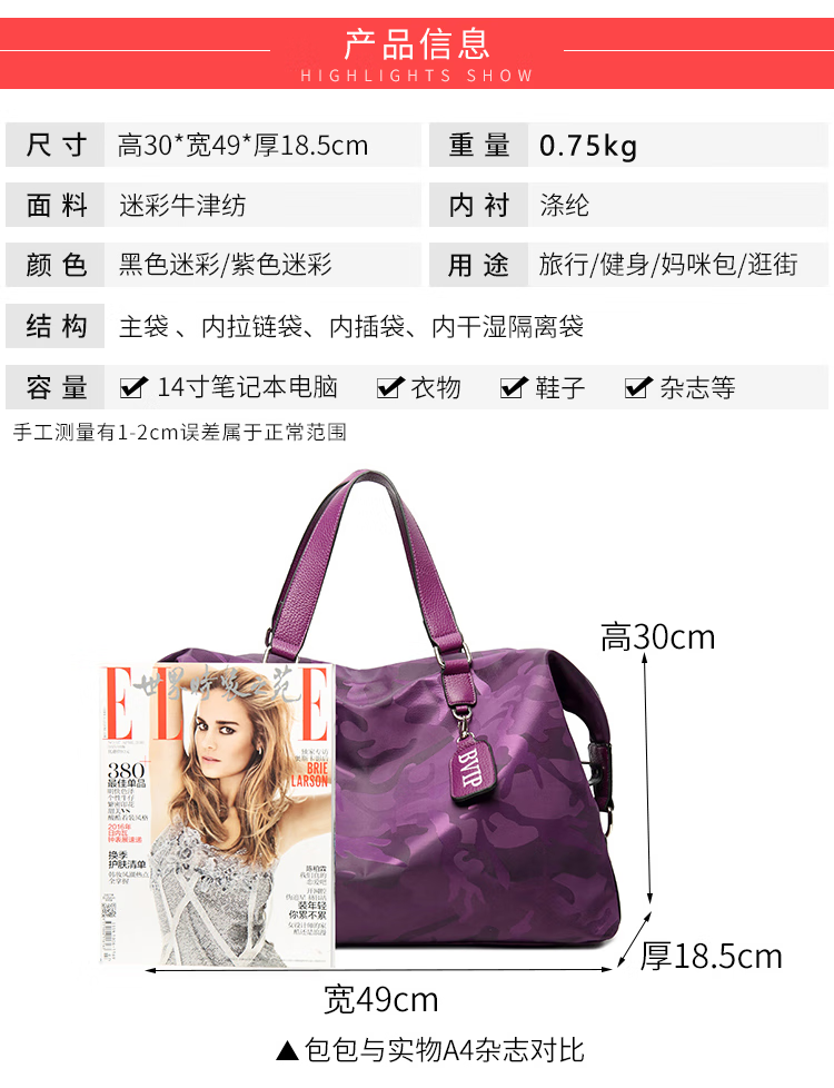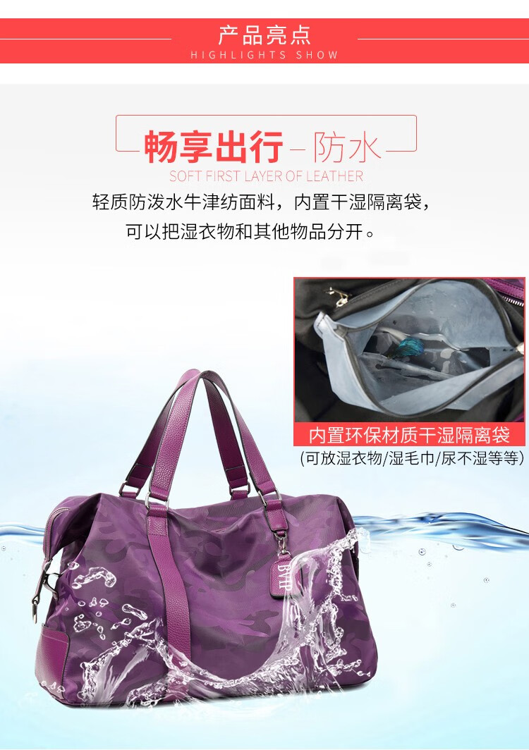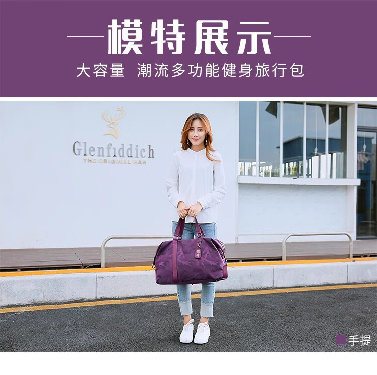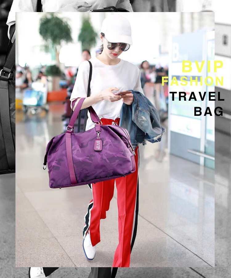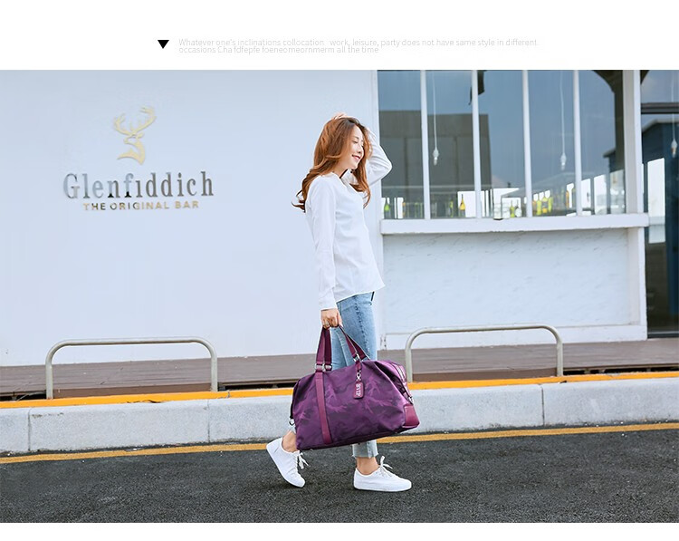 CRISP KERREIN Hong Kong brand travel bag women's short-distance portable luggage bag large capacity travel bag Korean version boarding bag fitness bag trendy purple 1010 ready for delivery on the same day