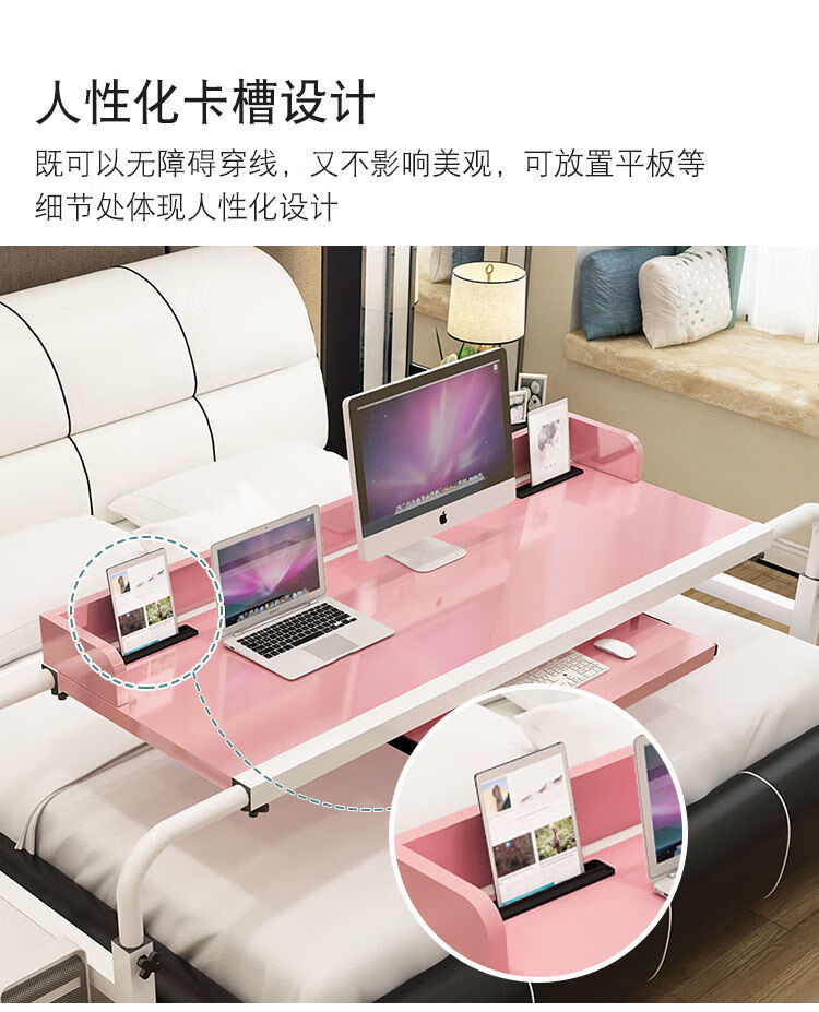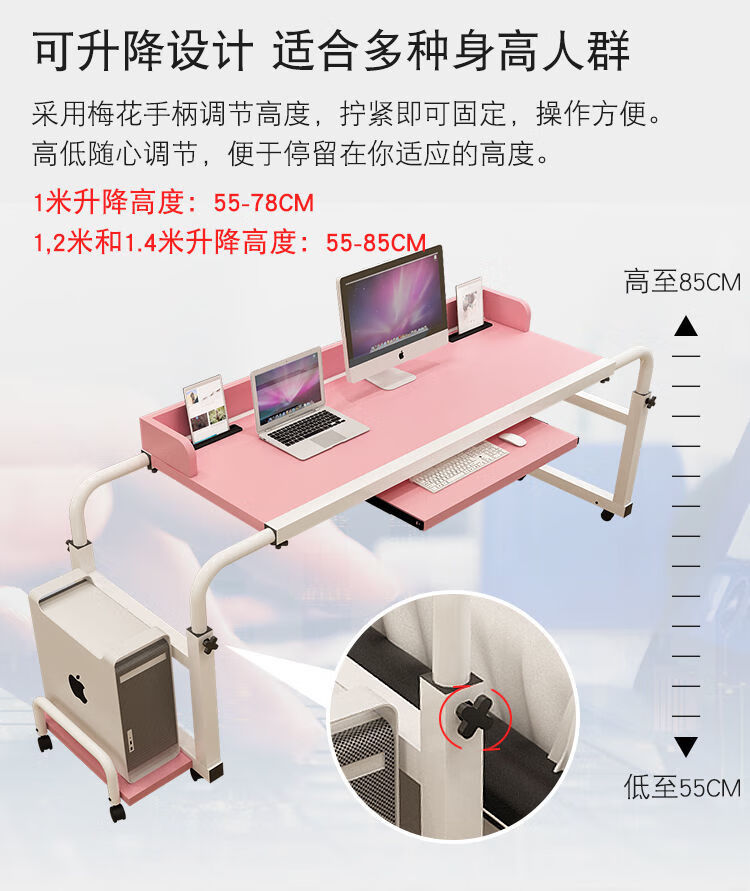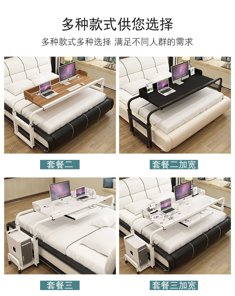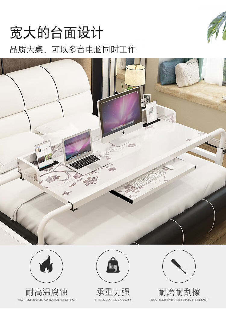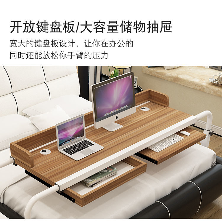 Hongqingxin double telescopic removable lifting laptop desktop computer table bed household lazy cross-bed nursing bed table 0.55 meters pure black package 0