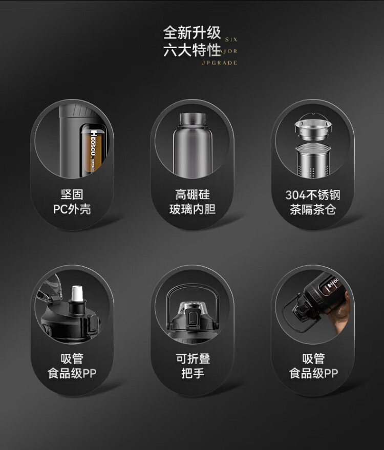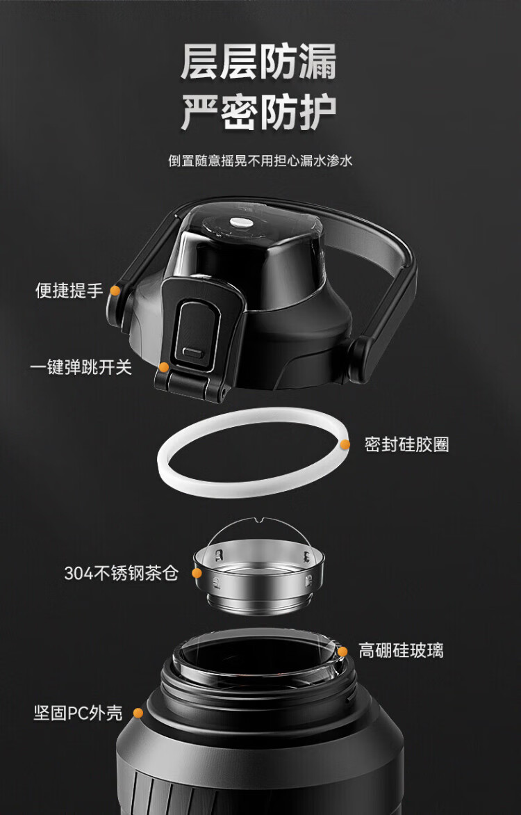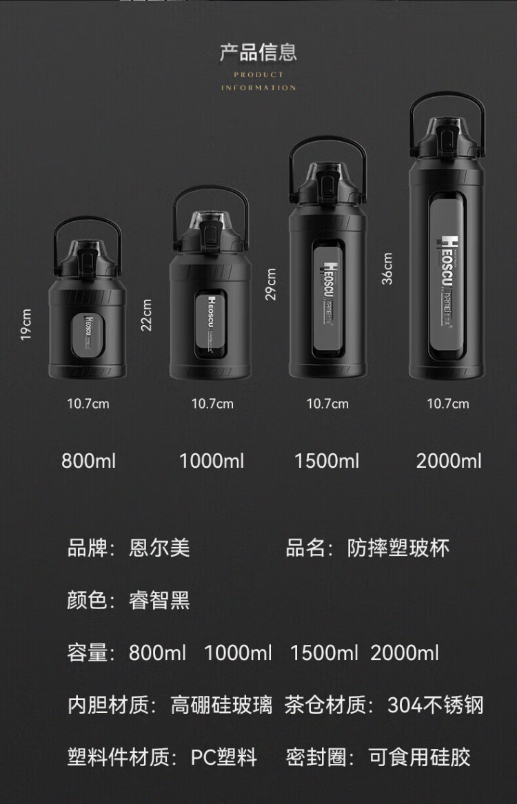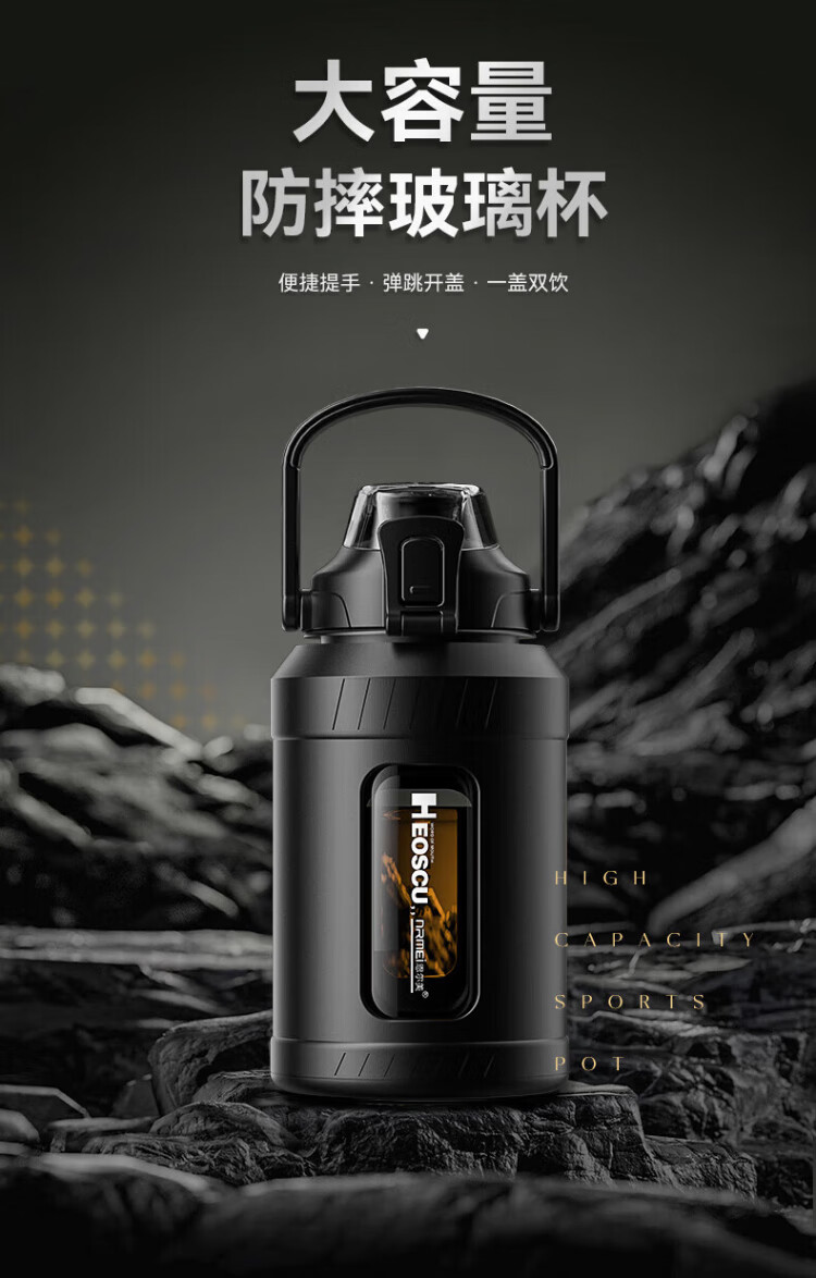 NRMEi big belly water cup large capacity kettle men's ton sports water cup high temperature resistant glass portable space cup black 800ML tea warehouse style + straw drinking