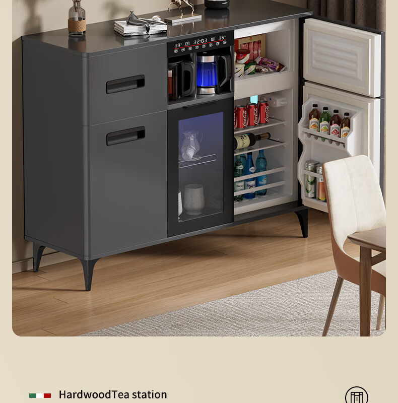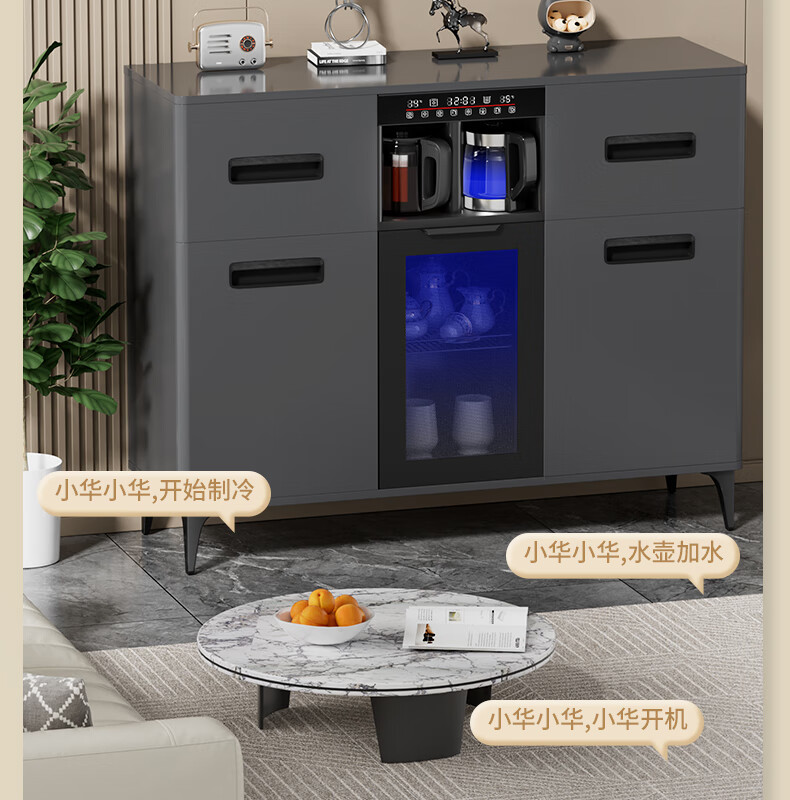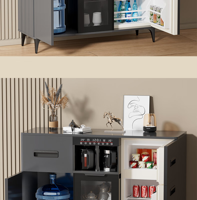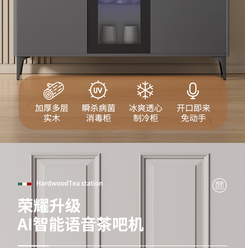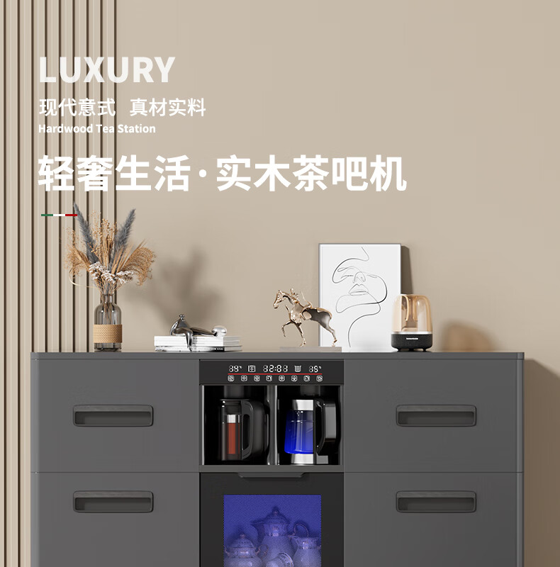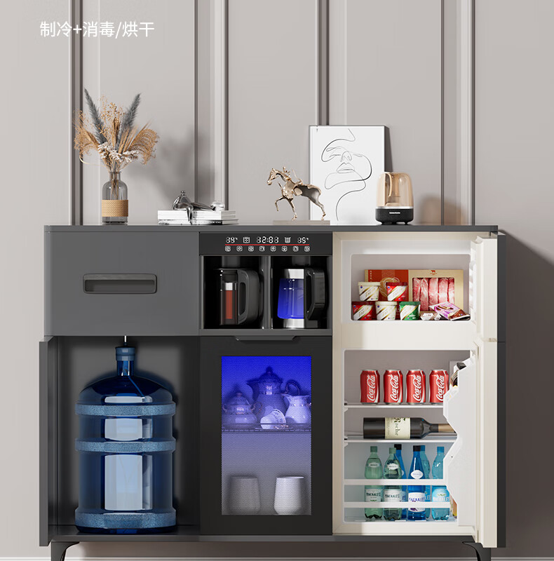 MEILINGDA Home Commercial Multifunctional Remote Control Intelligent Solid Wood Tea Bar Machine Fully Automatic Water Dispenser Living Room Tea Cabinet Sideboard Refrigerator Red Wine Refrigerator Frozen Bottle Sterilizer Cabinet Solid Wood 621 High-Grade Gray (Fridge Refrigerator Freezer + Disinfection Cabinet) Hot and Cold Type Ice Warm