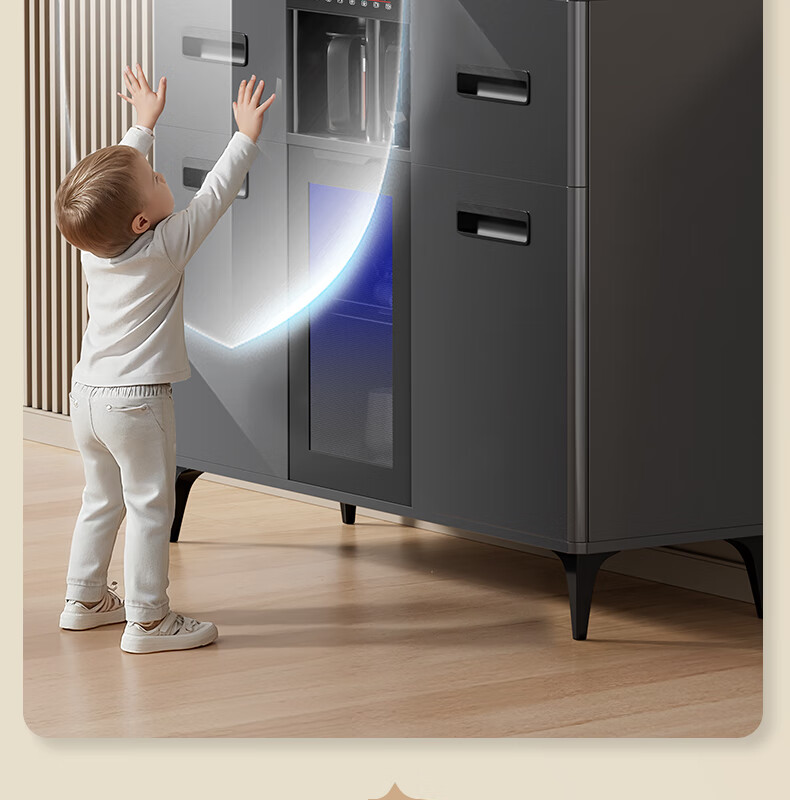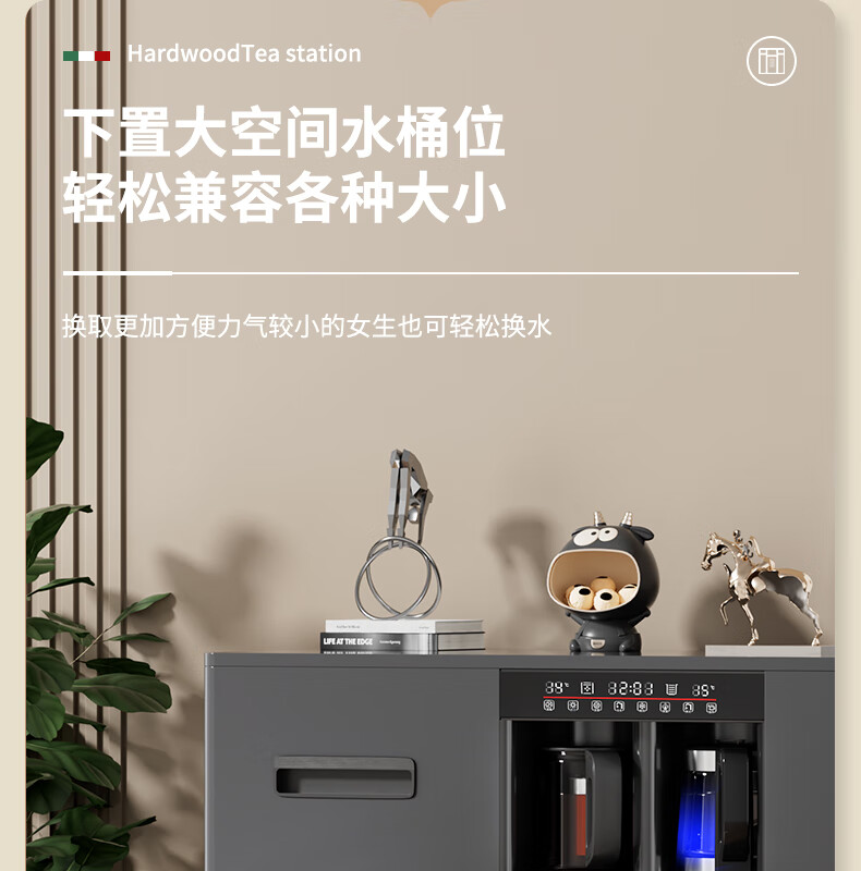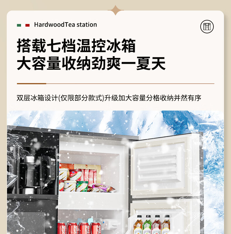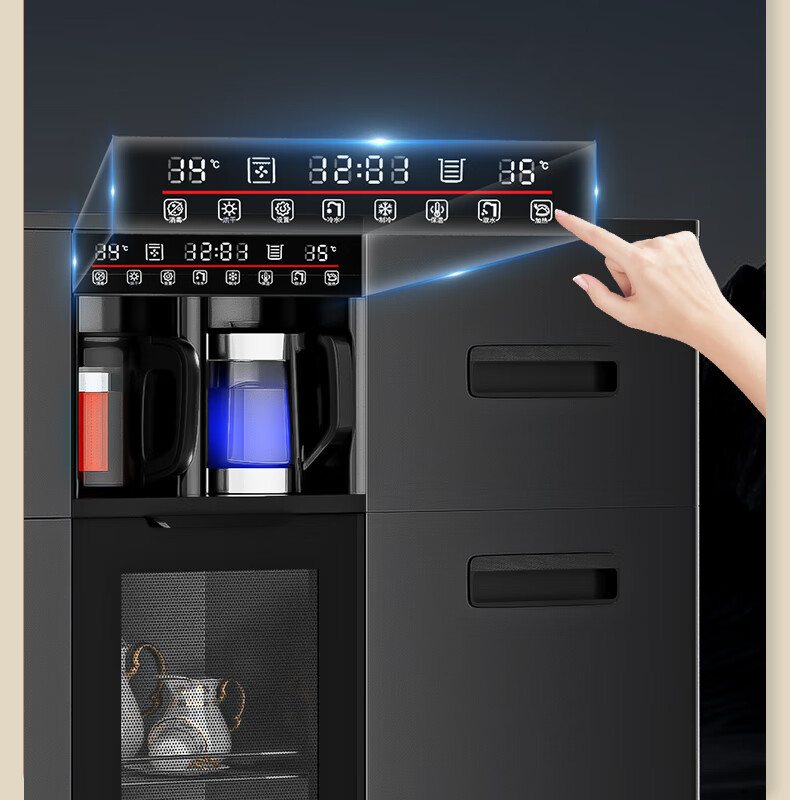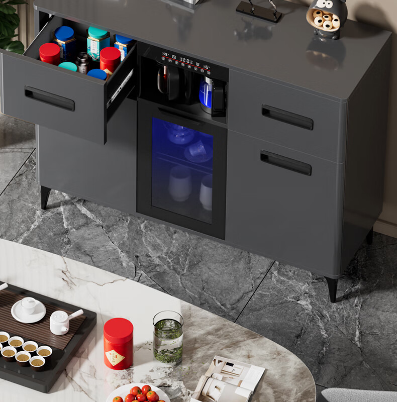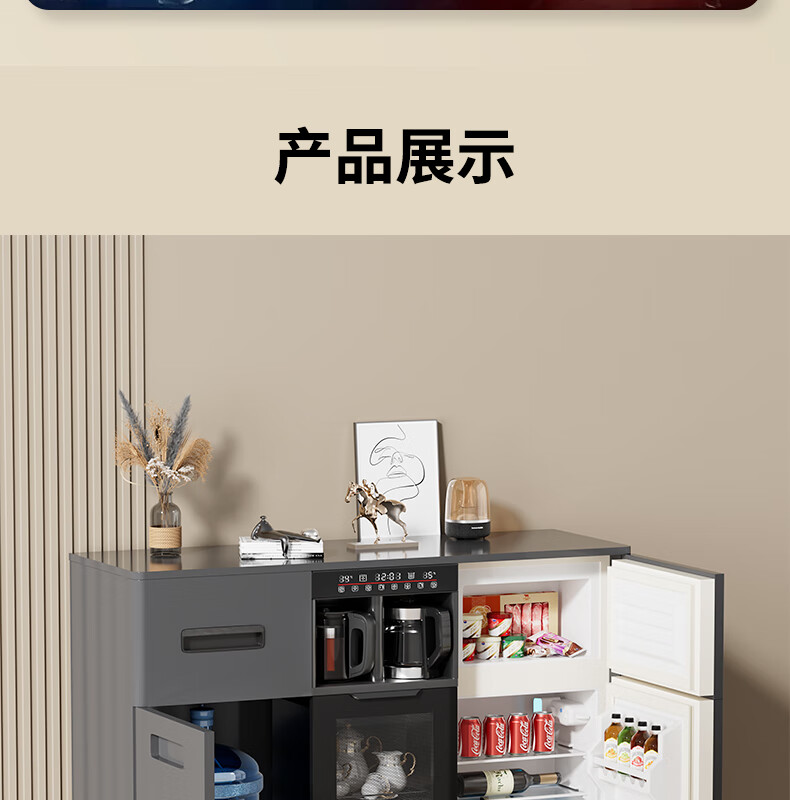 MEILINGDA Home Commercial Multifunctional Remote Control Intelligent Solid Wood Tea Bar Machine Fully Automatic Water Dispenser Living Room Tea Cabinet Sideboard Refrigerator Red Wine Refrigerator Frozen Bottle Sterilizer Cabinet Solid Wood 621 High-Grade Gray (Fridge Refrigerator Freezer + Disinfection Cabinet) Hot and Cold Type Ice Warm