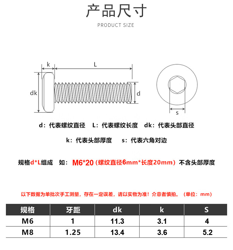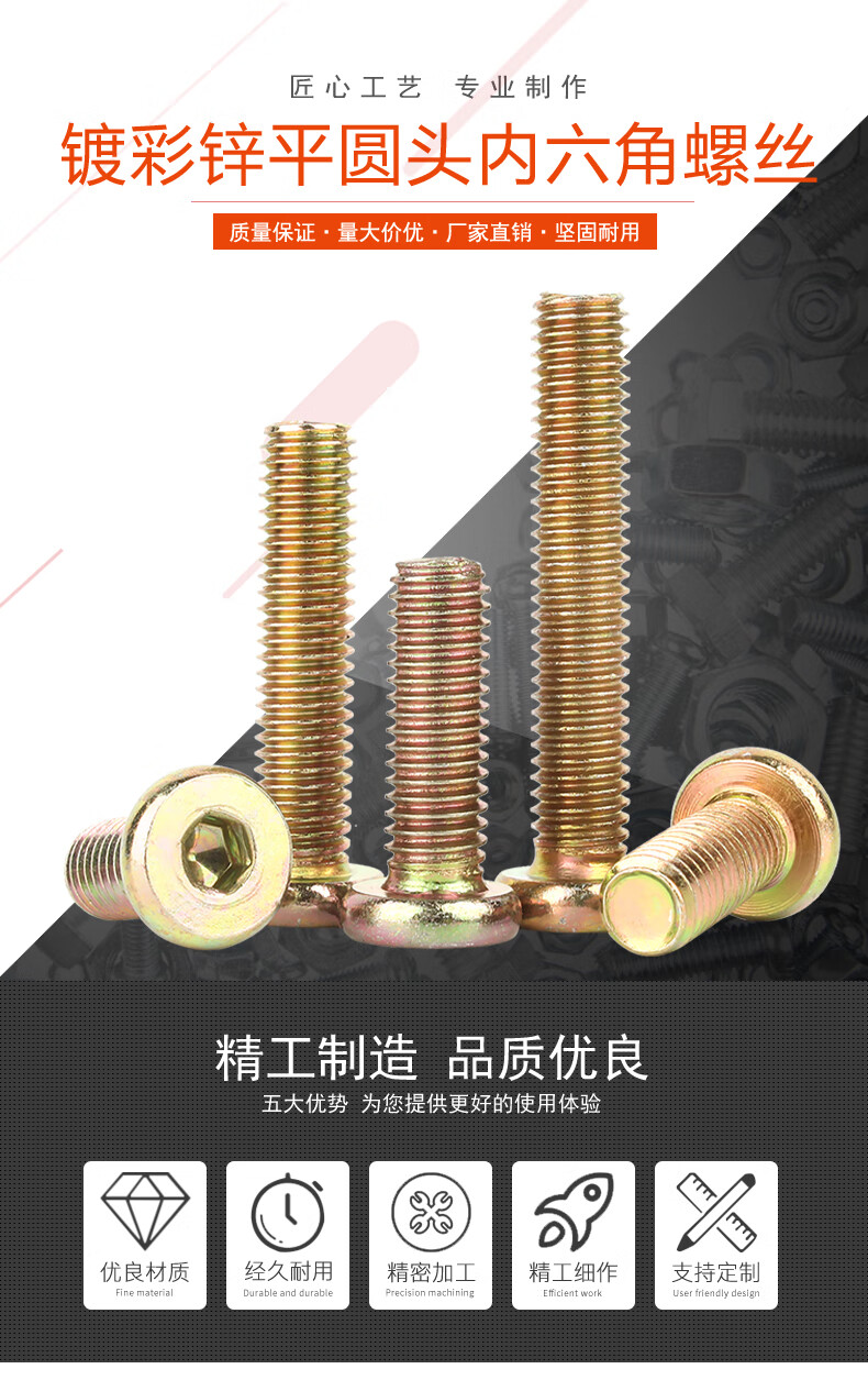 Baodefeng furniture screws flat round head hexagonal screws crib cabinets tables and chairs fixed connection screws and bolts M6x40 20 pieces color zinc