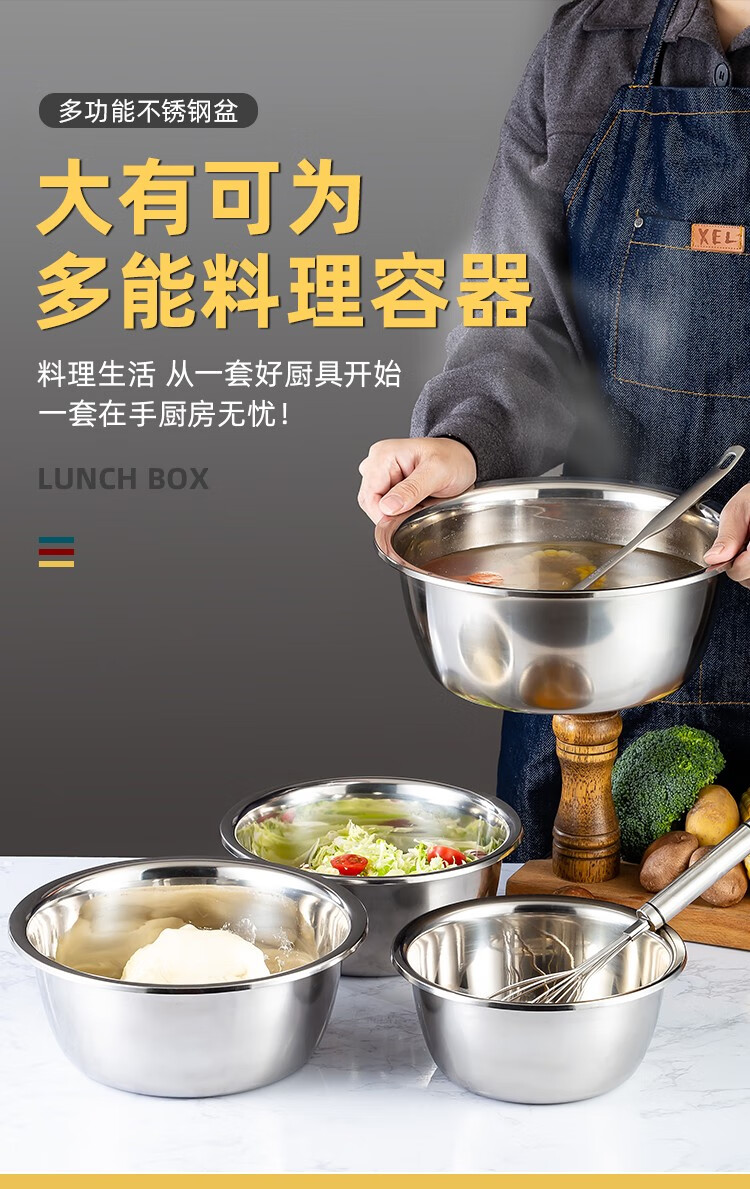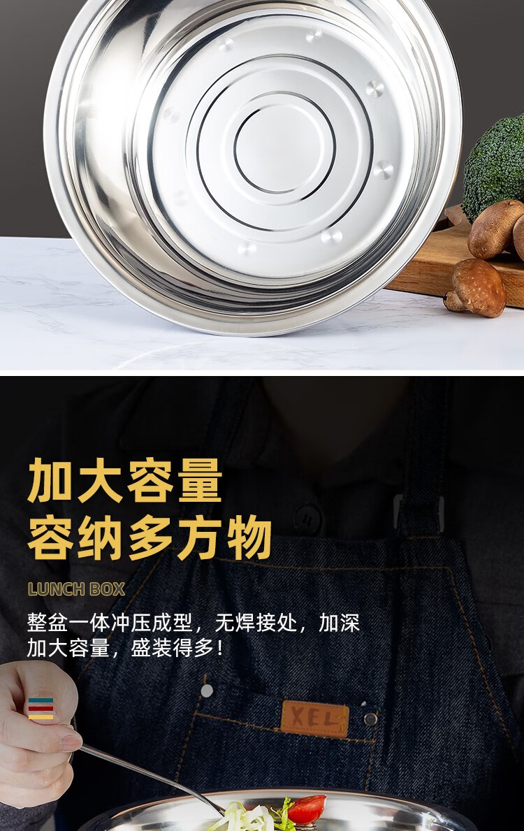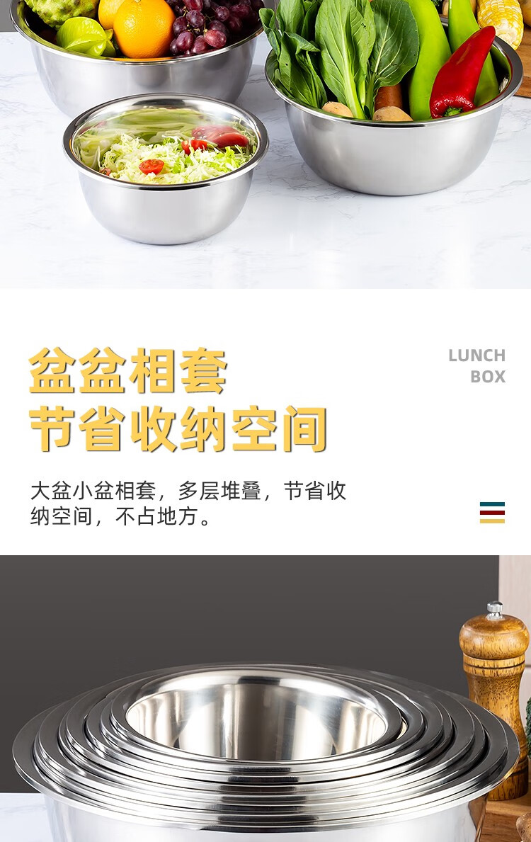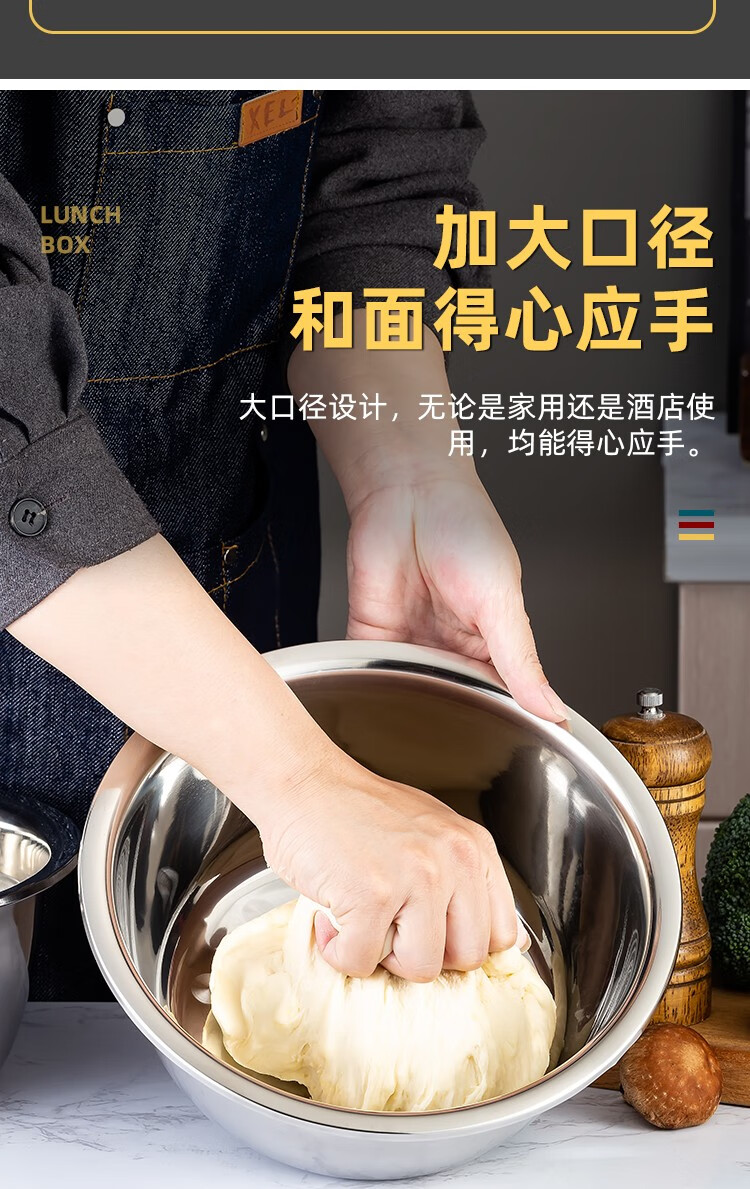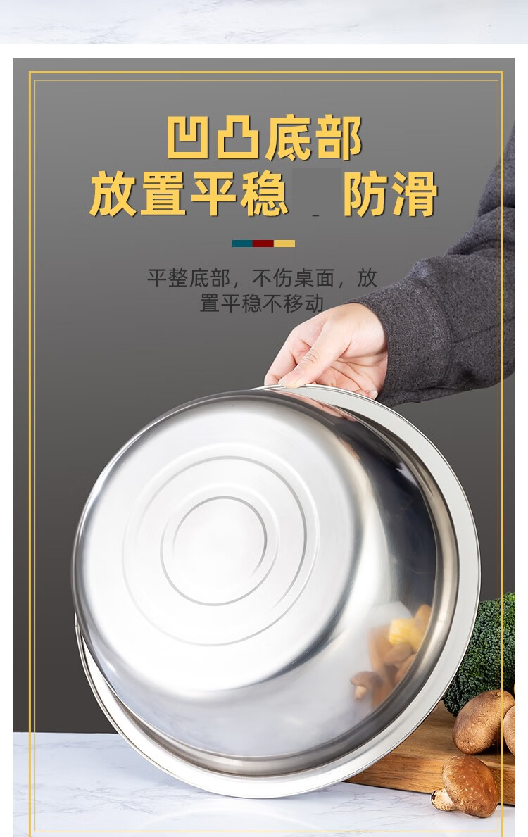 Rice helper stainless steel basin thickened vegetable basin and basin basin kneading basin kitchen soup basin rice basin seasoning marinated meat basin flavor bucket 40cm thick can be heated by induction cooker 1 pack
