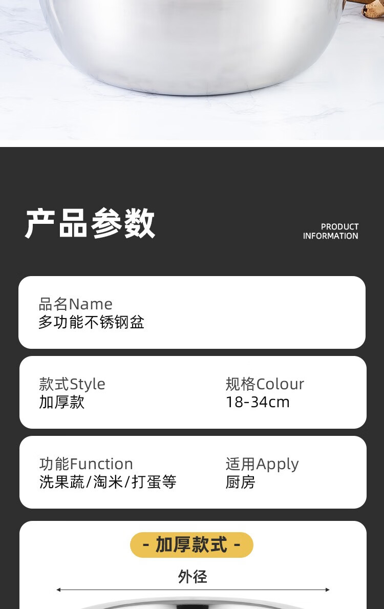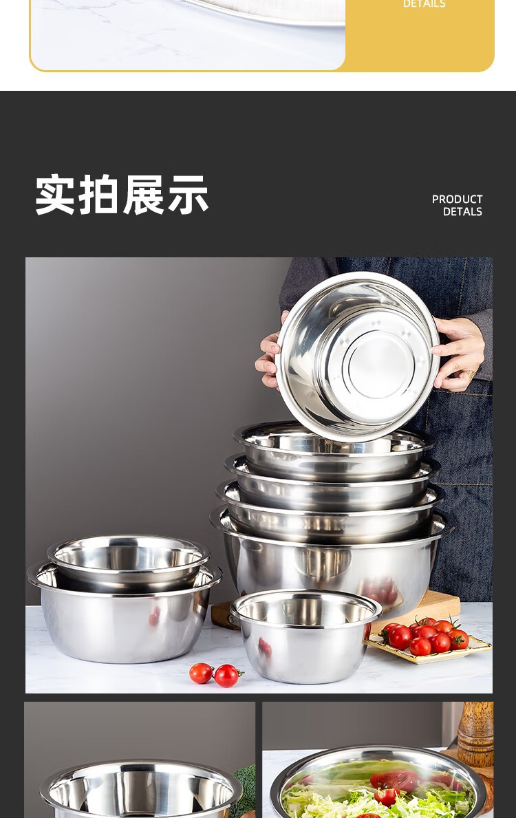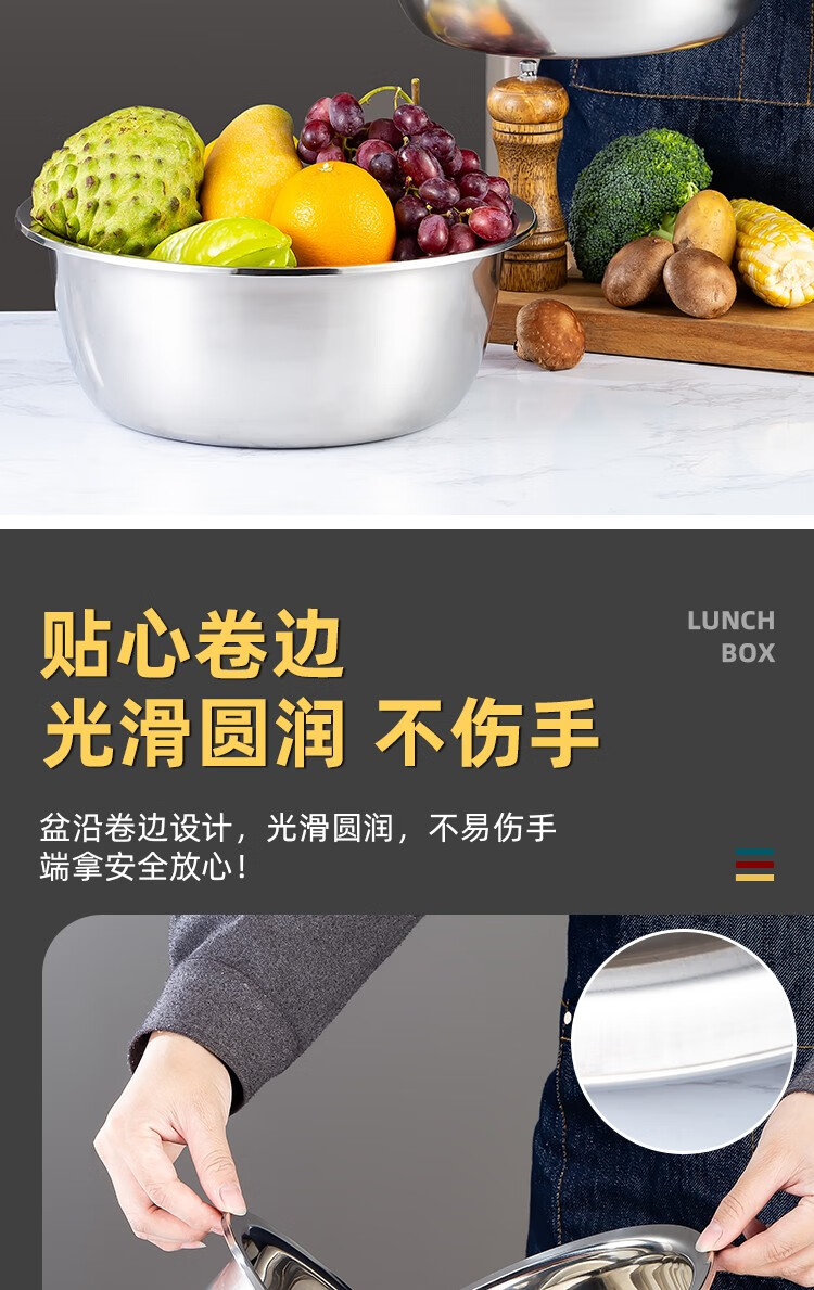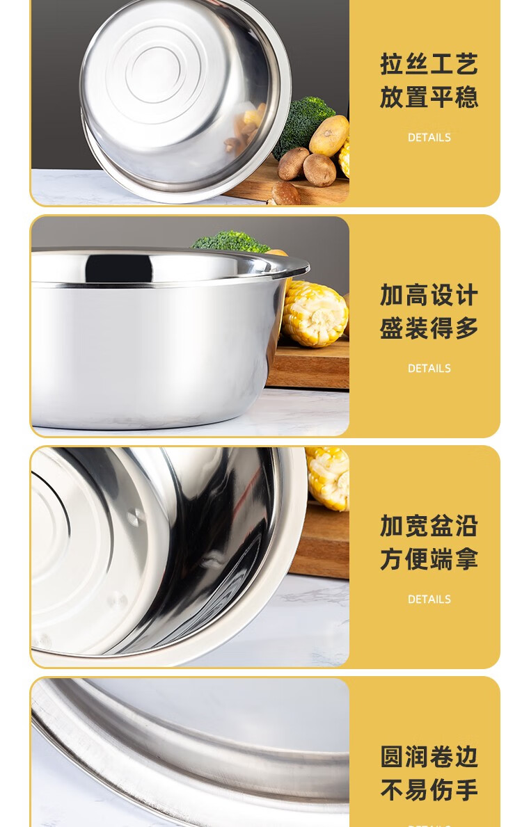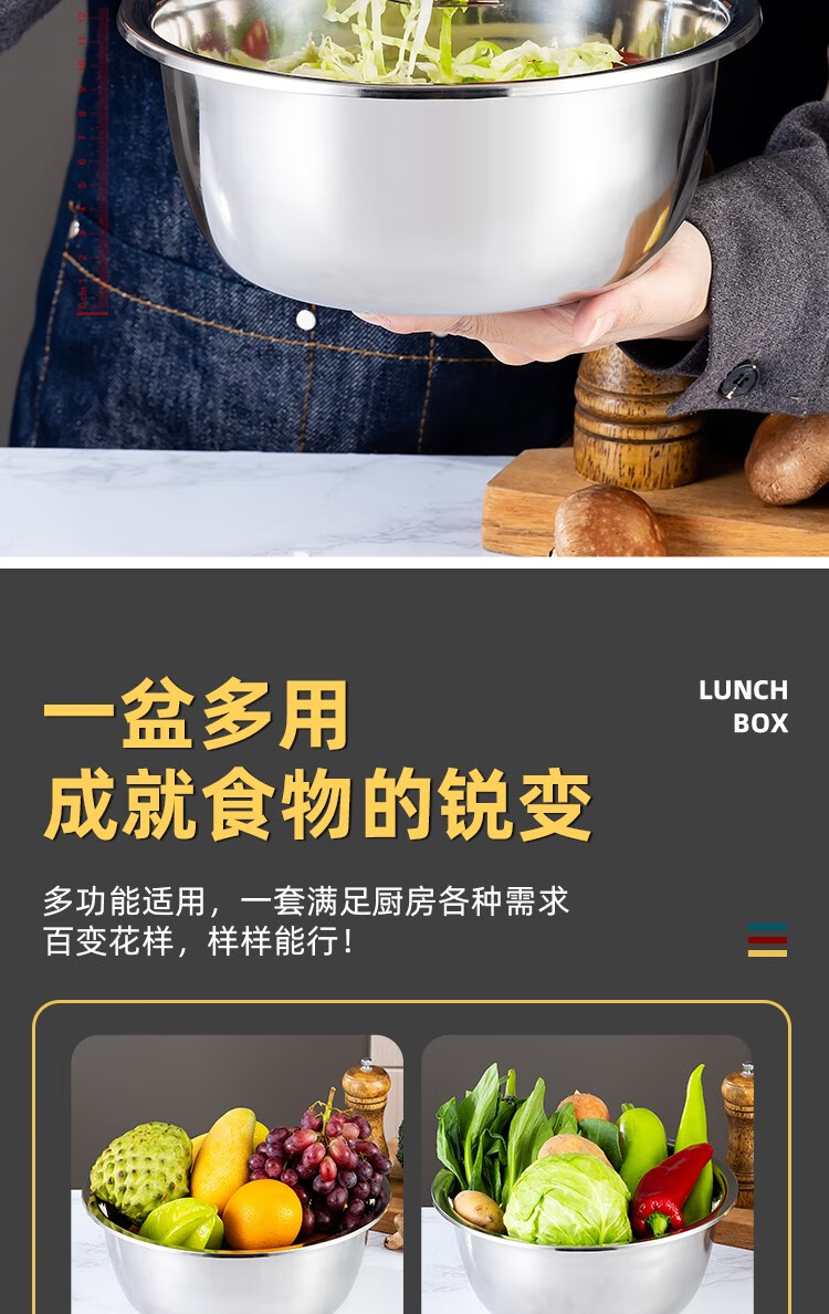 Rice helper stainless steel basin thickened vegetable basin and basin basin kneading basin kitchen soup basin rice basin seasoning marinated meat basin flavor bucket 40cm thick can be heated by induction cooker 1 pack