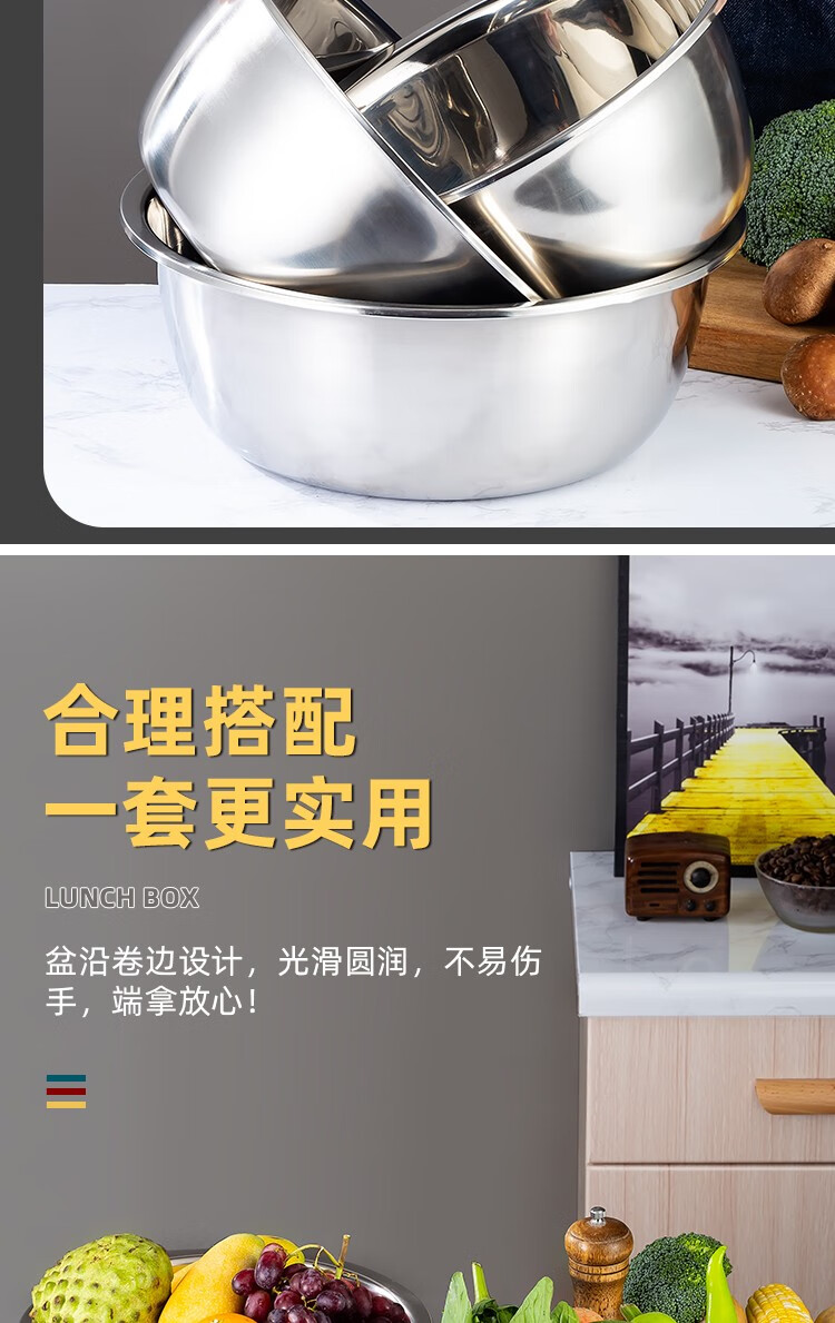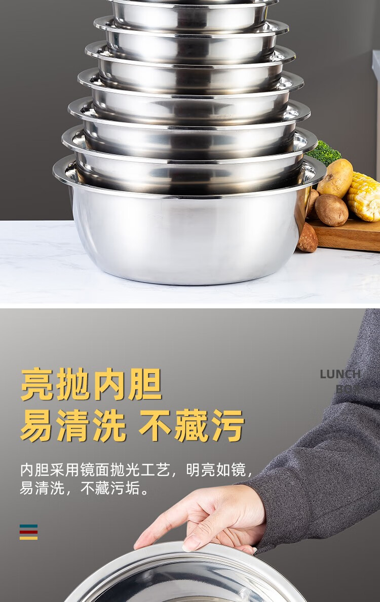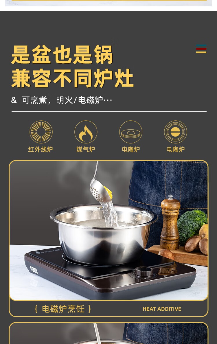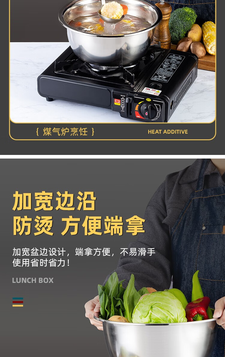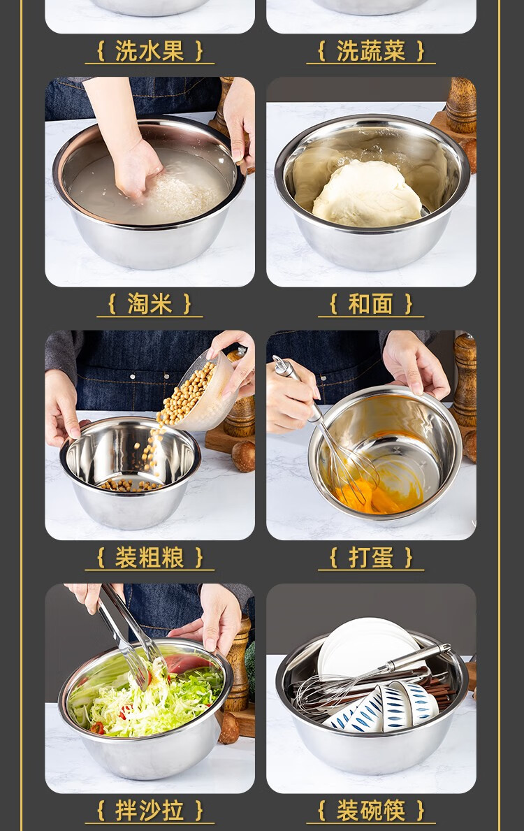 Rice helper stainless steel basin thickened vegetable basin and basin basin kneading basin kitchen soup basin rice basin seasoning marinated meat basin flavor bucket 40cm thick can be heated by induction cooker 1 pack