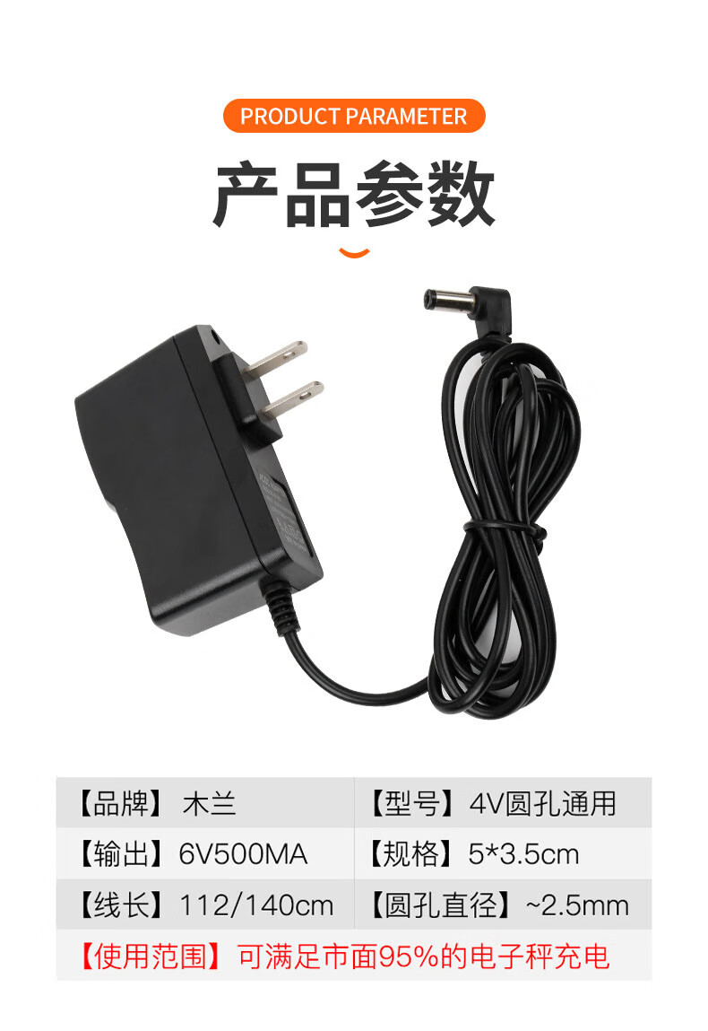 GUSREE Electronic Scale Charger Round Hole 6V Folding Platform Scale Power Cord Universal Pricing Scale Charger Power Adapter 6V Enhanced Line Length 1.4 Meters Fully Changing Light