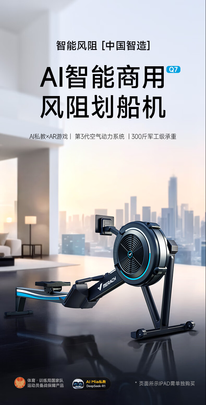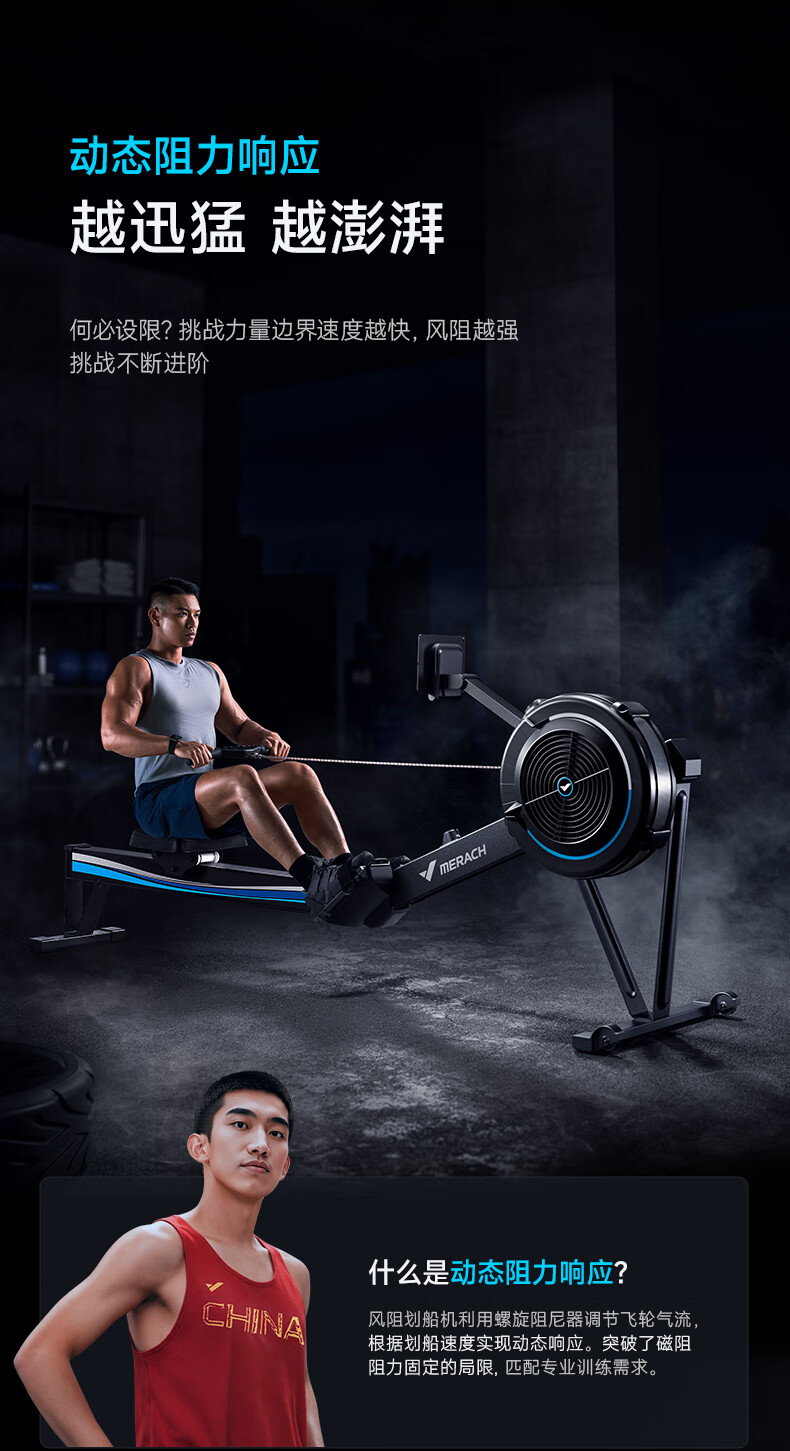 MERACH wind resistance rowing machine, training guarantee for national team athletes, home commercial gym equipment, foldable Q7 10-speed wind resistance adjustment/commercial grade strong transmission