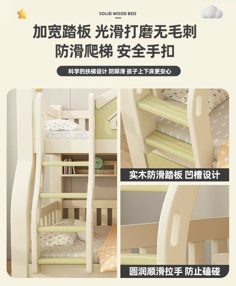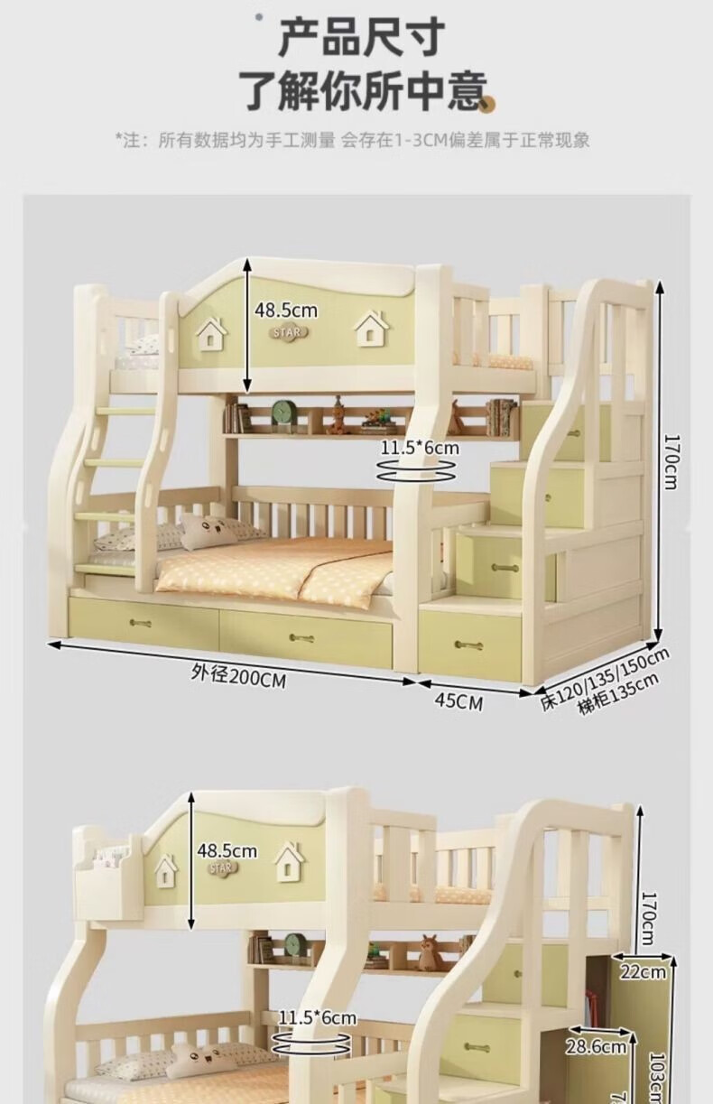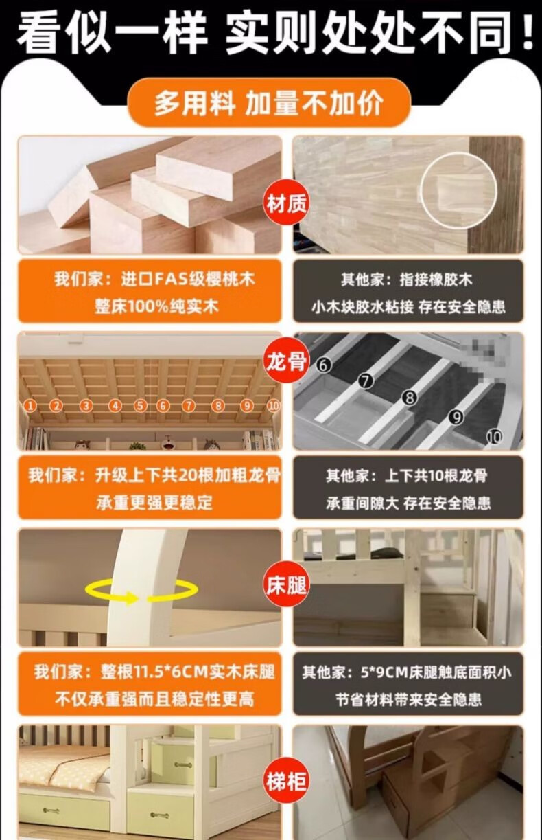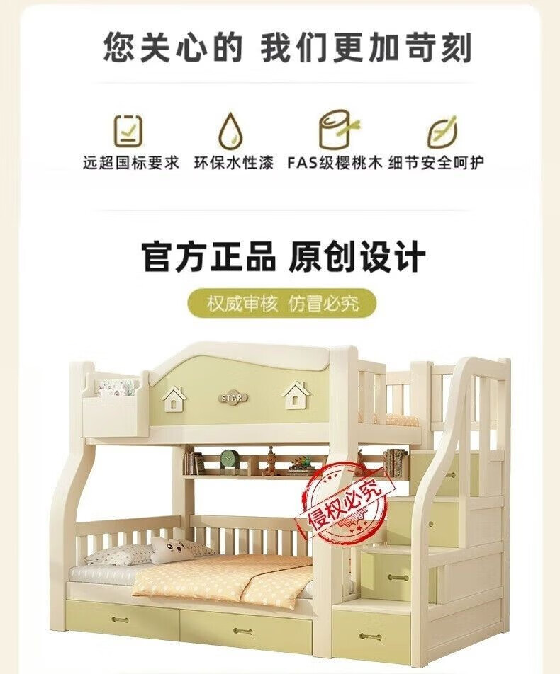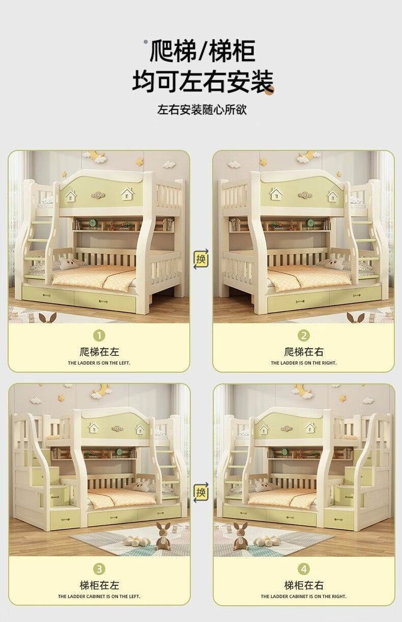 Moriki deer cherry wood children's bed and lower solid wood bed cream style high and low bed bunk bed and double bed adult bed ladder cabinet style upper 130 lower 150 + mattress * 2 all solid wood
