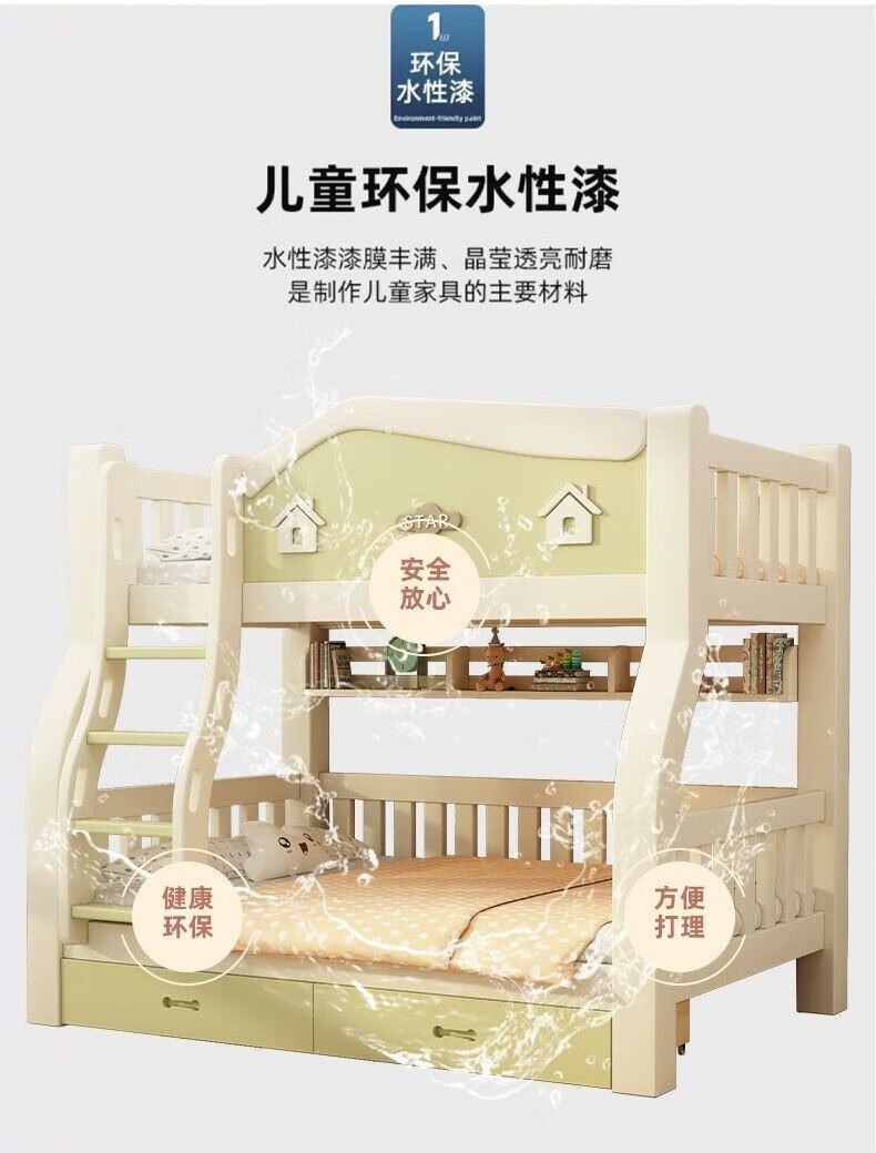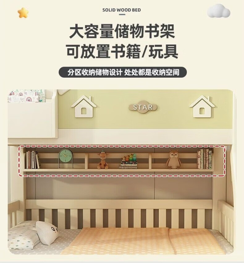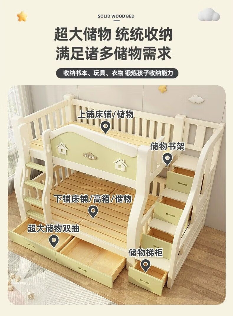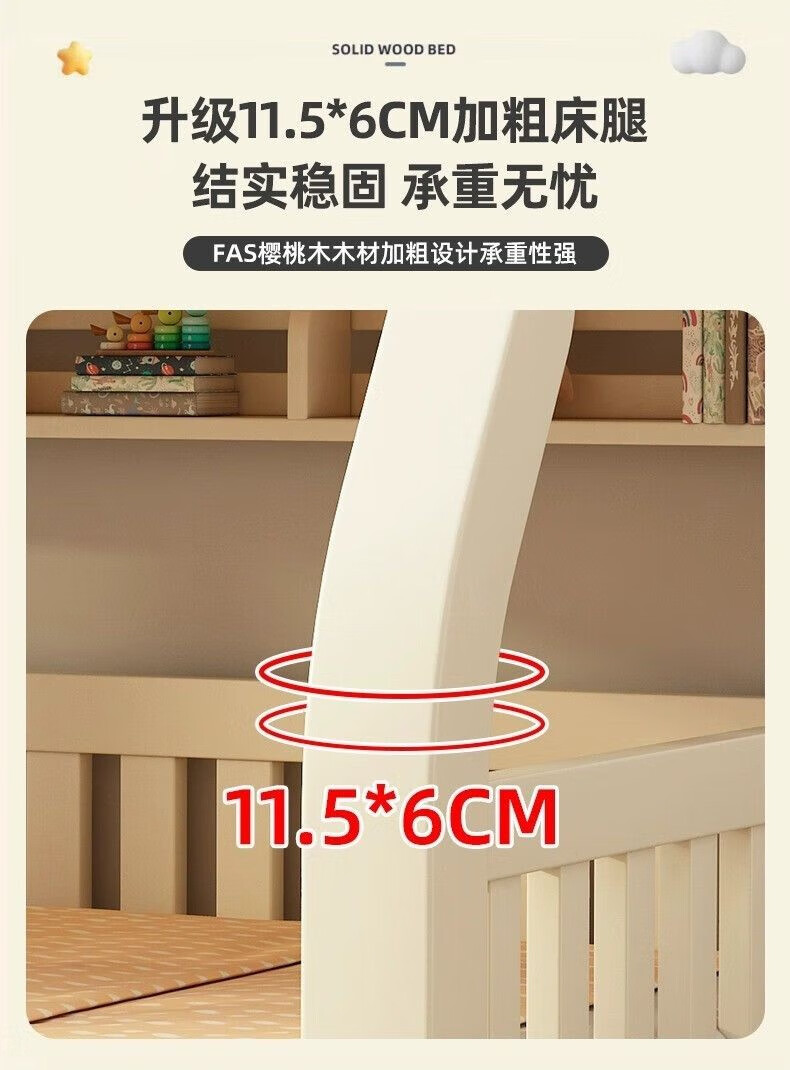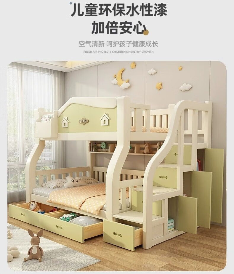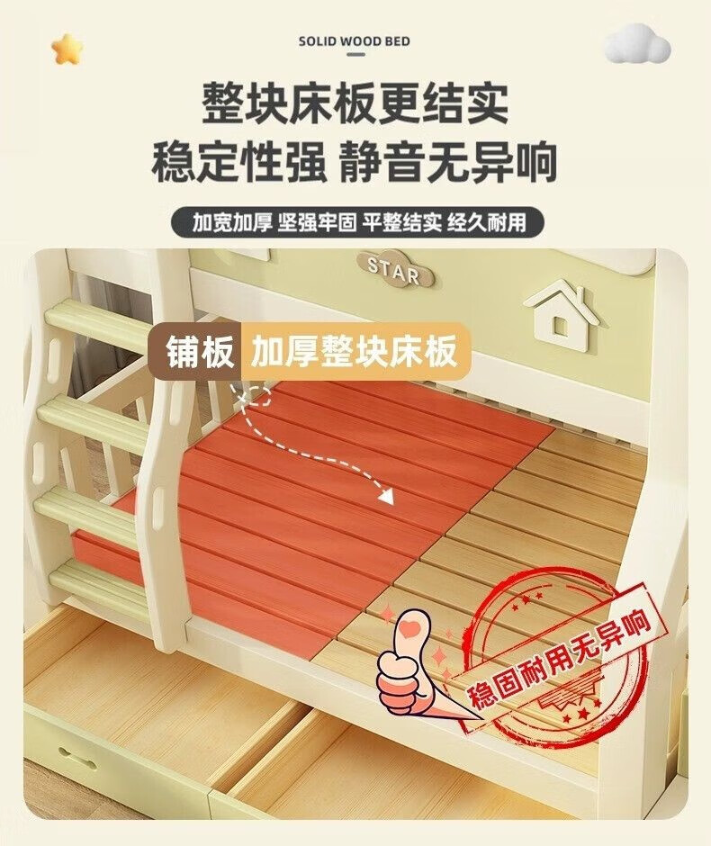 Moriki deer cherry wood children's bed and lower solid wood bed cream style high and low bed bunk bed and double bed adult bed ladder cabinet style upper 130 lower 150 + mattress * 2 all solid wood