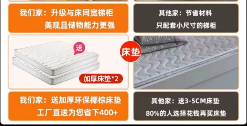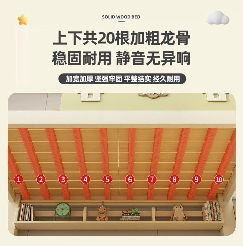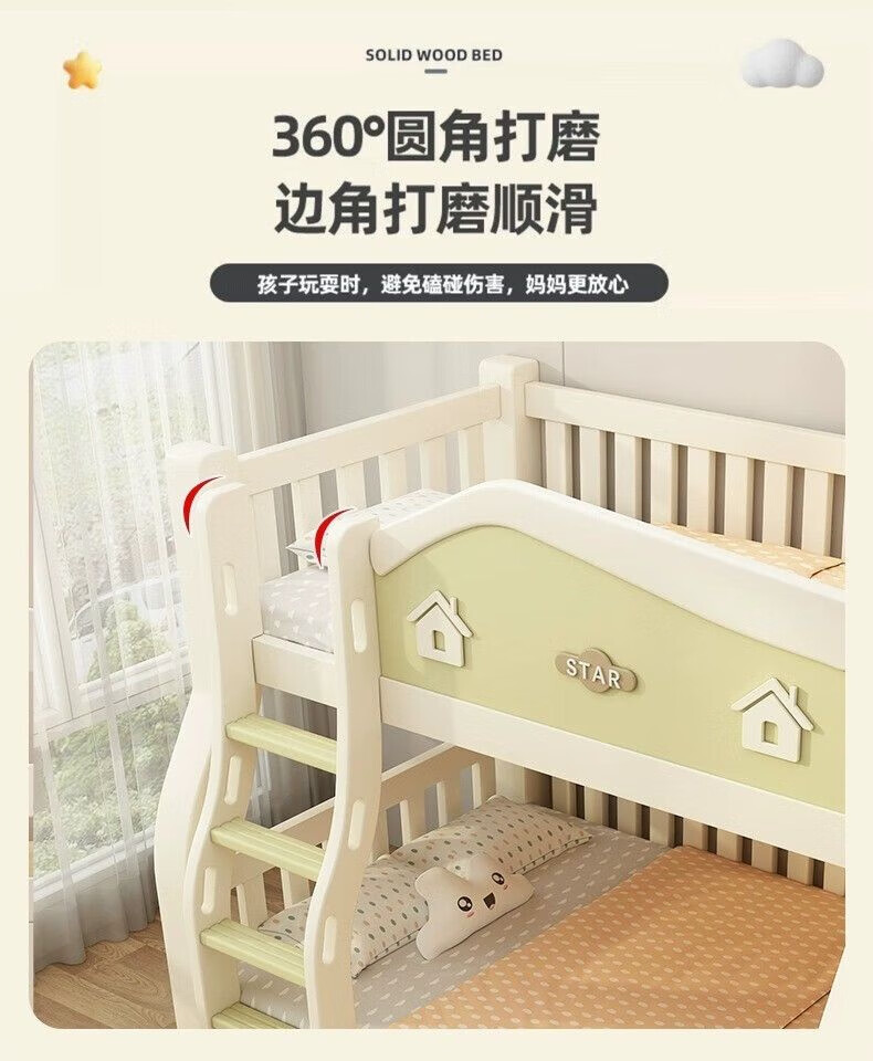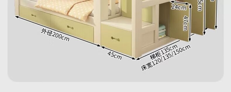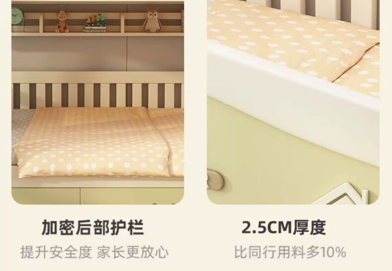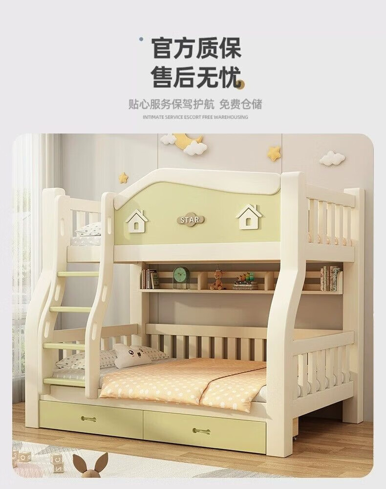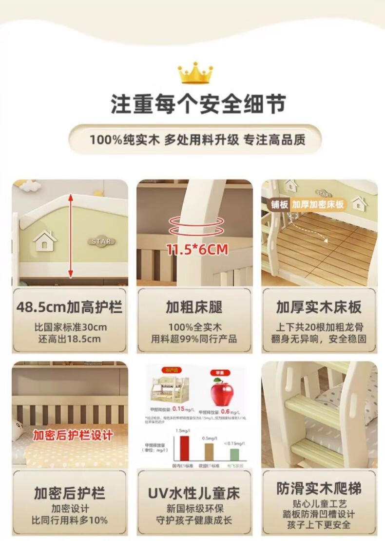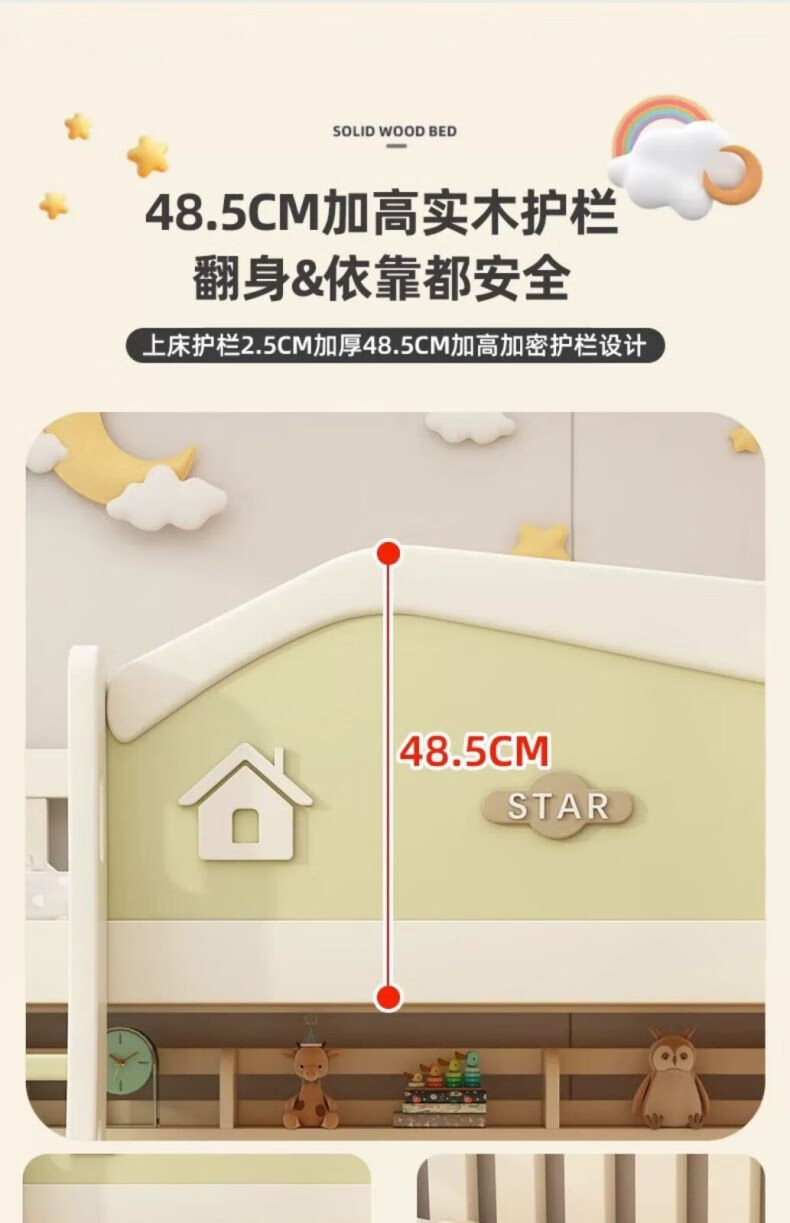 Moriki deer cherry wood children's bed and lower solid wood bed cream style high and low bed bunk bed and double bed adult bed ladder cabinet style upper 130 lower 150 + mattress * 2 all solid wood