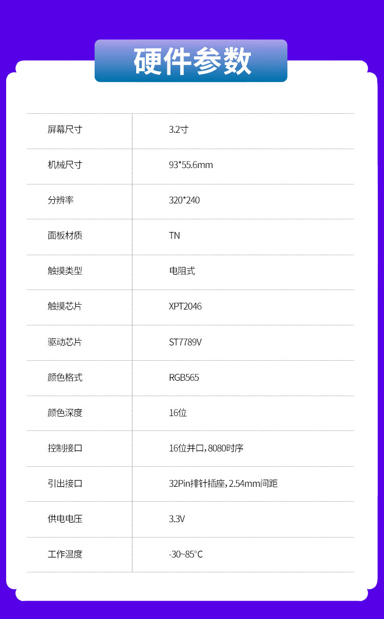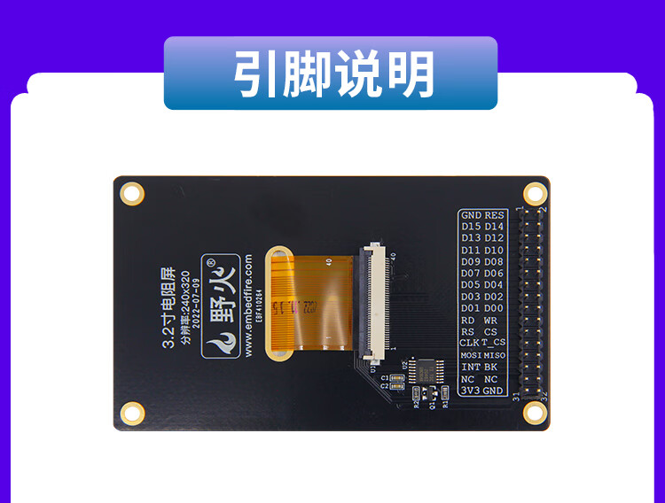 Wildfire 3.2-inch LCD screen TFT with resistive touch screen display ST77789V free STM32 code