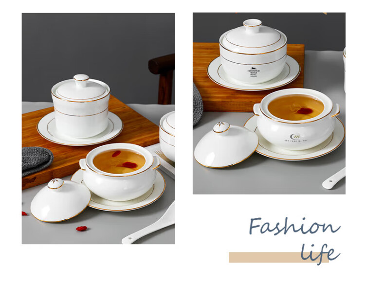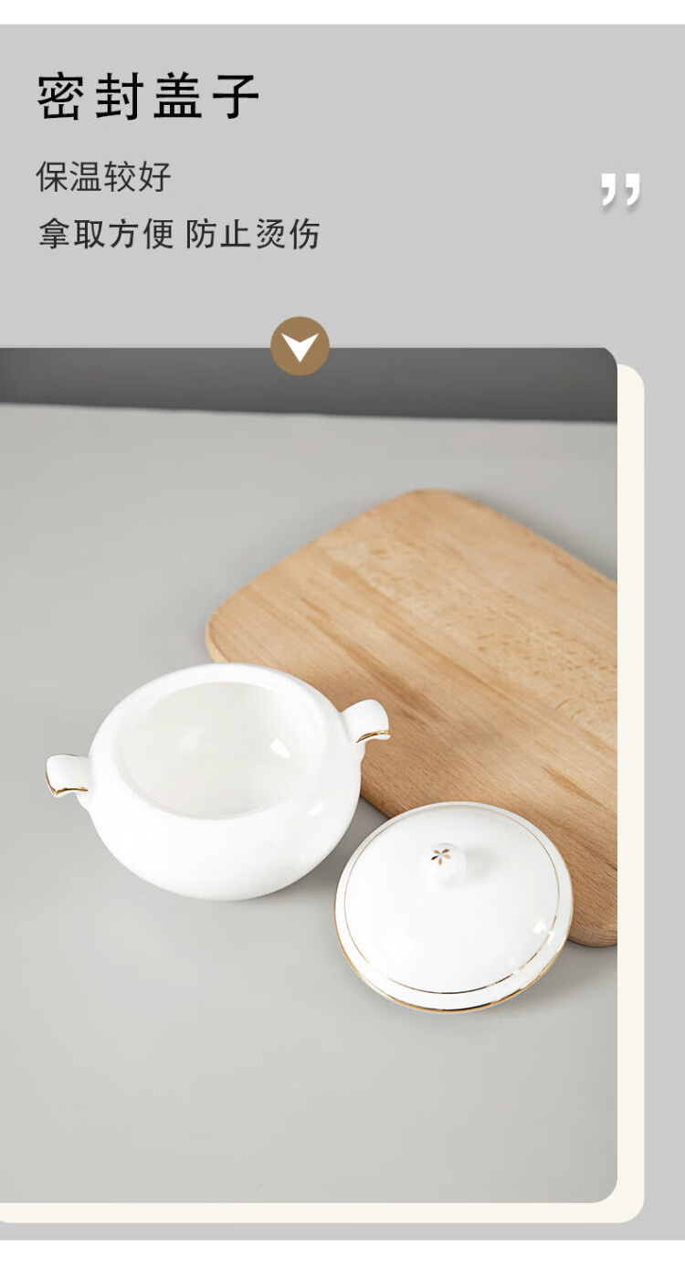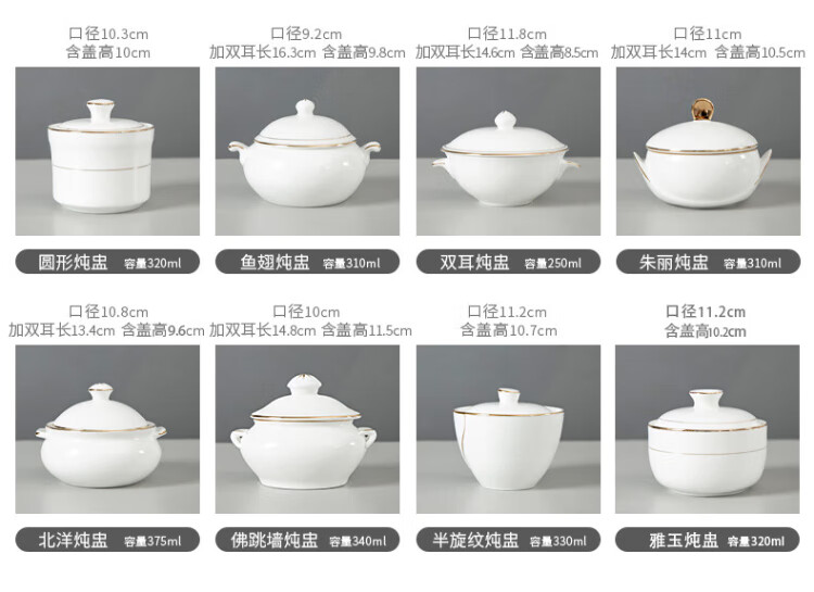 Guotao bone china beauty shop health porridge bowl small stew cup dessert bowl bird's nest bowl soup bowl with lid ceramic Buddha jumping over the wall soup cup gold-rimmed shark fin stew cup + plate + spoon (310 ml)