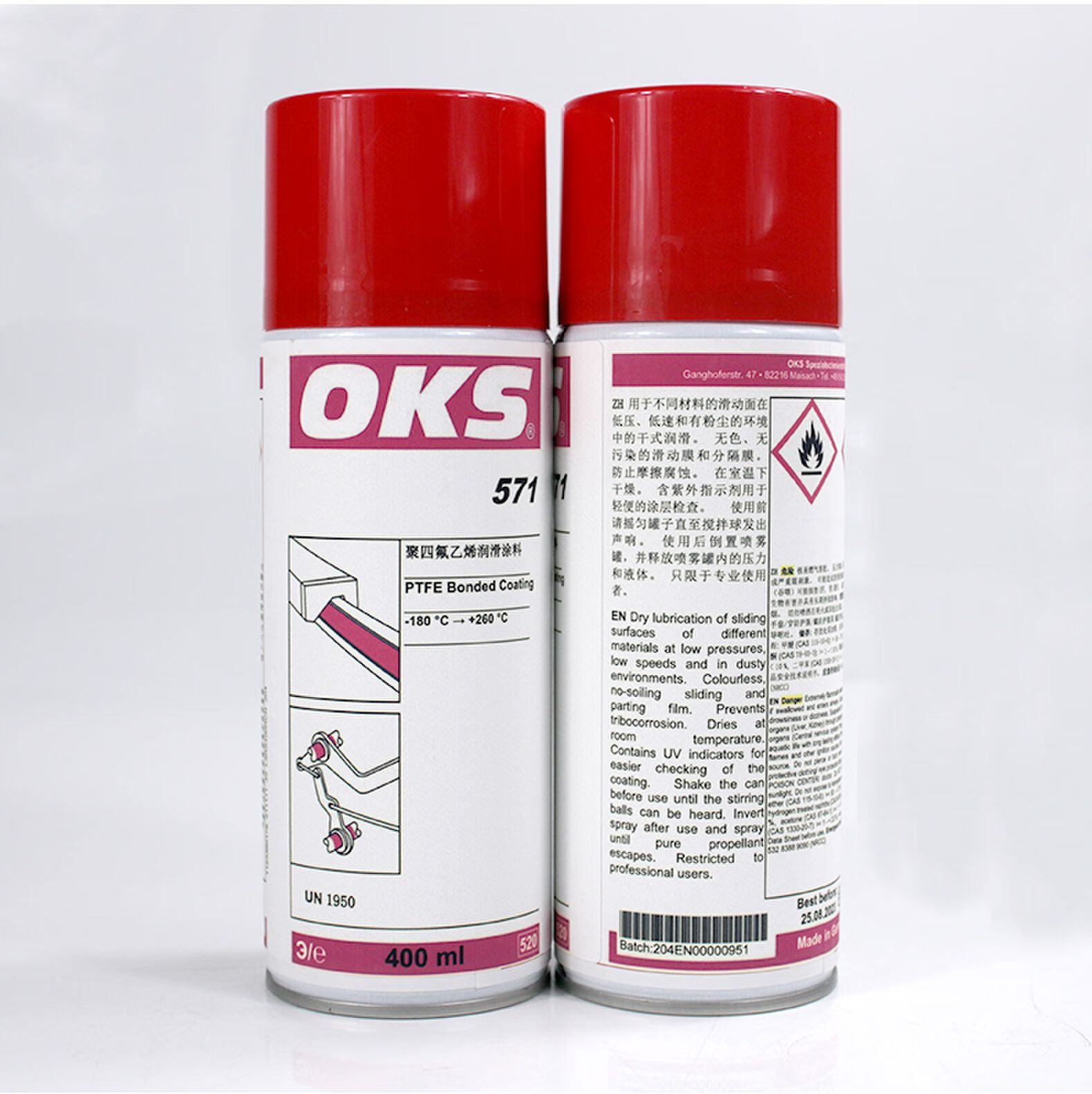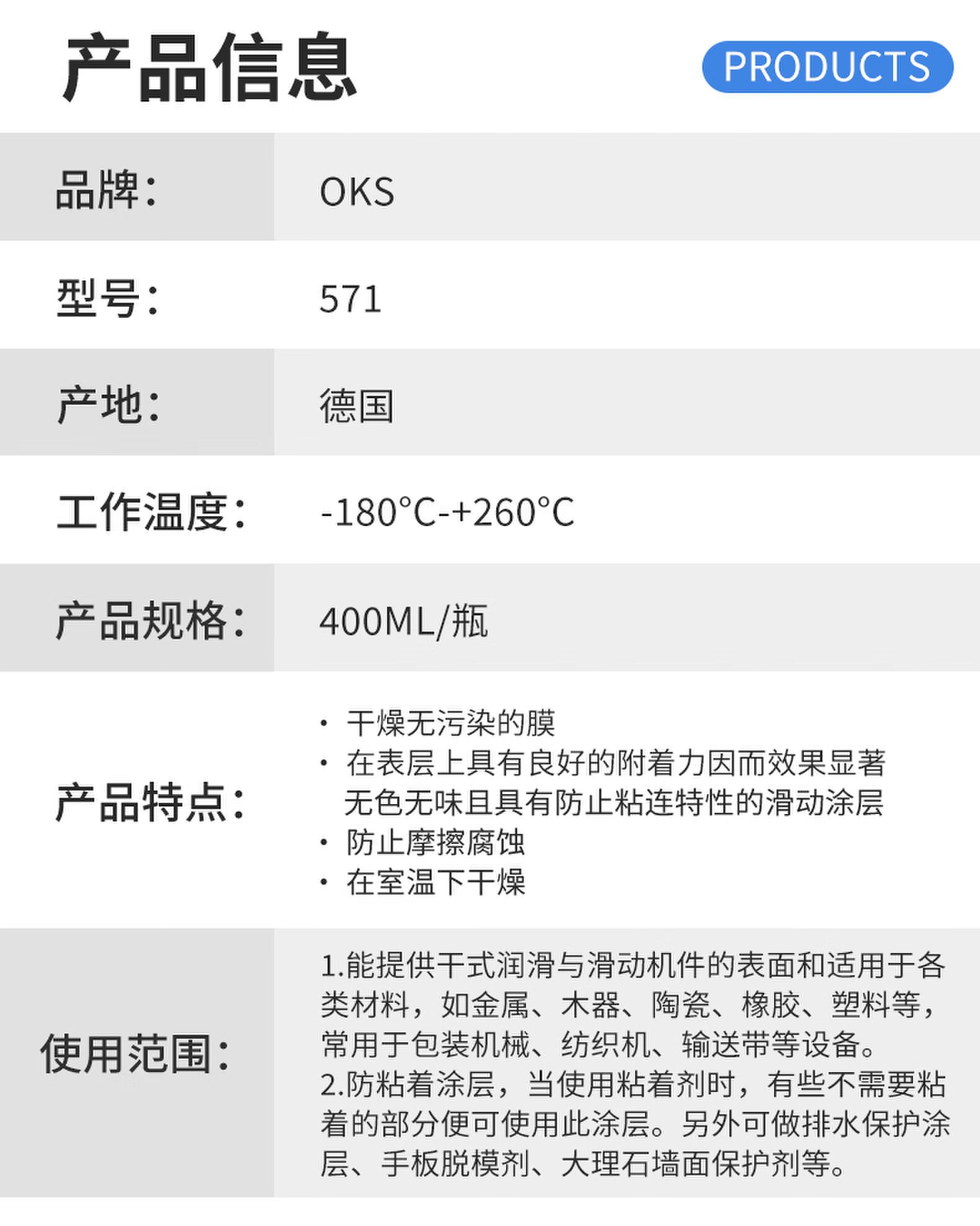 German OKS571 Teflon non-stick coating spray PTFE polytetrafluoro dry lubricating anti-stick coating for textile machine packaging machinery conveyor belts