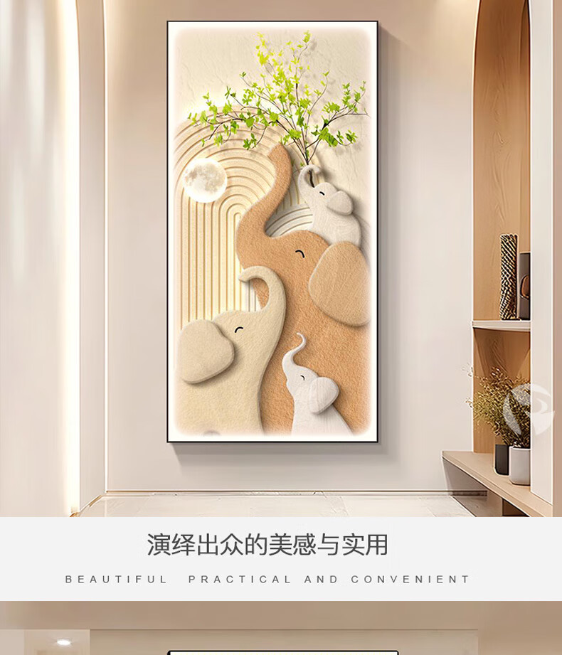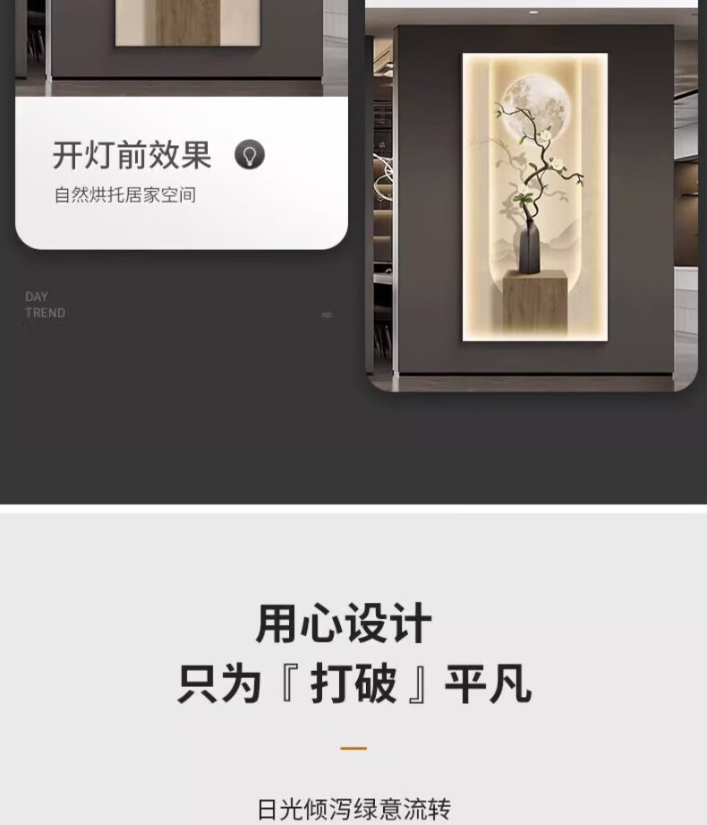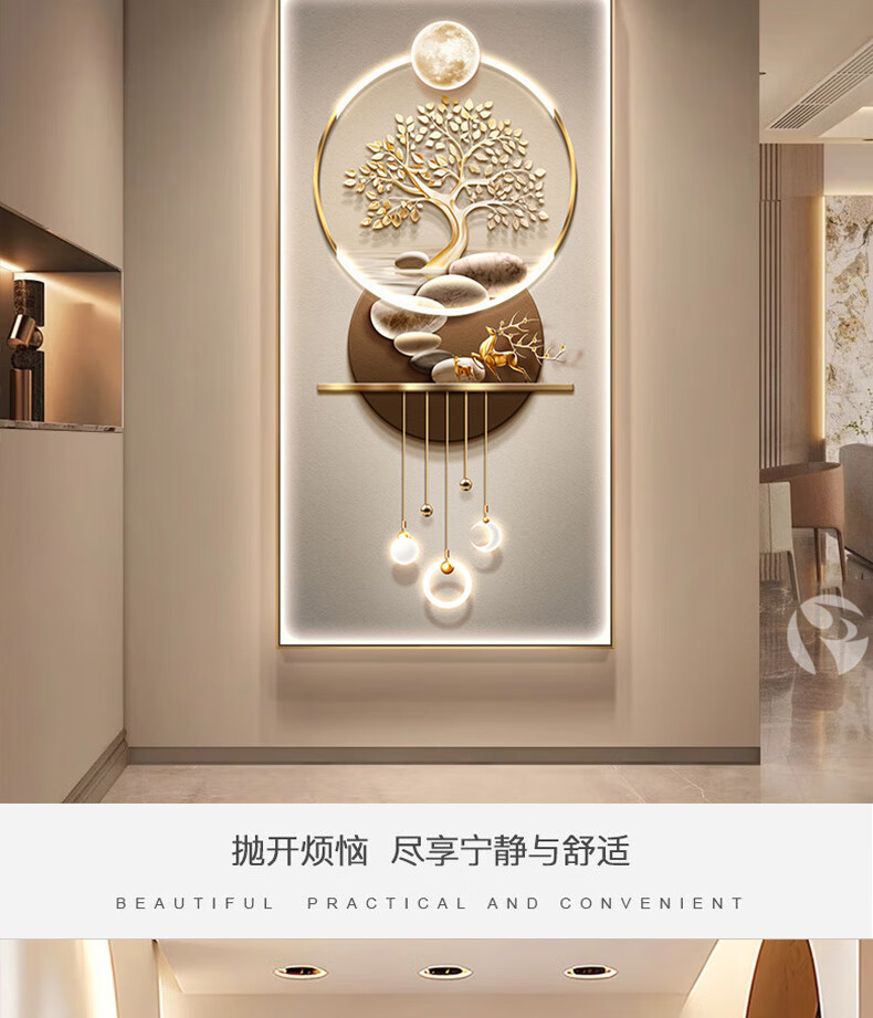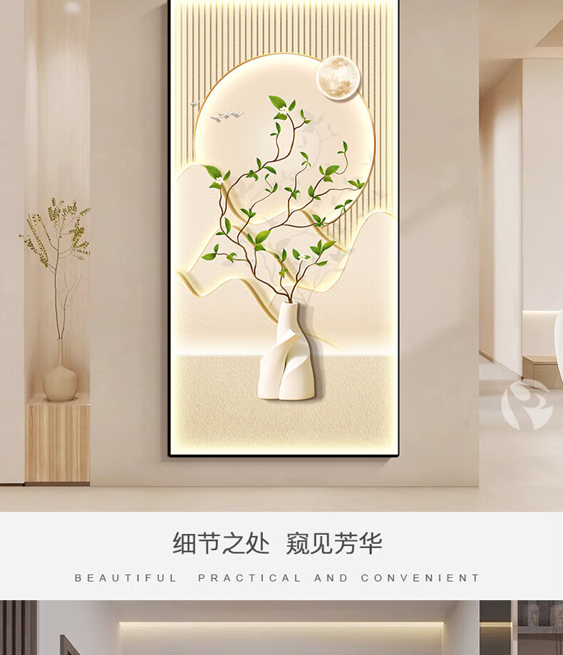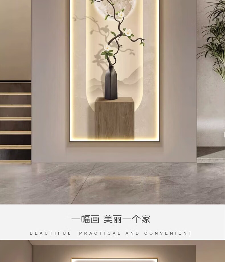 Mopai (Mopai) entrance hall decorative painting light luxury and high-end sense with LED light painting entrance corridor aisle hanging painting background wall painting Jiayouwanfu 80*160cm (LED light painting/remote charger type)