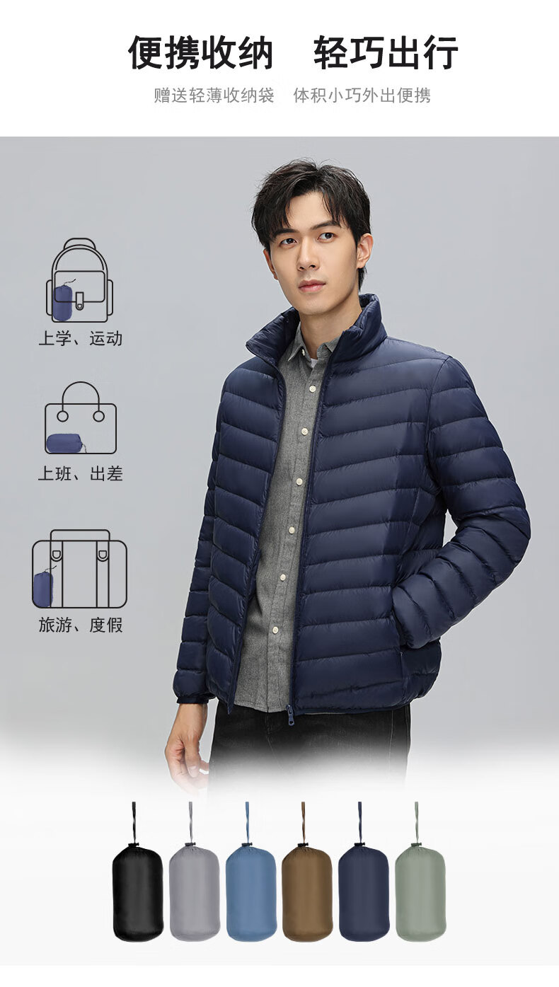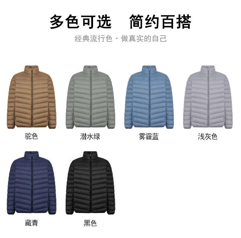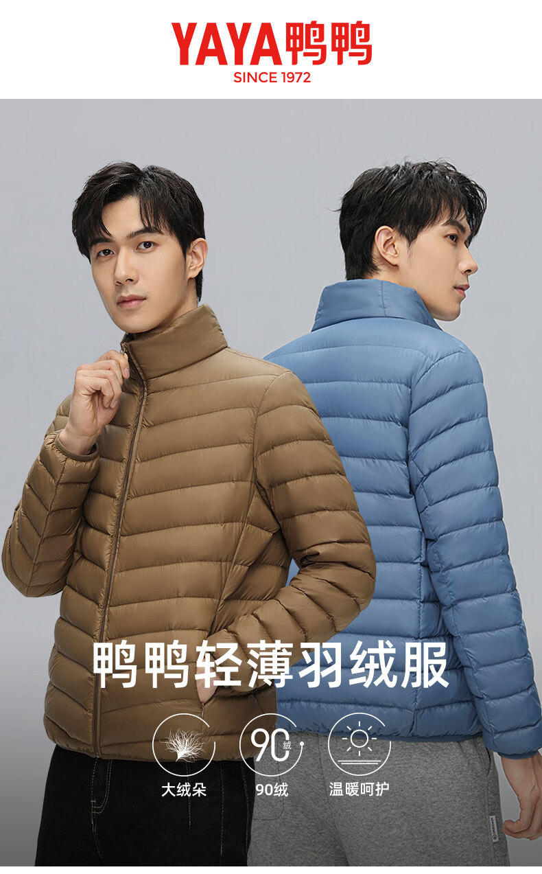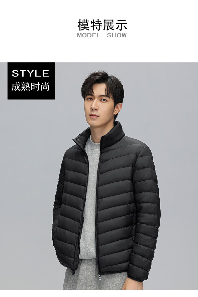 Yaya (YAYA) Huang Xiaoming's same style men's thin down jacket autumn and winter new fashion casual stand-up collar short warm jacket K black XL 180/96A