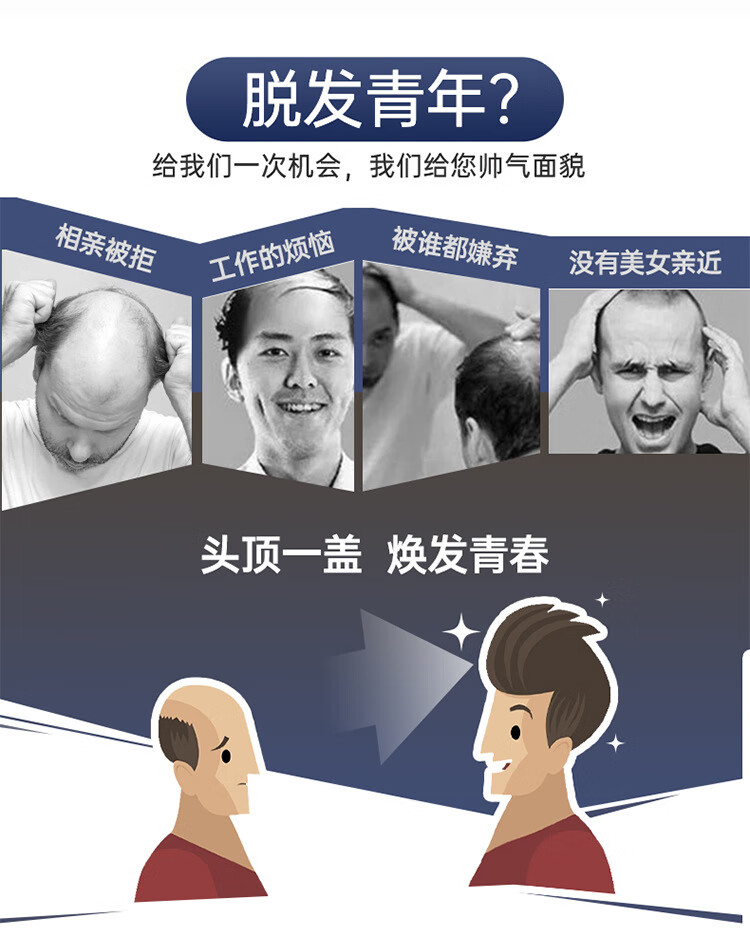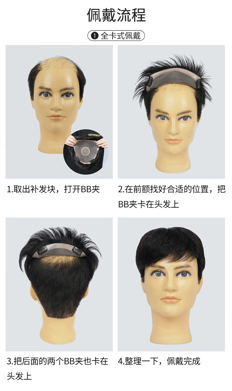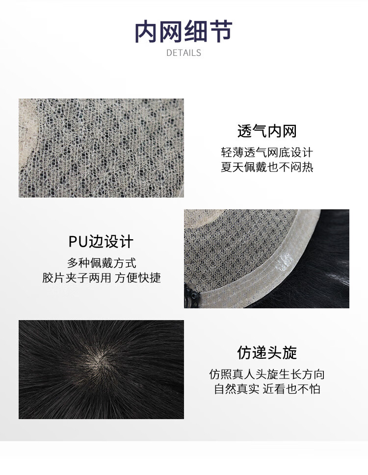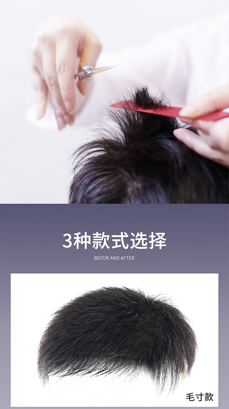 Fiber wig men's short hair replacement piece real hair broken hair wig cover gray hair increase hair volume hair block top men's replacement hair 20*22 natural style
