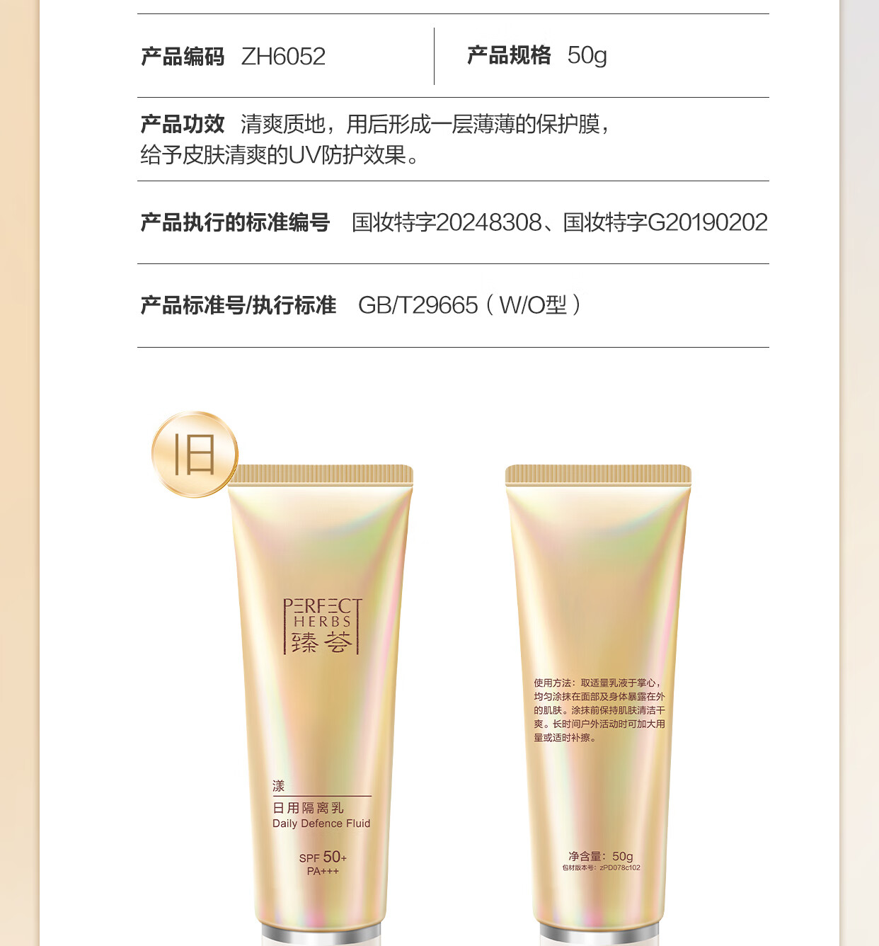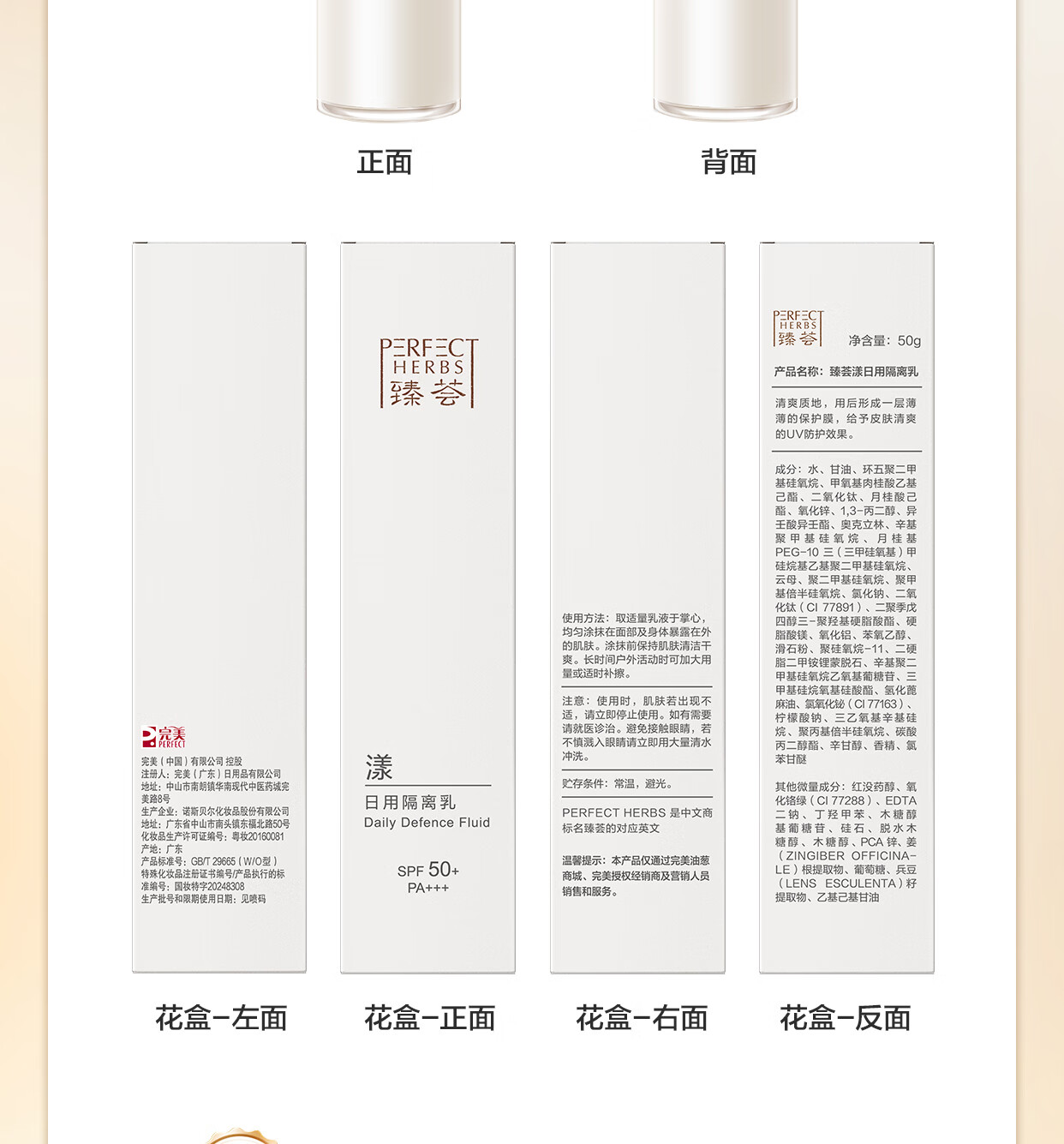 Perfect Zhen Hui Yang Daily Isolation Milk 50g moisturizes, repairs, moisturizes, sunscreen and controls oil SPF50+ PA+++