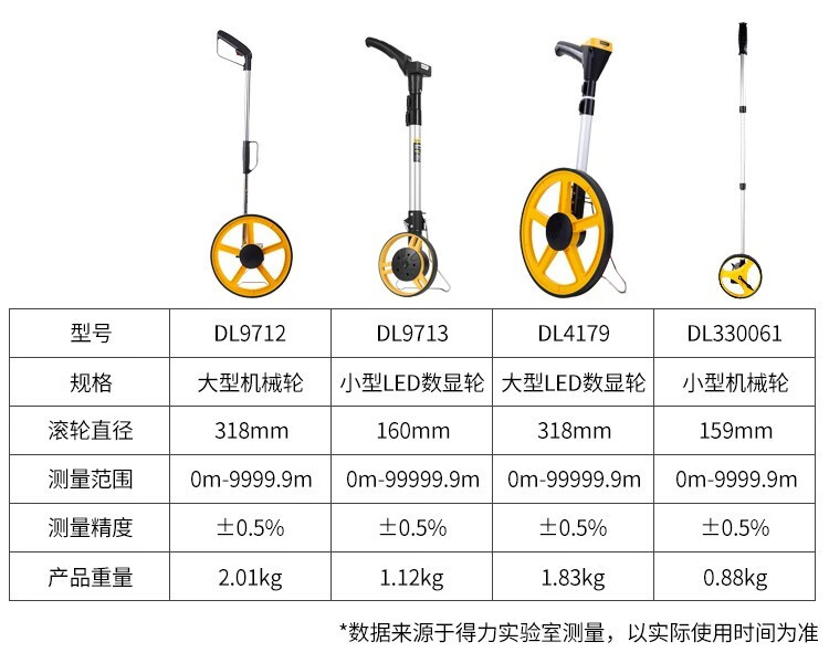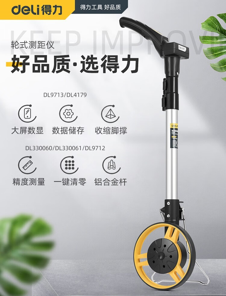 Deli distance measuring wheel hand-pushed roller distance measuring digital display mechanical high-precision large roller outdoor measuring ruler distance meter without cloth bag small mechanical wheel (diameter 160mm)