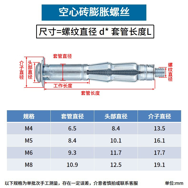 JINGGONG hollow brick special expansion bolt aircraft gypsum board wall screw hollow gecko expansion pipe nail M4M5M6M8 M6*65 (10 pieces)