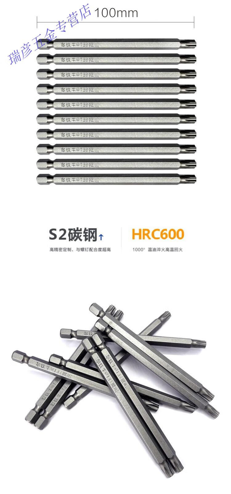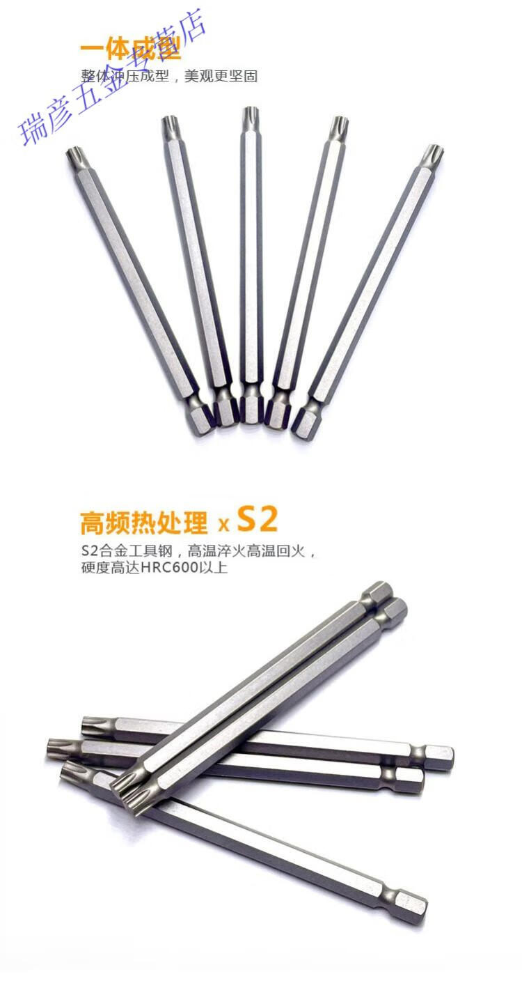 Shantou Lincun hexagonal plum blossom bit t30 special bit for self-cutting screws bit nozzle bit electric bit screwdriver bit T30*100mm (2 pieces)