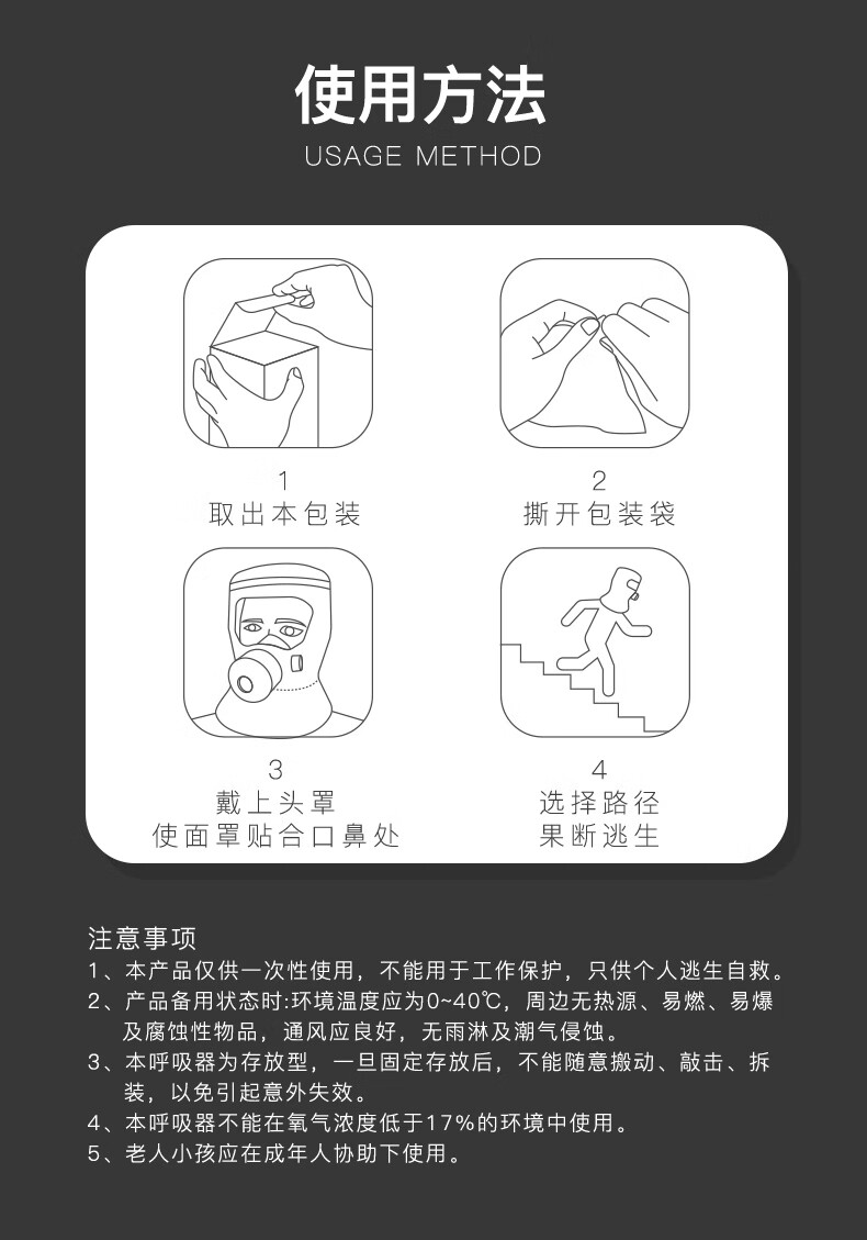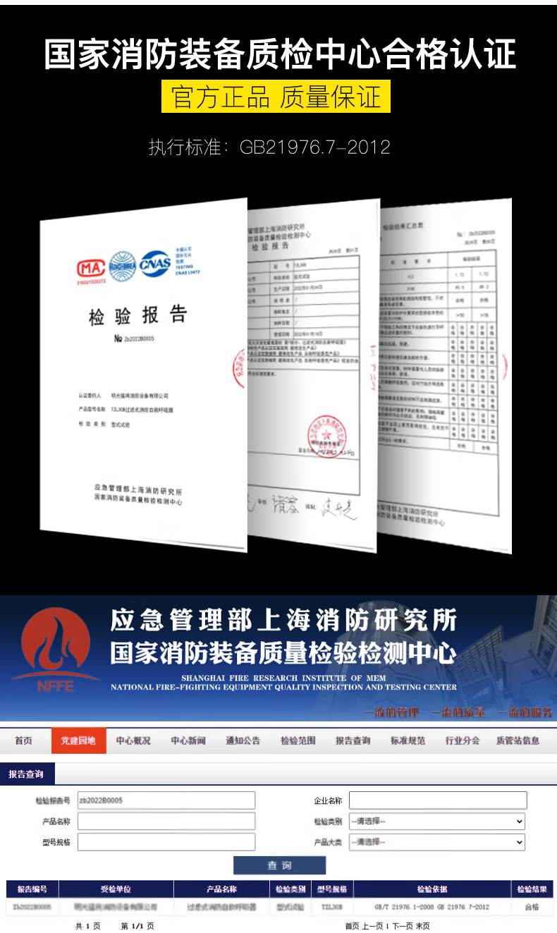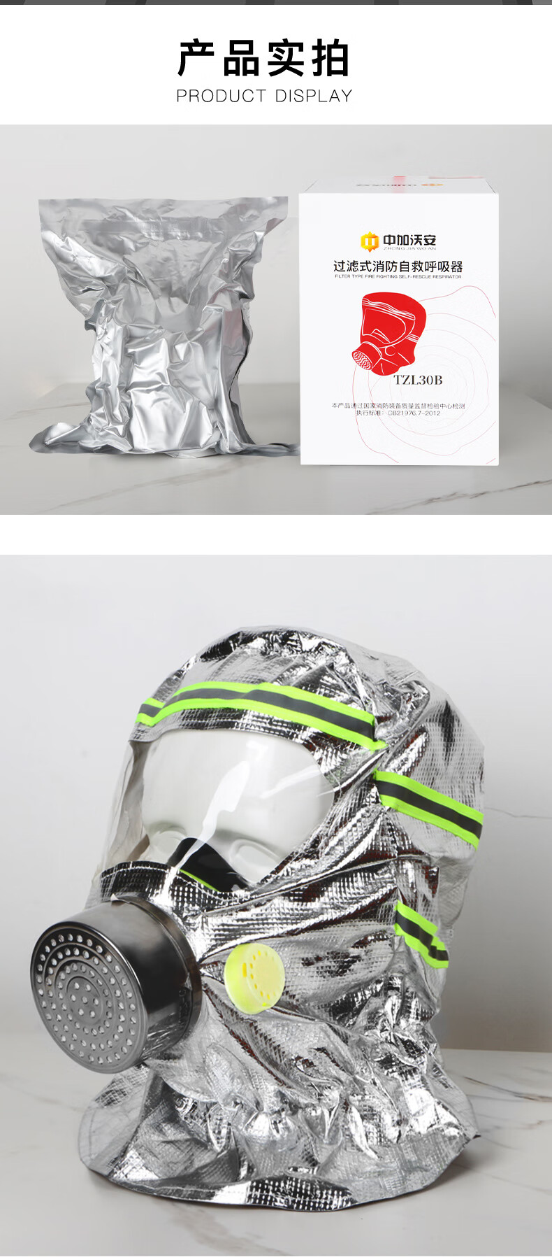 Zhongjia Woan fire mask national standard 3C certified anti-virus and anti-smoke mask fire escape full-face filter respirator three-person escape combination