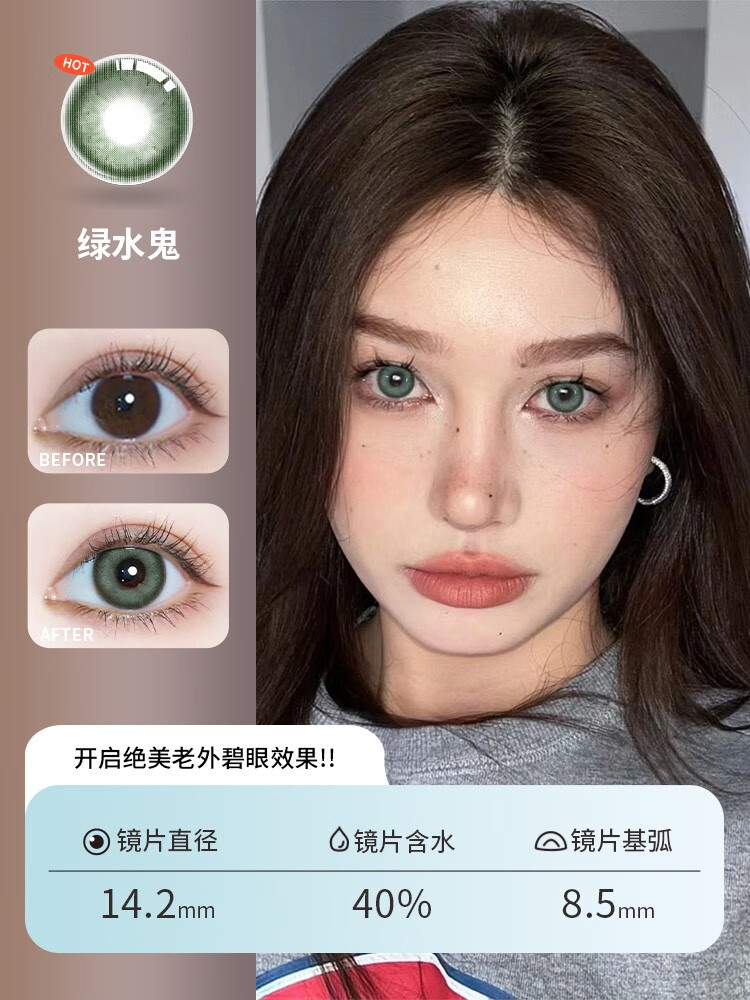 OVOLOOK half-year disposable female contact lenses 2 pieces sandwich craft green daily large diameter natural contact lens flagship store green water ghost 14.2 half-year disposable 0 degree